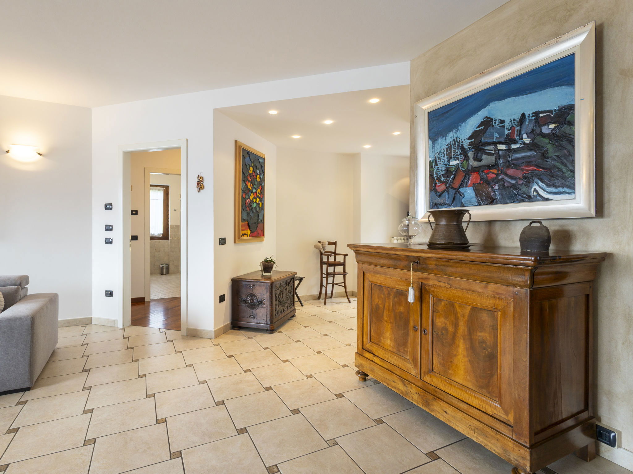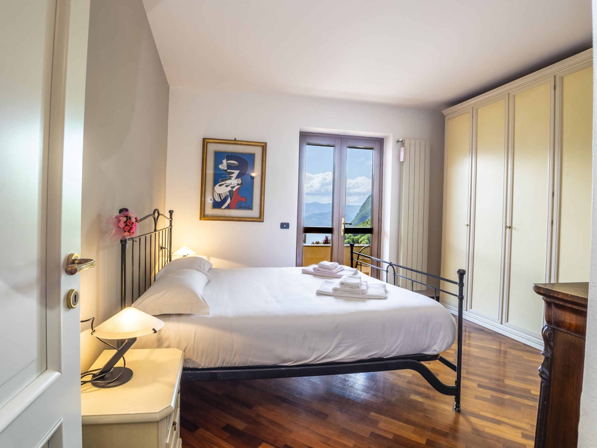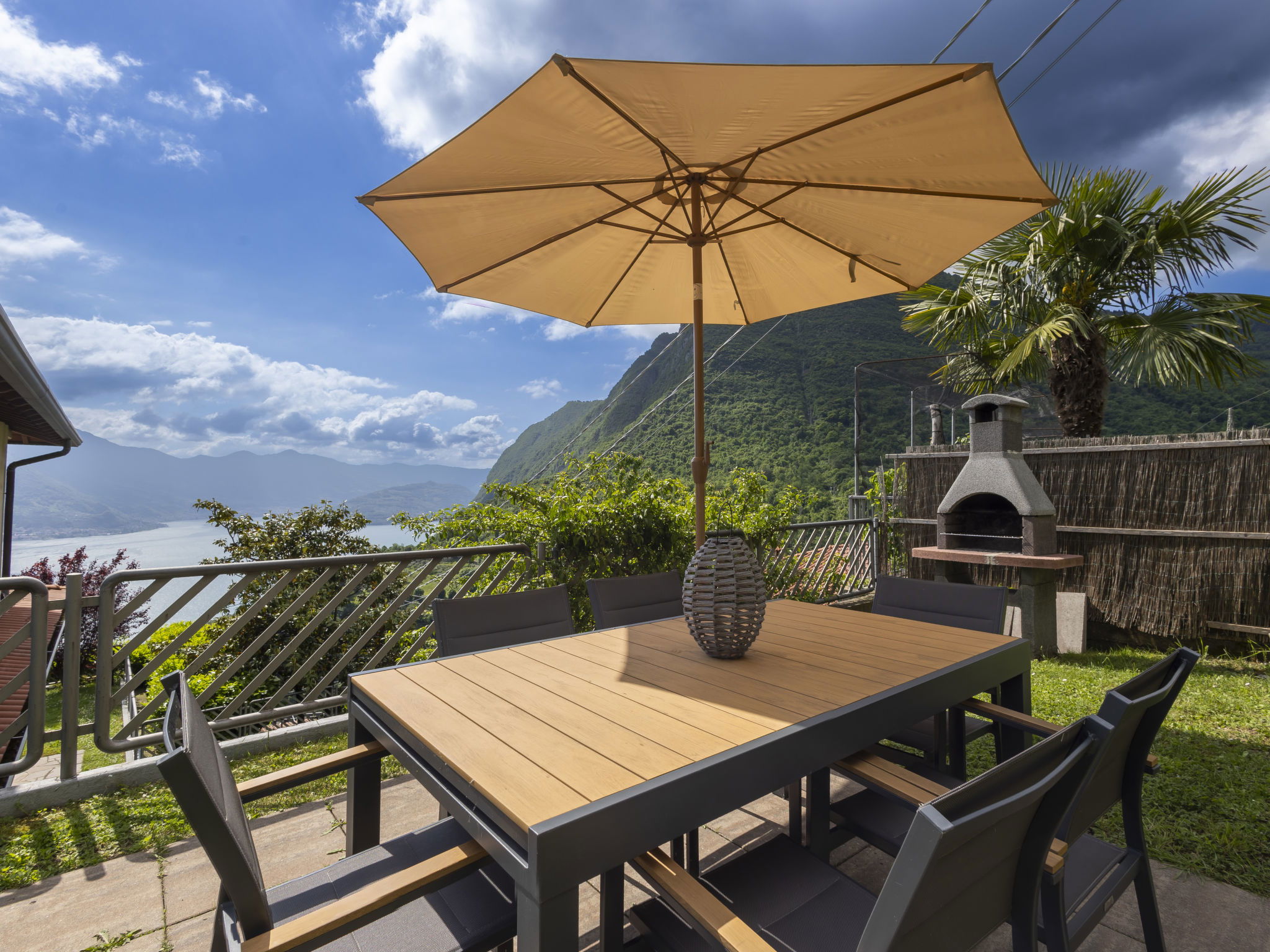 3-room apartment 95 m2 on 1st floor. Spacious and bright, comfortable and tasteful furnishings: large living/dining room with open-hearth fireplace (only for decoration), TV. Exit to the terrace. 1 double bedroom. Exit to the terrace. 1 room with 2 beds and 1 pull-out bed. Large, open kitchen (oven, dishwasher, 5 gas rings, toaster, kettle, microwave, electric coffee machine, Capsules for coffee machine (Nespresso) free, raclette grill, fondue Set (cheese)) with dining table. Shower/bidet/WC, double hand-basin, hydro massage bath. Heating. Parquet floors. Terrace furniture, barbecue, deck chairs. Very beautiful panoramic view of the lake and the mountains. Facilities: washing machine, iron, children's high chair, baby cot, hair dryer. Internet (WiFi, free). Please note: suitable for families. Non-smoking house. Maximum 1 pet/ dog allowed. IT016102C2DZ2IQUES