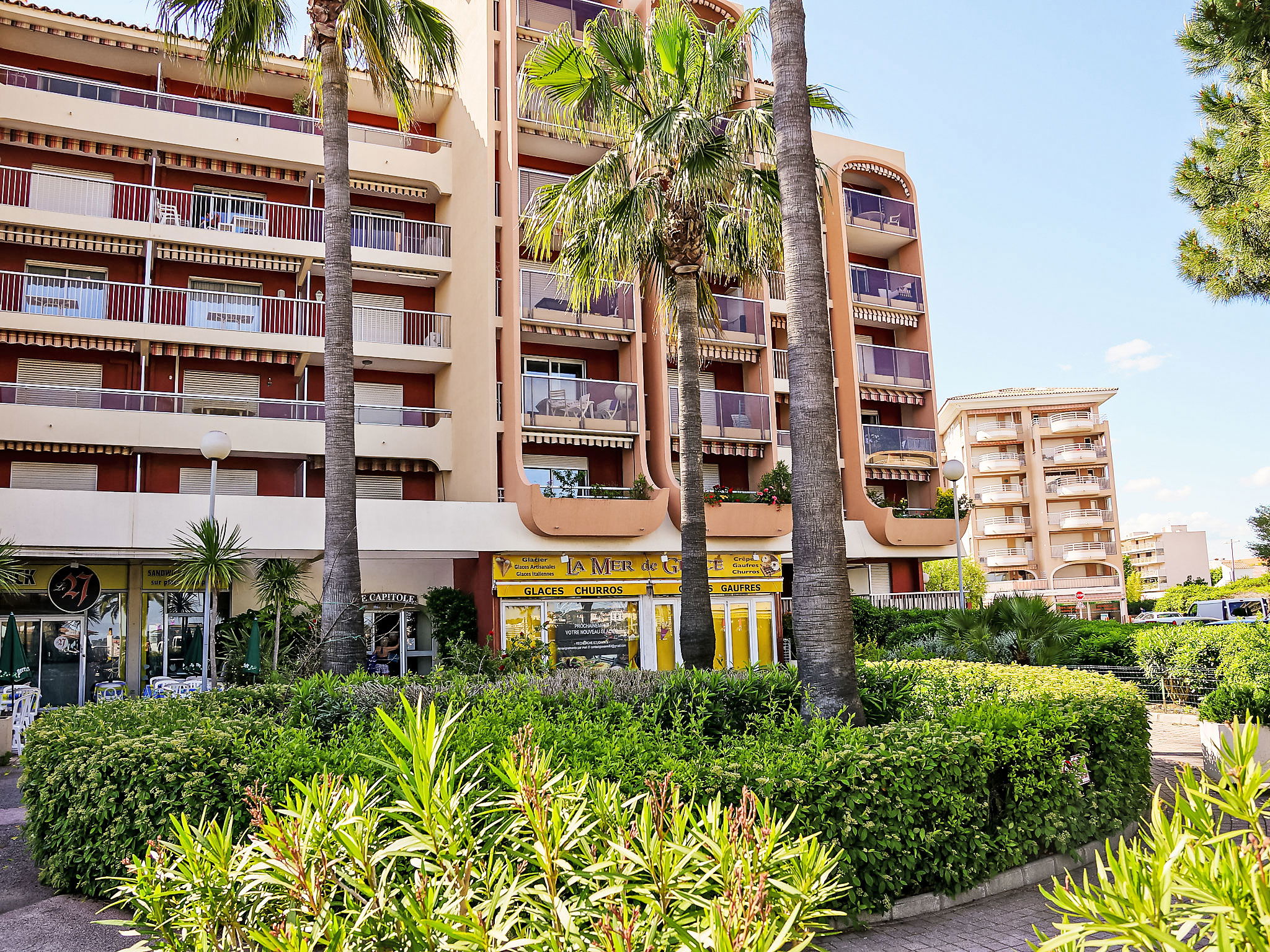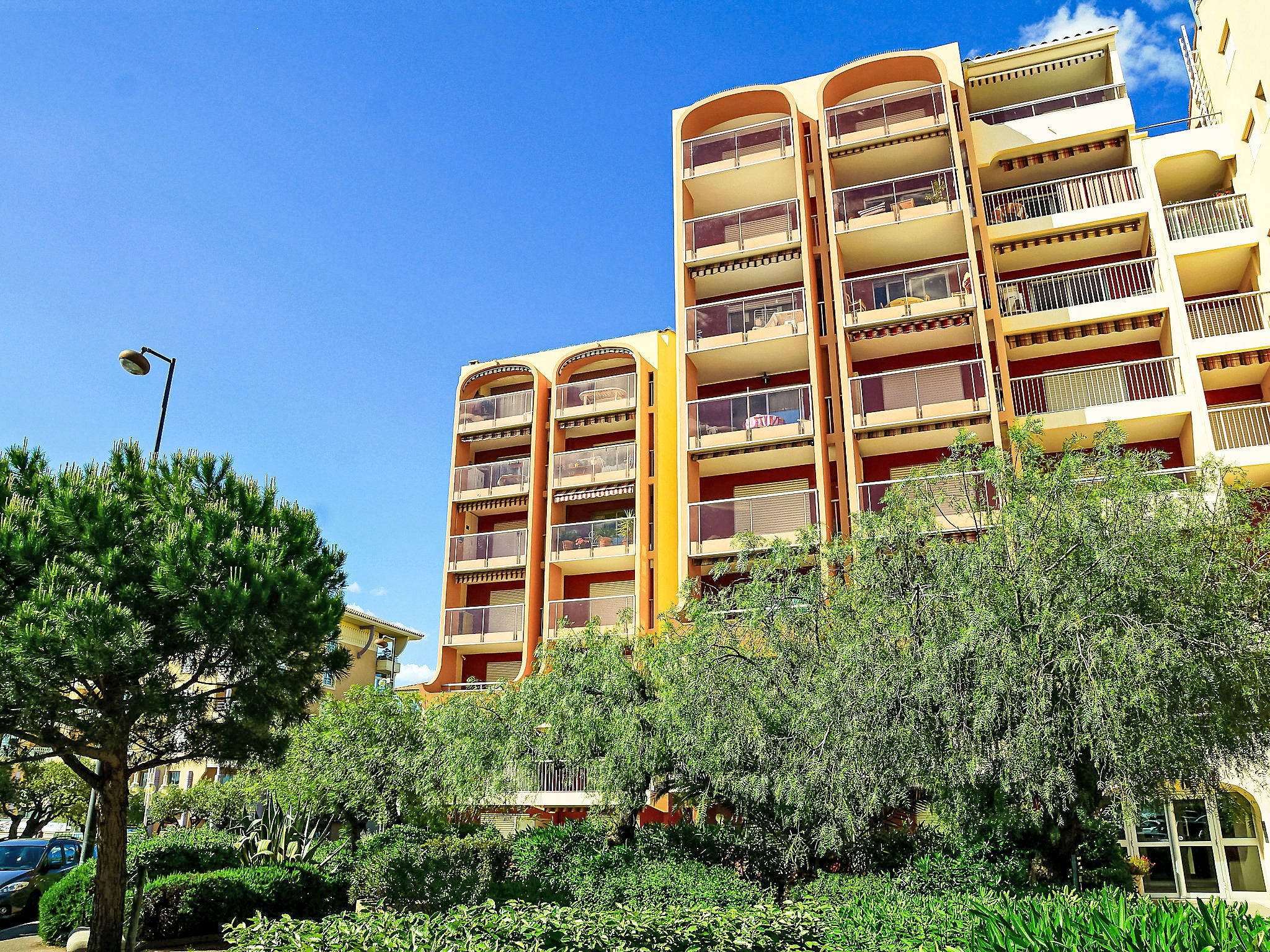 Port Fréjus: Residence "Le Capitole", 7 storeys. 20 m from the sea, 20 m from the beach. In the complex: lift. Public parking on the road. Shop 20 m, supermarket 2 km, restaurant, bakery 20 m, bus stop "Oasis" 300 m, railway station "Saint-Raphaël Valescure" 2 km, sandy beach "Fréjus", diving center 50 m. Sports harbour 50 m, golf course (18 hole) 6 km, minigolf 3 km. Nearby attractions: Cannes 40 km, Saint-Tropez 40 km, Nice 70 km, Gorges du Verdon 90 km. Well-known lakes can easily be reached: Sainte-Croix 90 km, St Cassien 25 km. Hiking paths: Estérel 8 km. The keys‘ handover takes place by the agency in Port Fréjus.