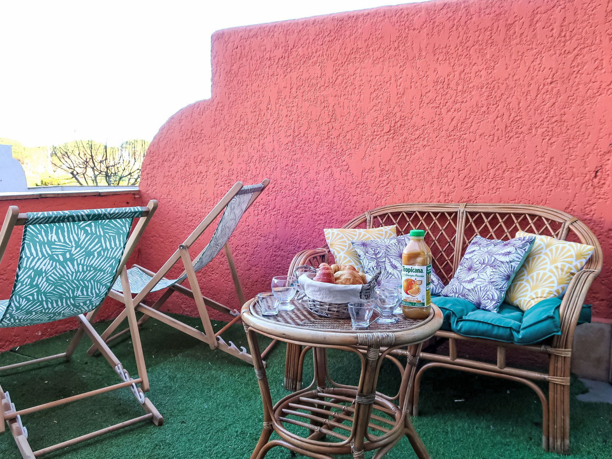 "Les Marines de Gassin 10", 2-room apartment 37 m2, on the ground floor. Beautiful furnishings: living/dining room with 1 double sofabed (140 cm, length 190 cm), TV (flat screen). Exit to the terrace. 1 room with 1 french bed (140 cm, length 190 cm), TV (flat screen). Kitchenette (3 ceramic glass hob hotplates, toaster, kettle, freezer, electric coffee machine, Capsules for coffee machine (Nespresso) extra, combination microwave). Bathroom, sep. WC. Terrace 8 m2. Terrace furniture. Facilities: washing machine, dryer. Internet (WiFi, free). Parking space n 244. Please note: non-smokers only. Maximum 1 pet/ dog allowed. Smoke alarm. 83065000276WQ