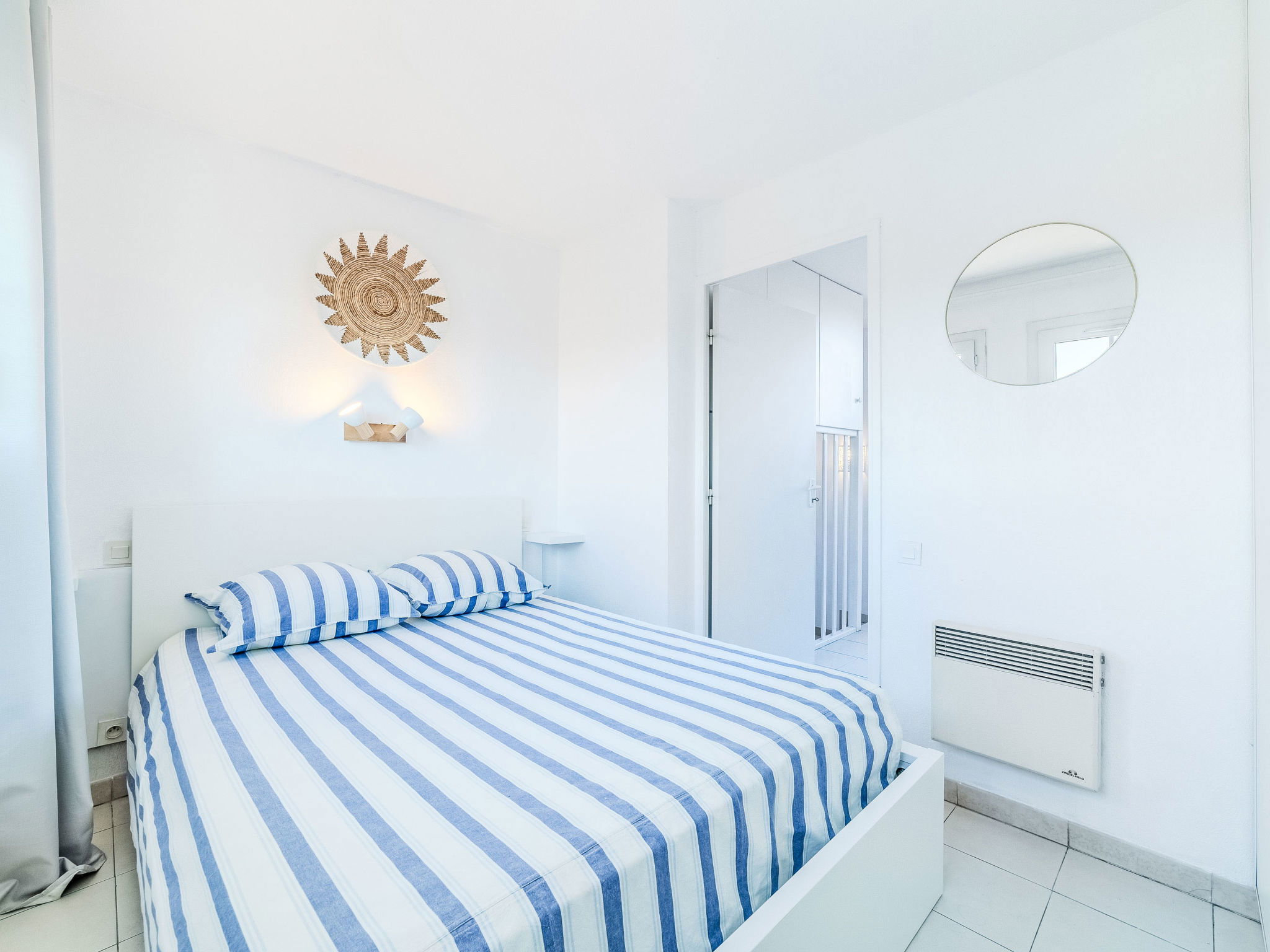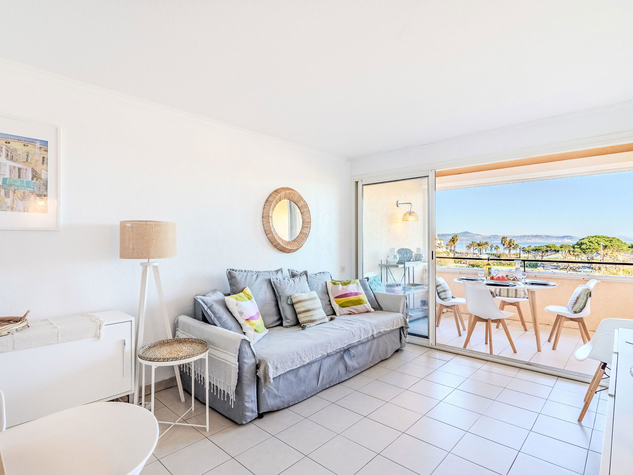 "Les Marines de Gassin 14", 3-room maisonette 45 m2 on 3rd floor. Partly renovated in 2022, cosy furnishings: living/dining room with TV (flat screen). Exit to the terrace. 1 small room with 1 x 2 bunk beds (80 cm, length 190 cm). Kitchenette (mini-oven, dishwasher, 4 ceramic glass hob hotplates, toaster, kettle, electric coffee machine, Capsules for coffee machine (Nespresso) extra). Bathroom, sep. WC. Upper floor: 1 room with 1 french bed (140 cm, length 200 cm). Shower, sep. WC. Electric heating. 2 terraces 16 m2, east facing position. Terrace furniture. Beautiful view of the sea. Facilities: washing machine, iron, hair dryer. Internet (WiFi, extra). Parking space n 294. Please note: non-smokers only. 1 small pet/ dog allowed. Smoke alarm. Offer by a private individual according to Art. 155, IV of CGI. 83065000695JM