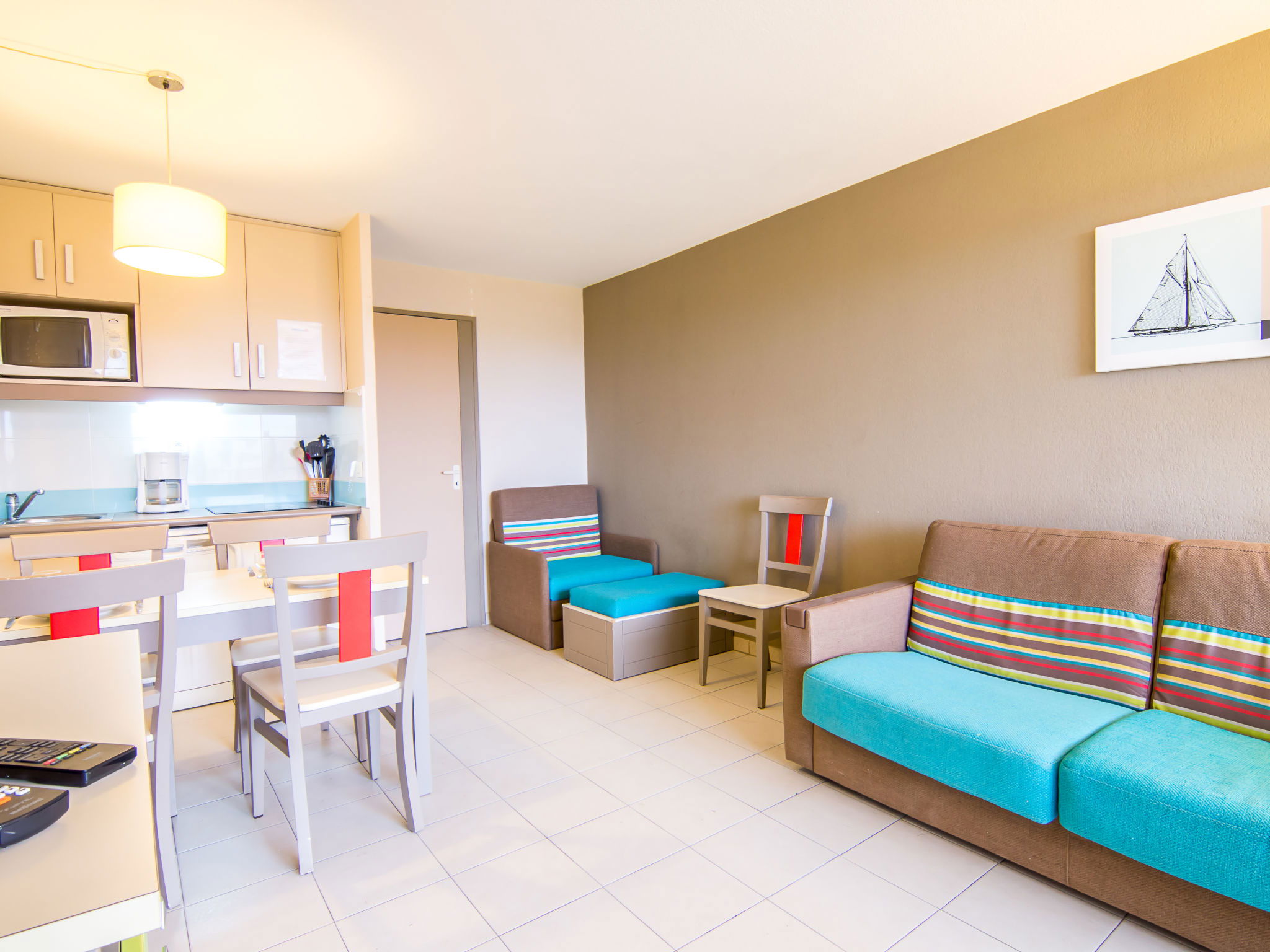 "Les Marines de Gassin 8", 2-room apartment 31 m2 on 2nd floor. Object suitable for 2 adults + 2 children. Cosy furnishings: living/dining room with 1 double sofabed (160 cm, length 190 cm), TV (flat screen). Exit to the terrace. 1 room with 2 beds (80 cm, length 190 cm). Kitchenette (dishwasher, 4 ceramic glass hob hotplates, microwave, electric coffee machine). Bathroom, sep. WC. Electric heating. Terrace 8 m2. Terrace furniture. Distant view of the sea and the swimming pool. Facilities: Internet (WiFi, extra). Parking space n 248. Please note: maximum 1 small pet/ dog allowed. Smoke alarm. 83065000093SL