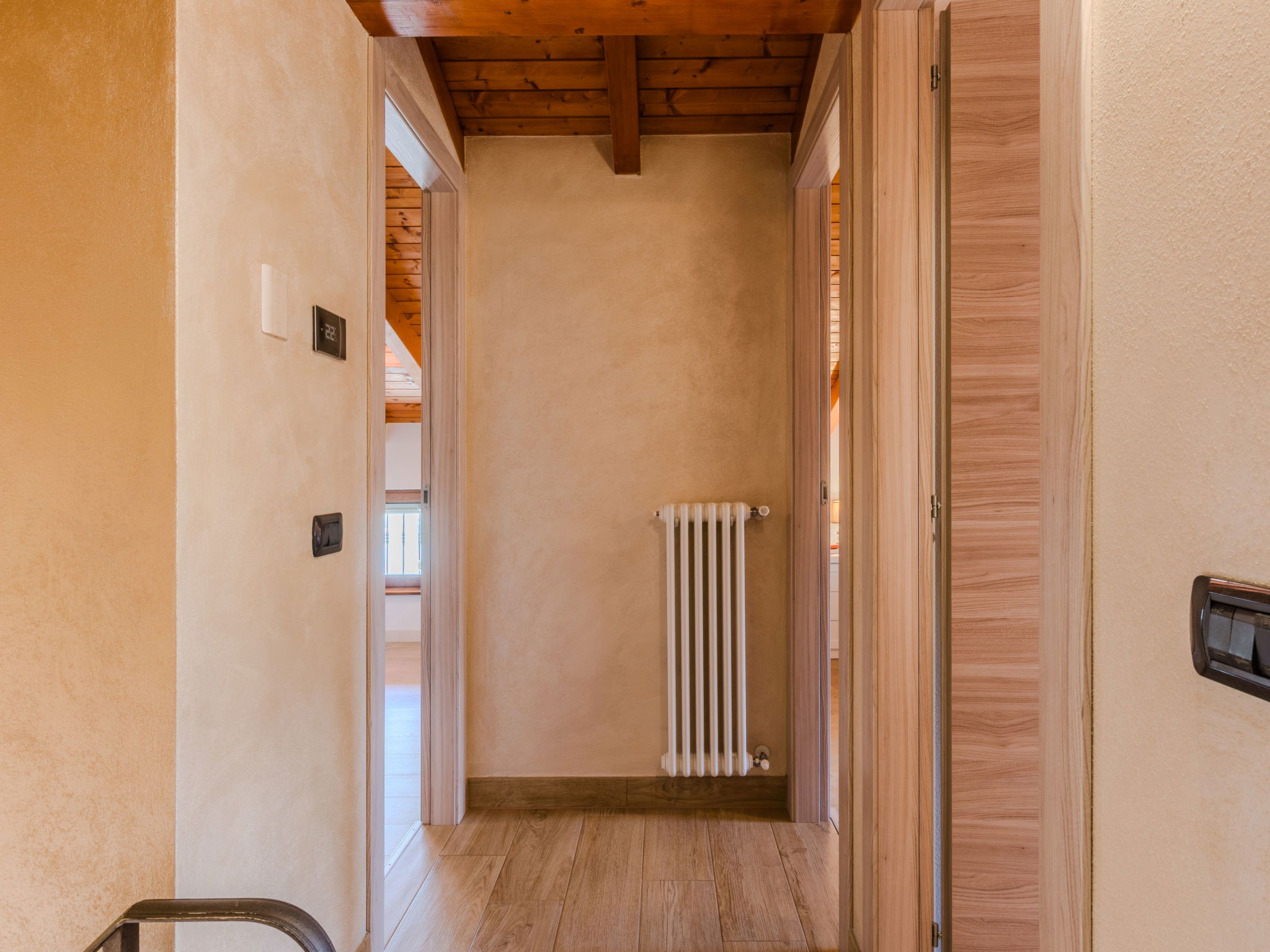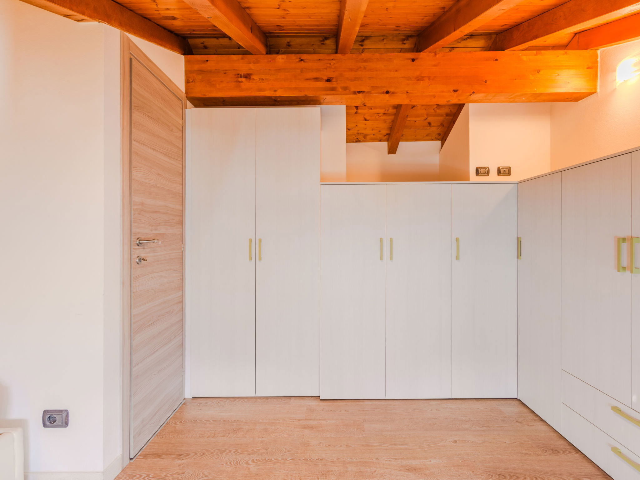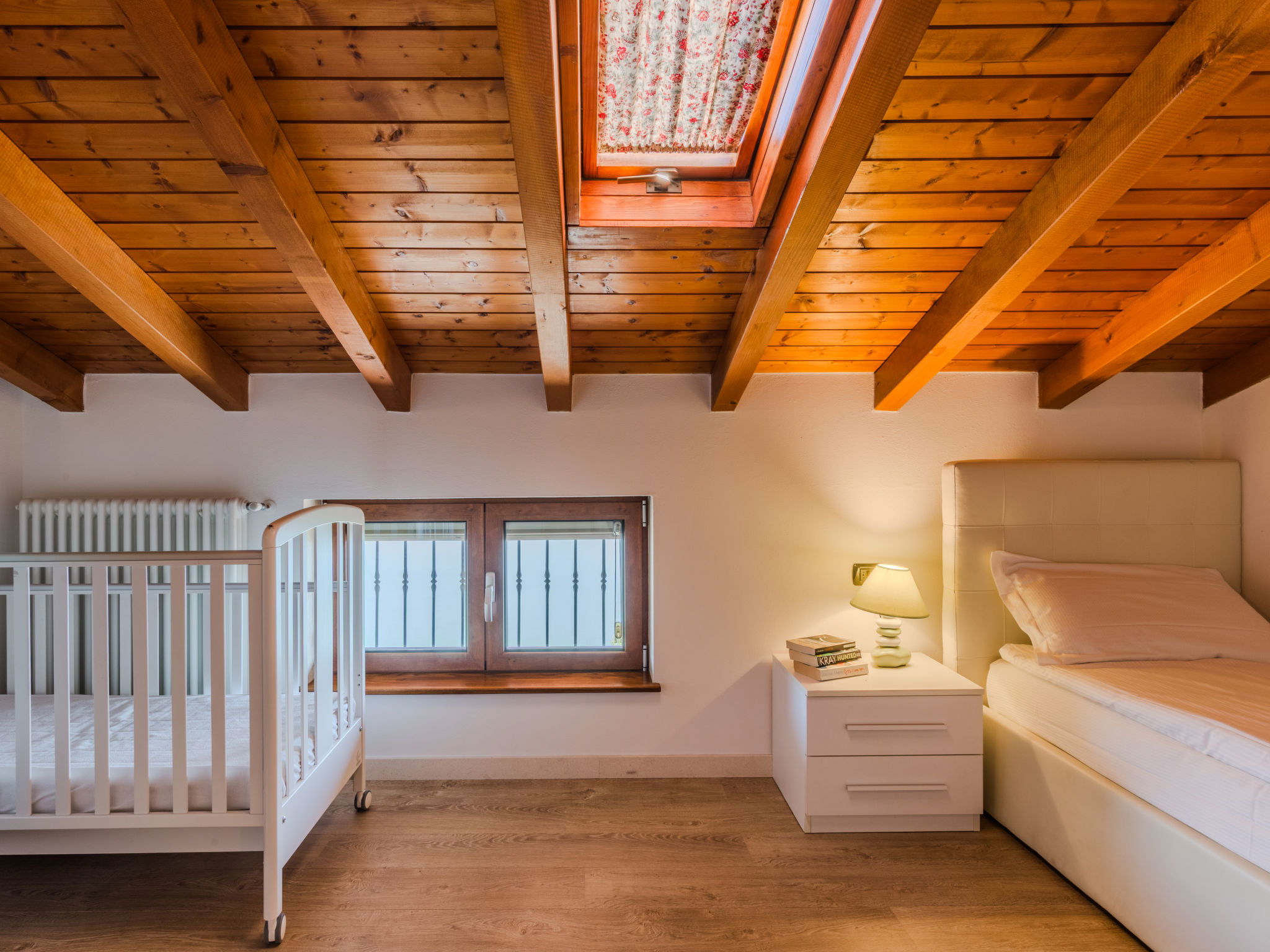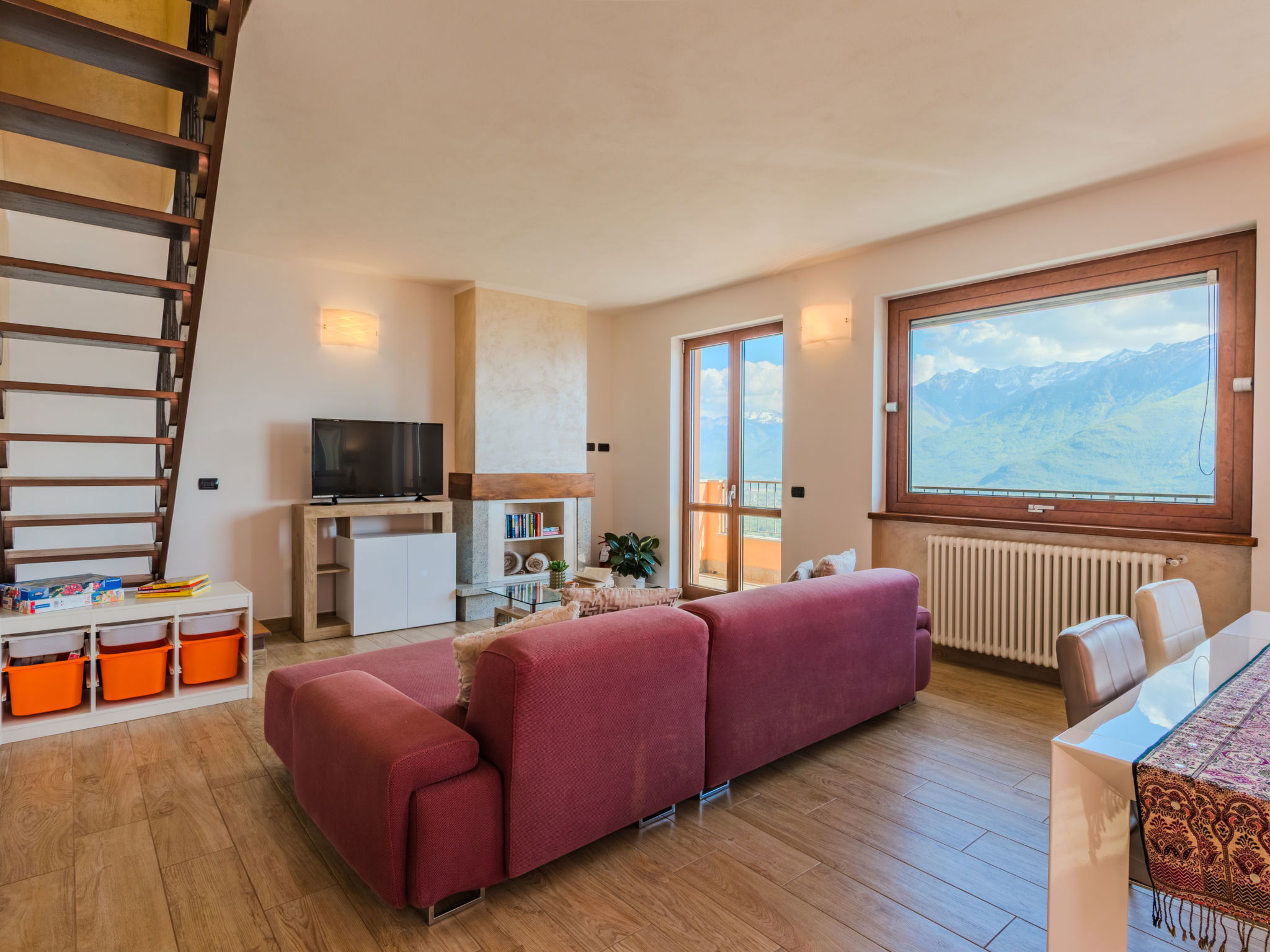 "Robinia", 4-room apartment 100 m2 on 2 levels. Bright, beautiful furnishings: 2nd upper floor: (exterior staircase) living room with open-hearth fireplace (only for decoration), satellite TV. Exit to the balcony. Open kitchen (oven, dishwasher, 4 induction hot plates, toaster, kettle, freezer, electric coffee machine) with dining table. Shower/WC. 3nd upper floor: 1 room with sloping ceilings with 1 french bed (160 cm). 1 room with sloping ceilings with 1 french bed (160 cm). 1 room with sloping ceilings with 1 bed. Bath/WC. Gas heating. Balcony, 2 terraces. Terrace furniture, balcony furniture, barbecue, deck chairs (4). Beautiful panoramic view of the lake and the mountains. Facilities: washing machine. Internet (WiFi, free). Parking (1 car). Please note: non-smokers only. Maximum 1 pet/ dog allowed. Private entrance. IT013226C2N7HHLBFE