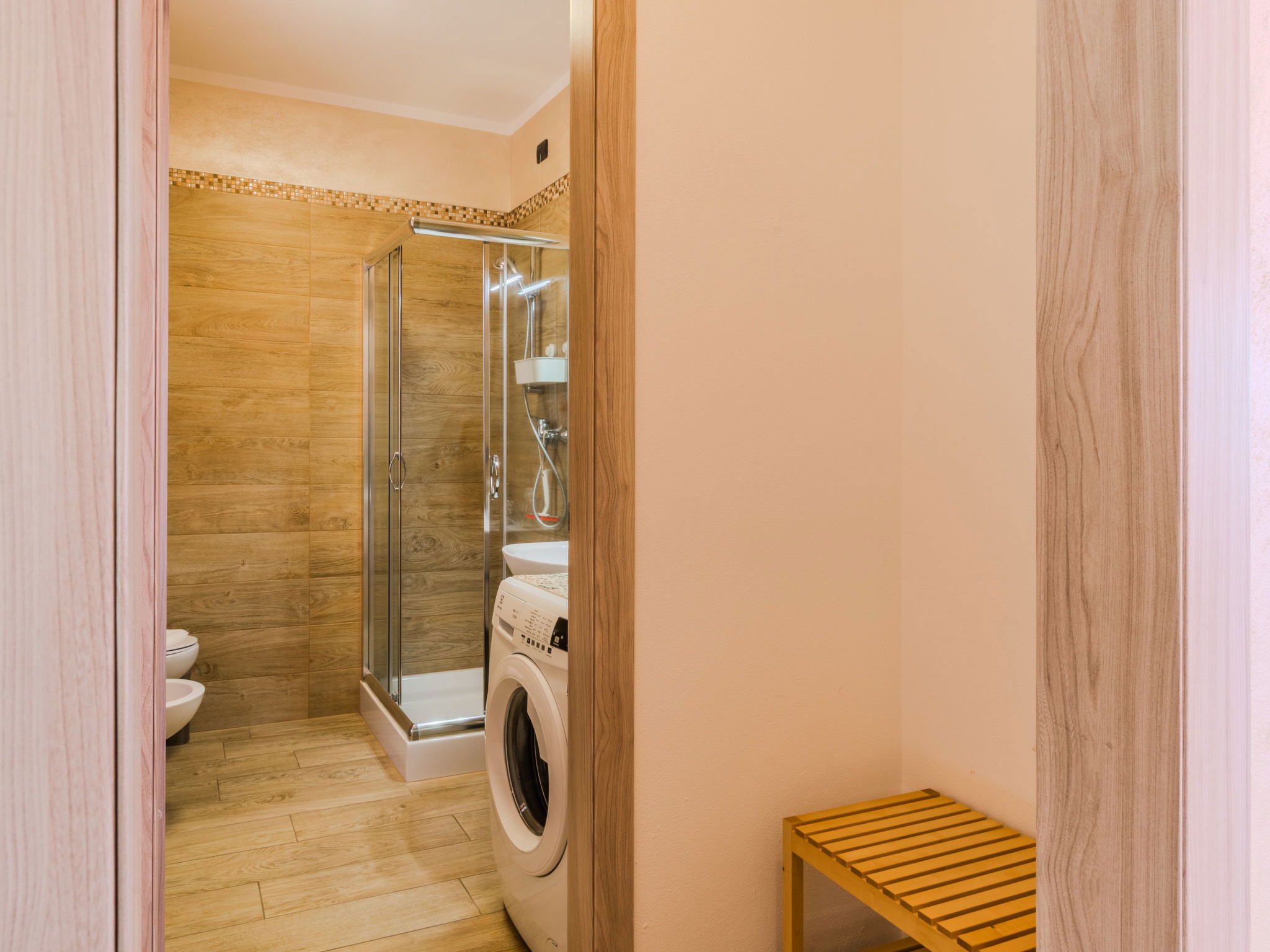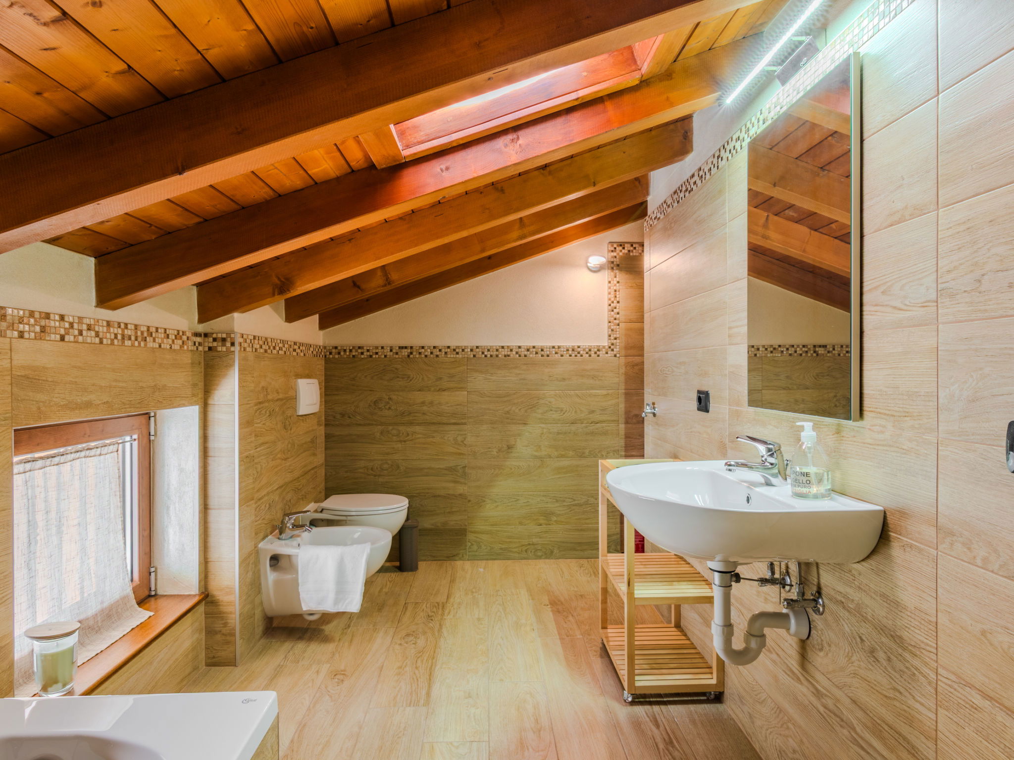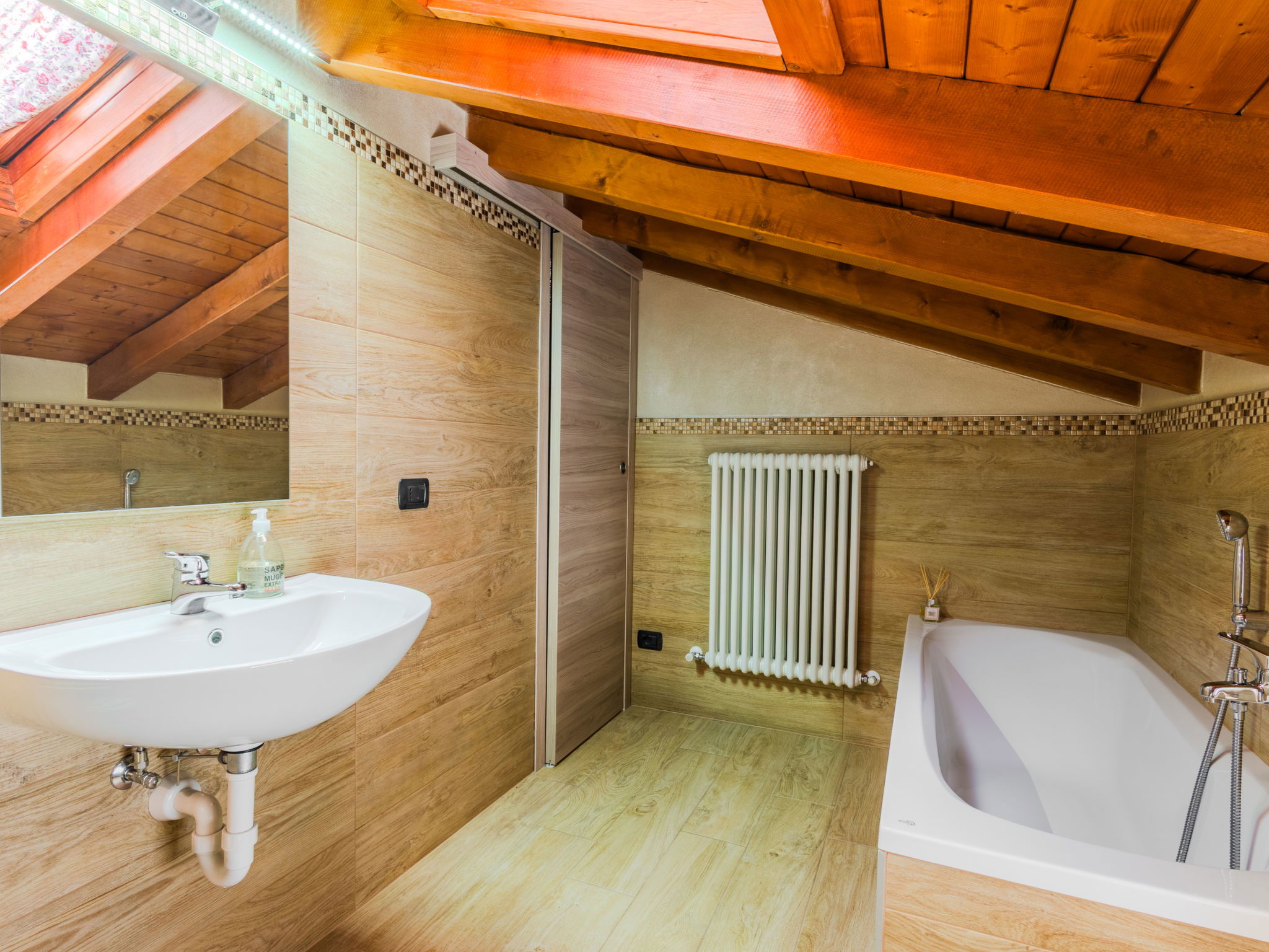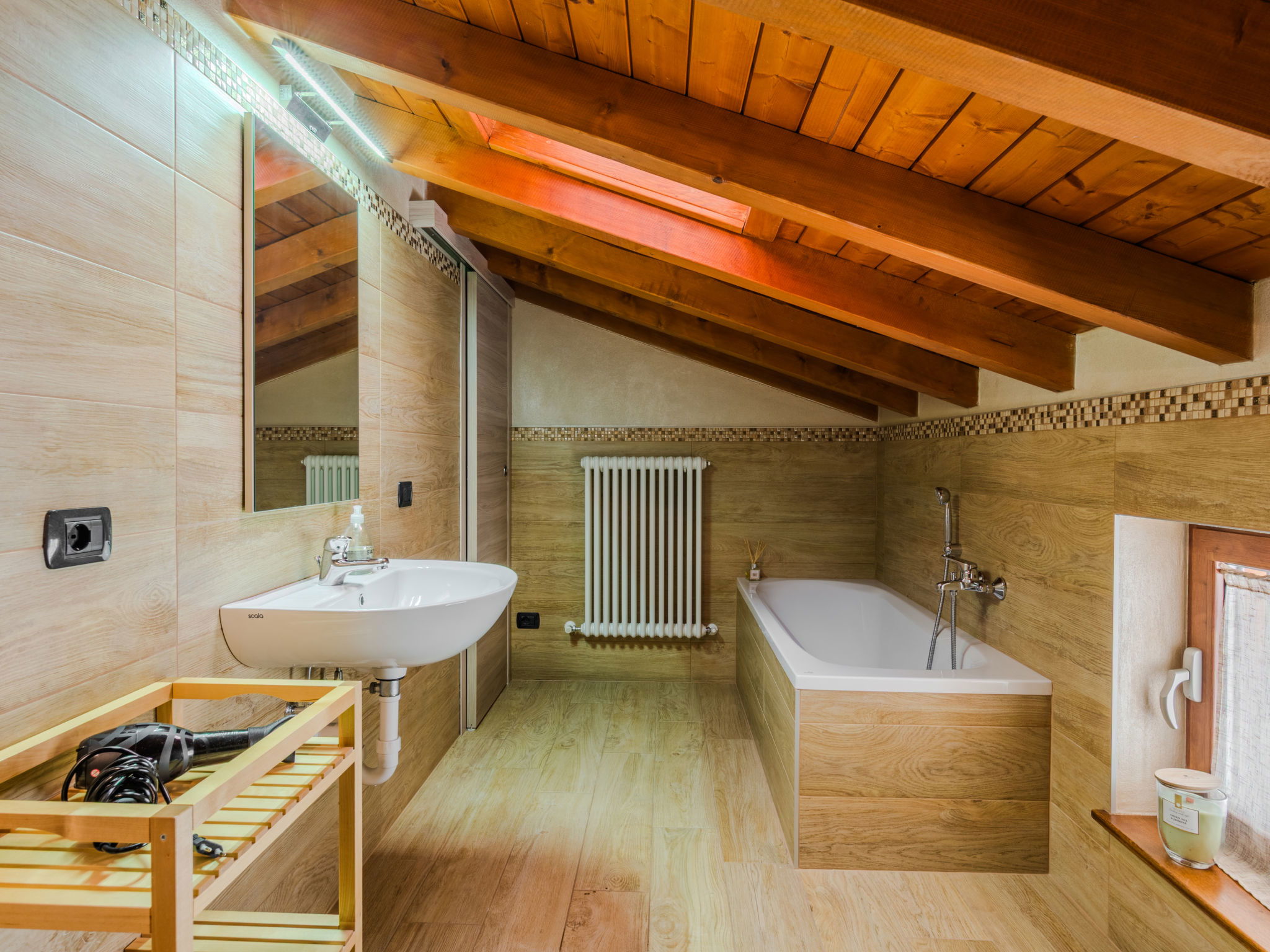 "Robinia", 4-room apartment 100 m2 on 2 levels. Bright, beautiful furnishings: 2nd upper floor: (exterior staircase) living room with open-hearth fireplace (only for decoration), satellite TV. Exit to the balcony. Open kitchen (oven, dishwasher, 4 induction hot plates, toaster, kettle, freezer, electric coffee machine) with dining table. Shower/WC. 3nd upper floor: 1 room with sloping ceilings with 1 french bed (160 cm). 1 room with sloping ceilings with 1 french bed (160 cm). 1 room with sloping ceilings with 1 bed. Bath/WC. Gas heating. Balcony, 2 terraces. Terrace furniture, balcony furniture, barbecue, deck chairs (4). Beautiful panoramic view of the lake and the mountains. Facilities: washing machine. Internet (WiFi, free). Parking (1 car). Please note: non-smokers only. Maximum 1 pet/ dog allowed. Private entrance. IT013226C2N7HHLBFE