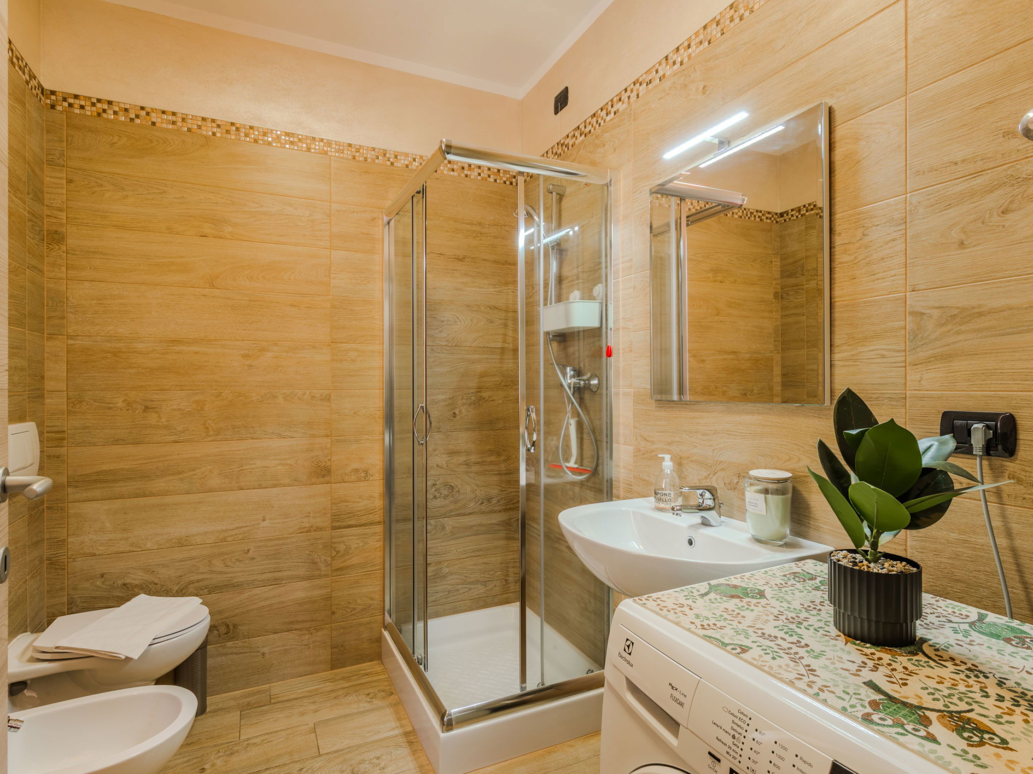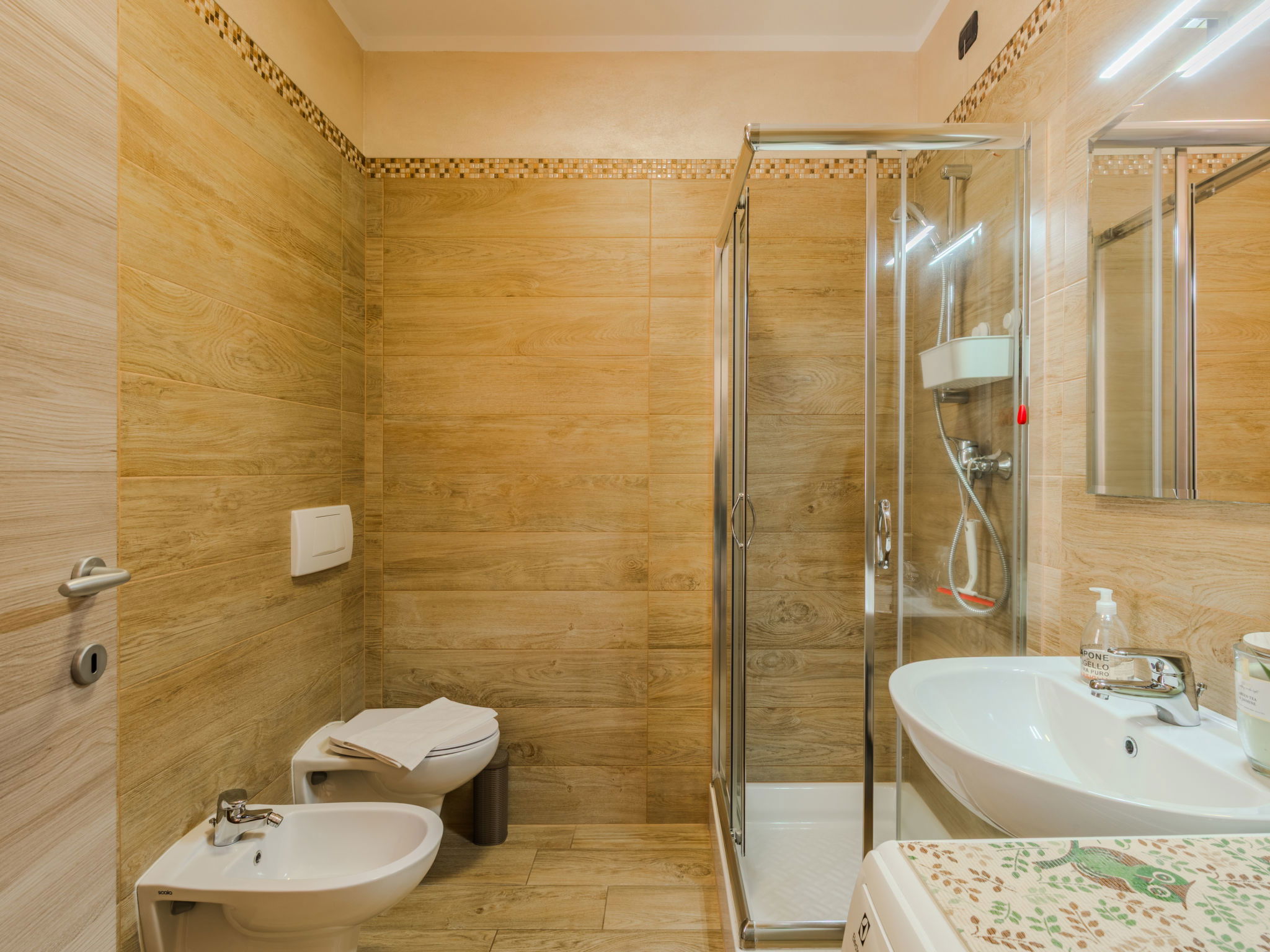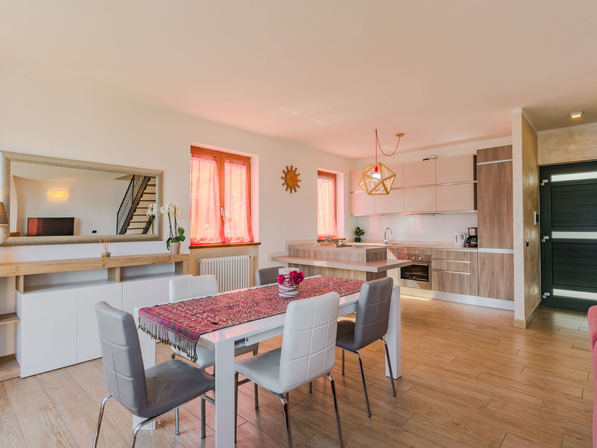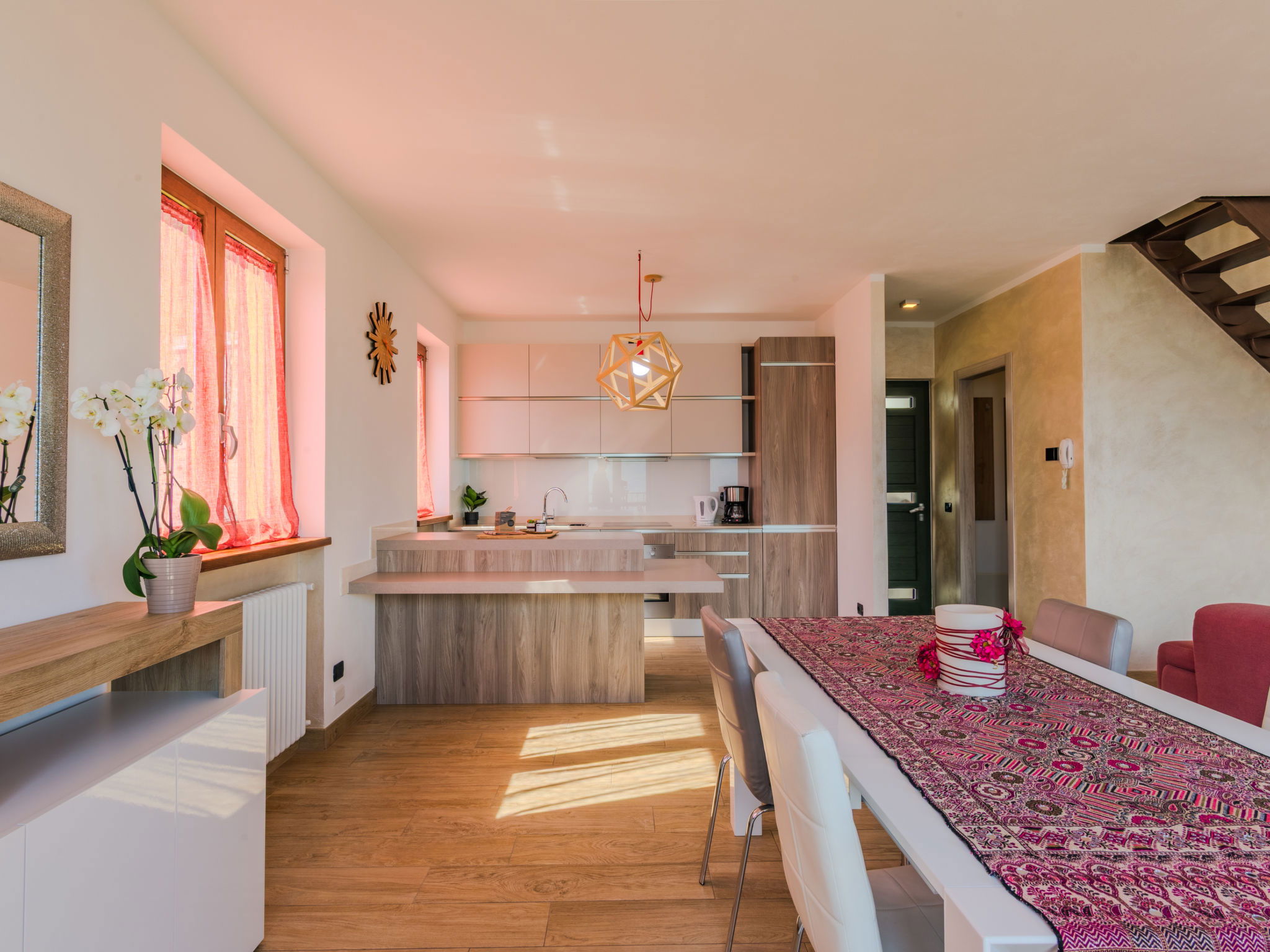 "Robinia", 4-room apartment 100 m2 on 2 levels. Bright, beautiful furnishings: 2nd upper floor: (exterior staircase) living room with open-hearth fireplace (only for decoration), satellite TV. Exit to the balcony. Open kitchen (oven, dishwasher, 4 induction hot plates, toaster, kettle, freezer, electric coffee machine) with dining table. Shower/WC. 3nd upper floor: 1 room with sloping ceilings with 1 french bed (160 cm). 1 room with sloping ceilings with 1 french bed (160 cm). 1 room with sloping ceilings with 1 bed. Bath/WC. Gas heating. Balcony, 2 terraces. Terrace furniture, balcony furniture, barbecue, deck chairs (4). Beautiful panoramic view of the lake and the mountains. Facilities: washing machine. Internet (WiFi, free). Parking (1 car). Please note: non-smokers only. Maximum 1 pet/ dog allowed. Private entrance. IT013226C2N7HHLBFE