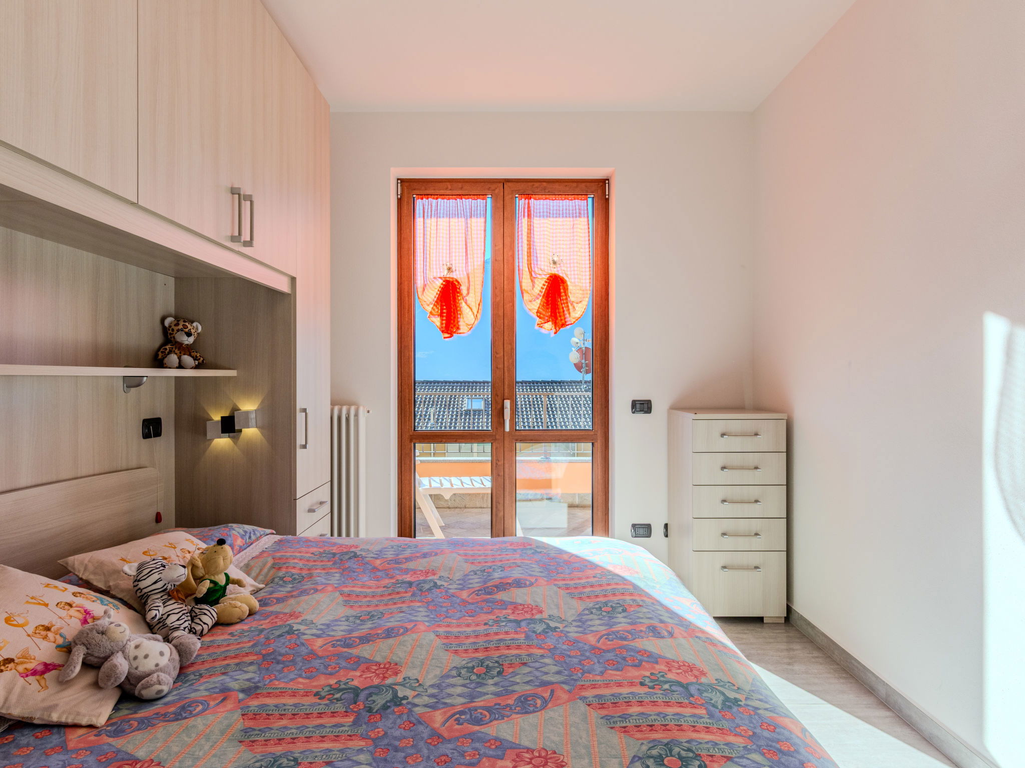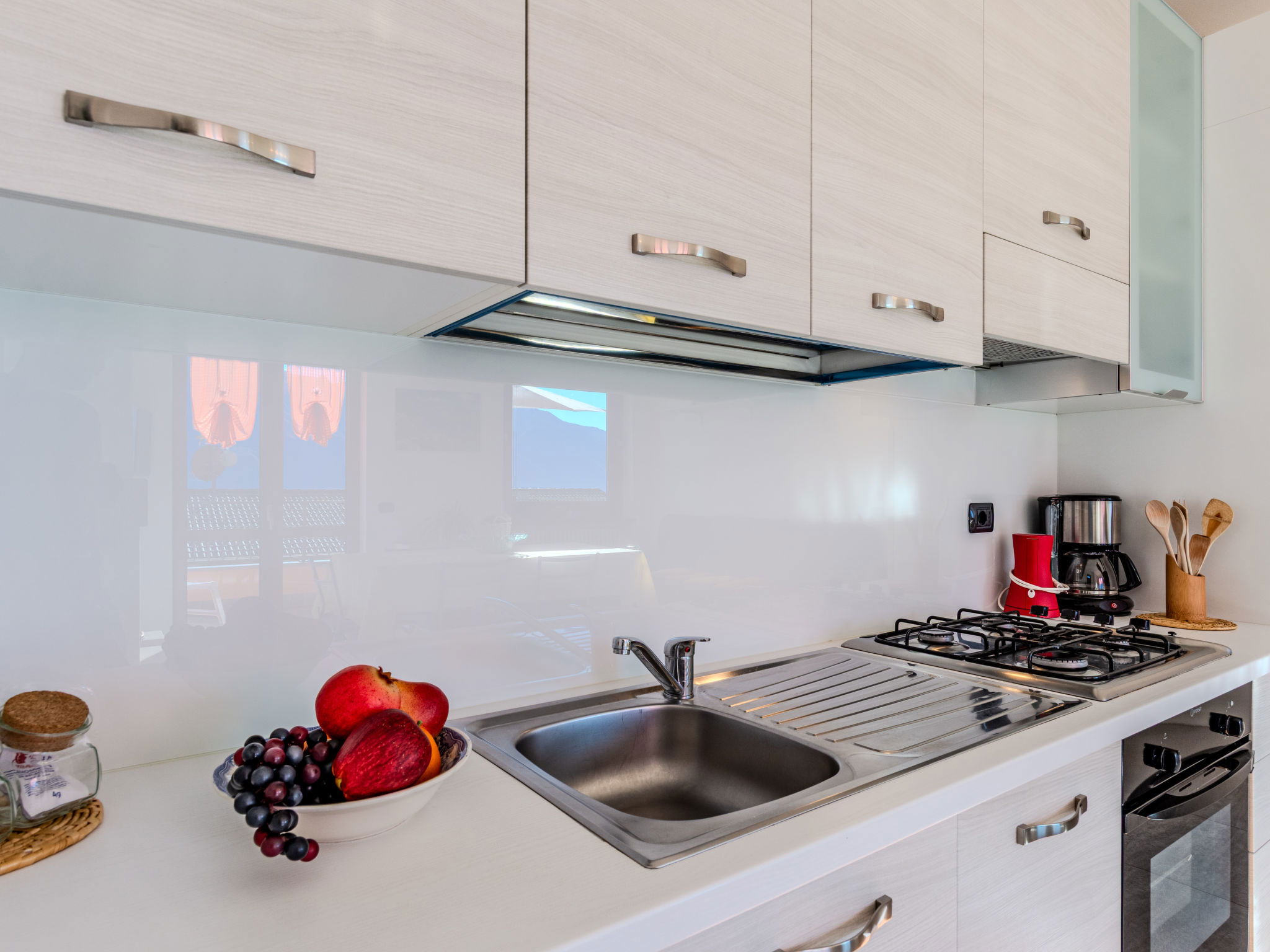 "Alba", 3-room apartment 50 m2 on 1st floor. Bright, beautiful furnishings: living/dining room with dining table and satellite TV. Exit to the balcony. 1 double bedroom. Exit to the balcony. 1 room with 1 x 2 bunk beds, 1 pull-out bed. Open kitchen (oven, dishwasher, 4 gas rings, toaster, kettle, freezer, electric coffee machine). Shower/bidet/WC. Gas heating. Balcony, terrace roofed. Terrace furniture, balcony furniture, barbecue, deck chairs (2). Beautiful panoramic view of the lake and the mountains. Facilities: washing machine, children's high chair, baby cot for up to 2 year olds. Internet (WiFi, free). Parking (1 car). Please note: non-smokers only. Maximum 1 pet/ dog allowed. Private entrance, smoke alarm, fire extinguisher, no lift. IT013226C26UMDT3TA