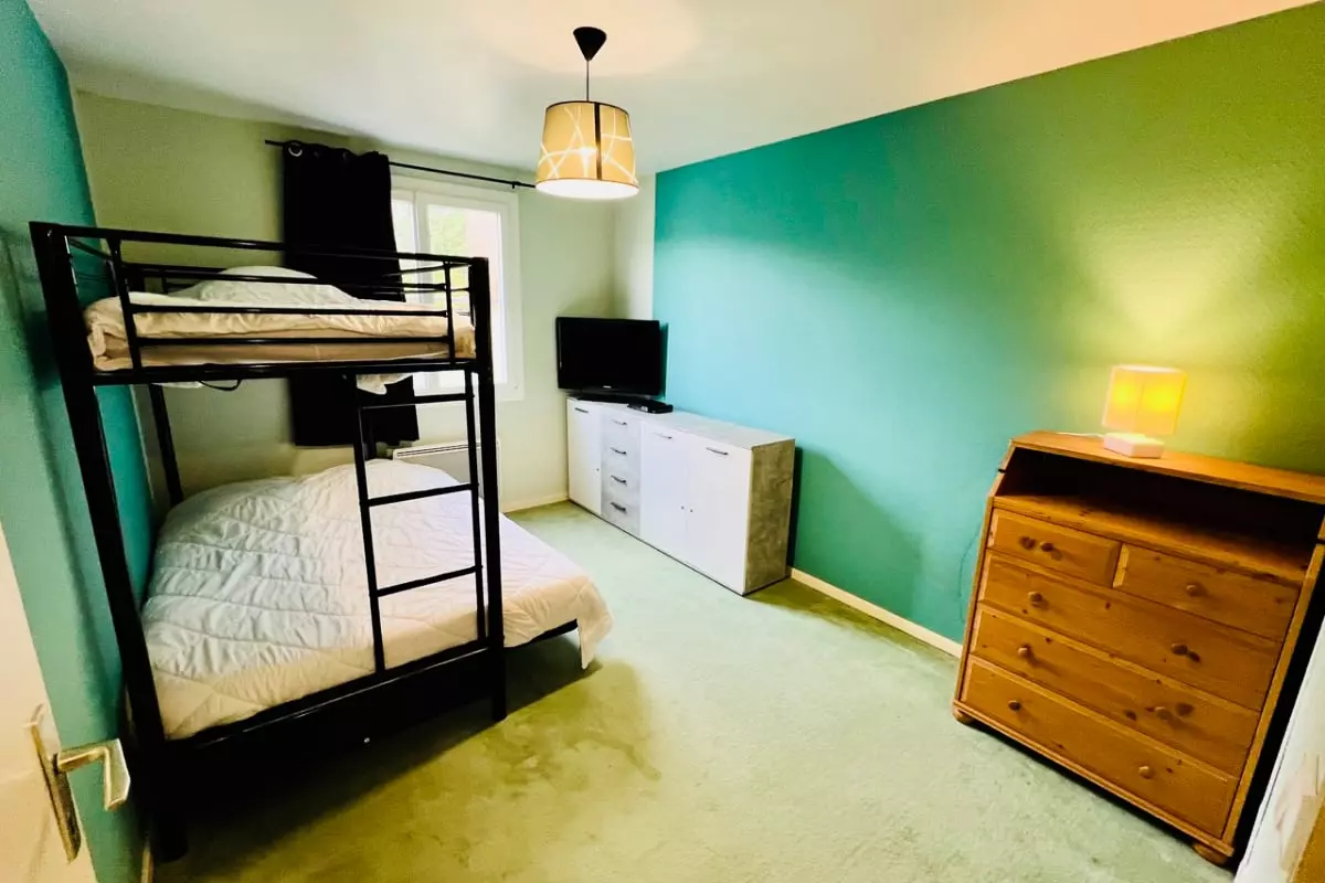 The apartment is equipped with everything you need to feel right at home. Prepare delicious meals in a modern kitchen with a microwave, dishwasher, and even a raclette grill for your mountain evenings. The two bedrooms are furnished for your comfort, including one with a bunk bed consisting of a double bed on the bottom and a single bed on top, perfect for families or groups of friends. For your moments of relaxation, a spacious balcony is available, offering unobstructed views and space to enjoy the fresh air. After a long day, cozy up in front of the television or use the coffee machine to savor a moment of calm.