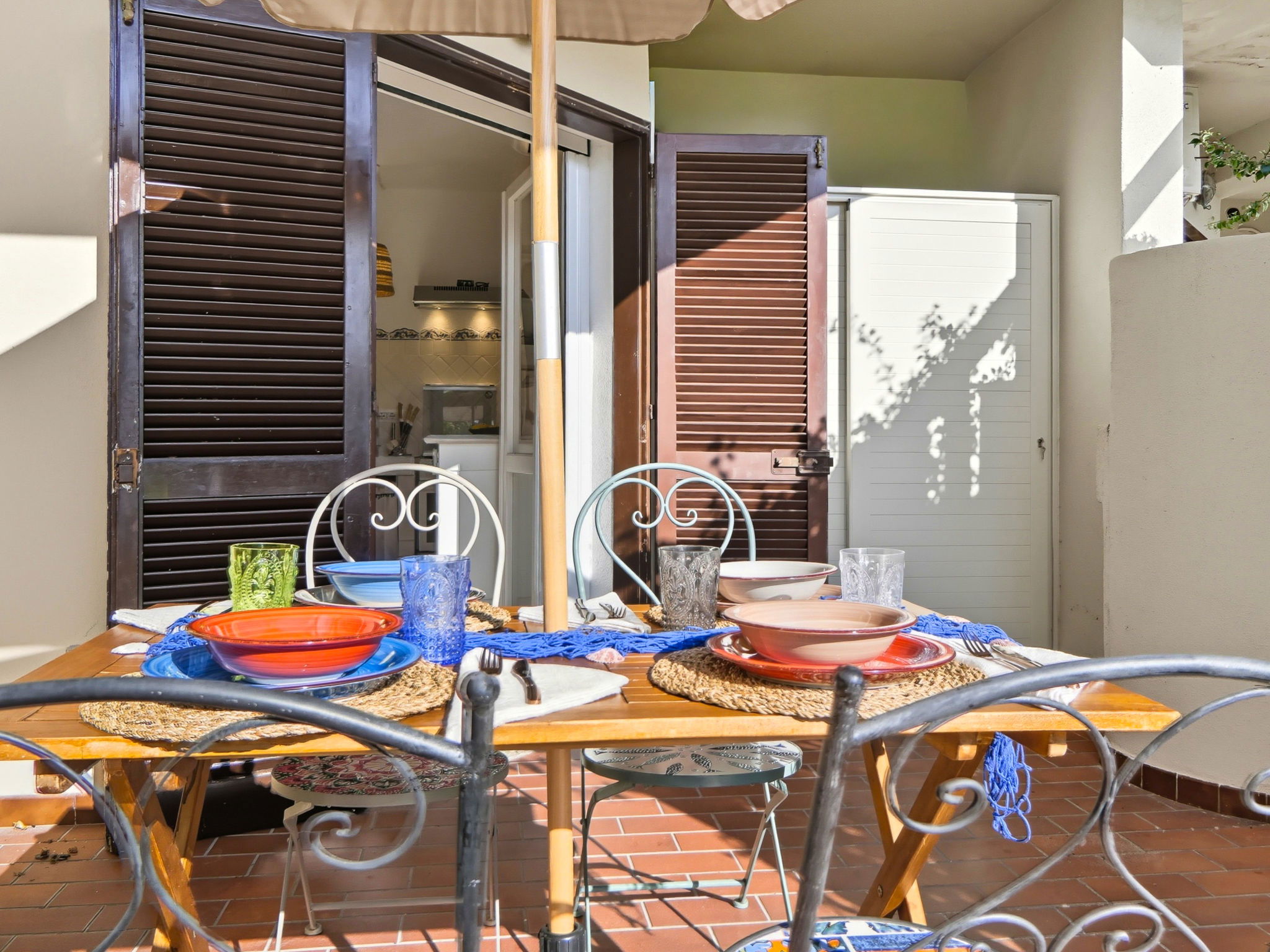 "Iris 5, Terza Spiaggia", 2-room apartment 42 m2, on the ground floor. Simple and practical furnishings: living/dining room with 1 sofabed, 1 pull-out bed and TV (flat screen). Exit to the terrace. 1 double bedroom. Small, open kitchen (4 hot plates, oven, dishwasher, toaster, kettle). Shower/bidet/WC. Air-conditioning, forced-air heating. Terrace 8 m2. Terrace furniture. Partial view of the sea and the garden. Facilities: washing machine, iron, mosquito net, hair dryer. Internet (WiFi). Parking space n 5 (fenced). Maximum 1 pet/ dog allowed. IT090083C2000T7864