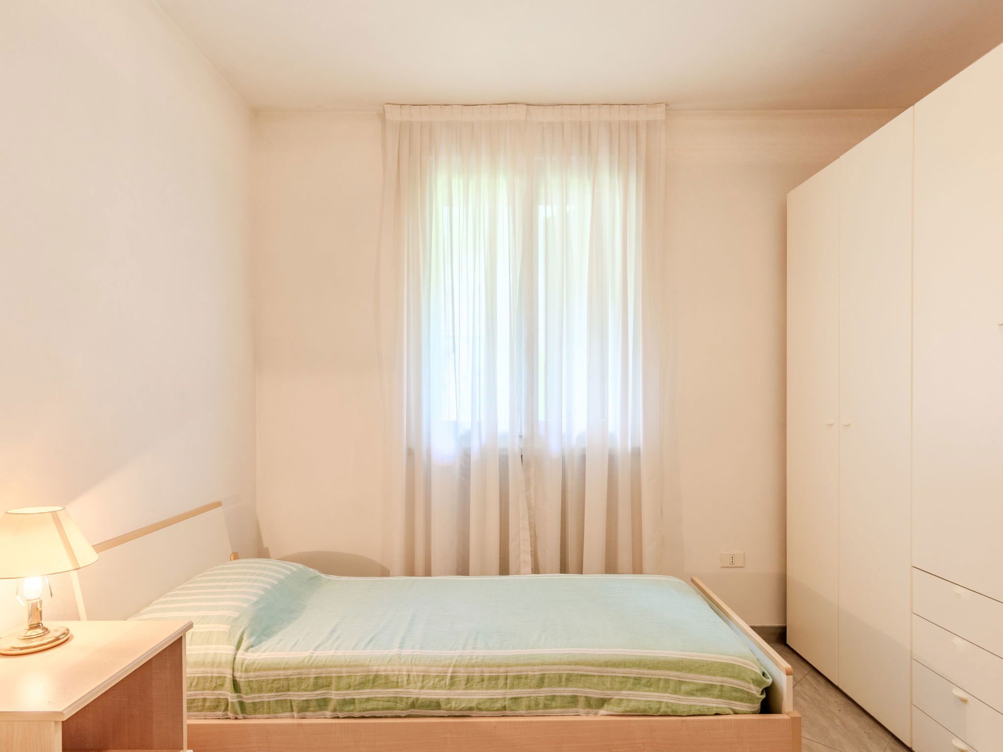 "Casa Aldes", 3-room apartment 75 m2, on the ground floor. Spacious and bright, very comfortable and cosy furnishings: living room with TV. Exit to the terrace. 1 room with 1 double bed. 1 room with 2 beds. Large kitchen-/living room (oven, dishwasher, Gas stove, 4 gas rings, toaster, kettle, microwave, electric coffee machine) with open-hearth fireplace (only for decoration), dining table. Exit to the terrace. Shower/bidet/WC. Gas heating. Heating available only from 15.10. to 15.04. Large terrace, large garden, lawn. Terrace furniture, sitting area. Partial view of the lake and the mountains. Facilities: washing machine, children's high chair, baby cot for up to 2 year olds, hair dryer. Internet (WiFi, free). Garage space n 1 on the property. Please note: suitable for families. Non-smokers only. 1 pet/ dog allowed. Private entrance, smoke alarm, fire extinguisher. IT013249C2LWLO7PVY