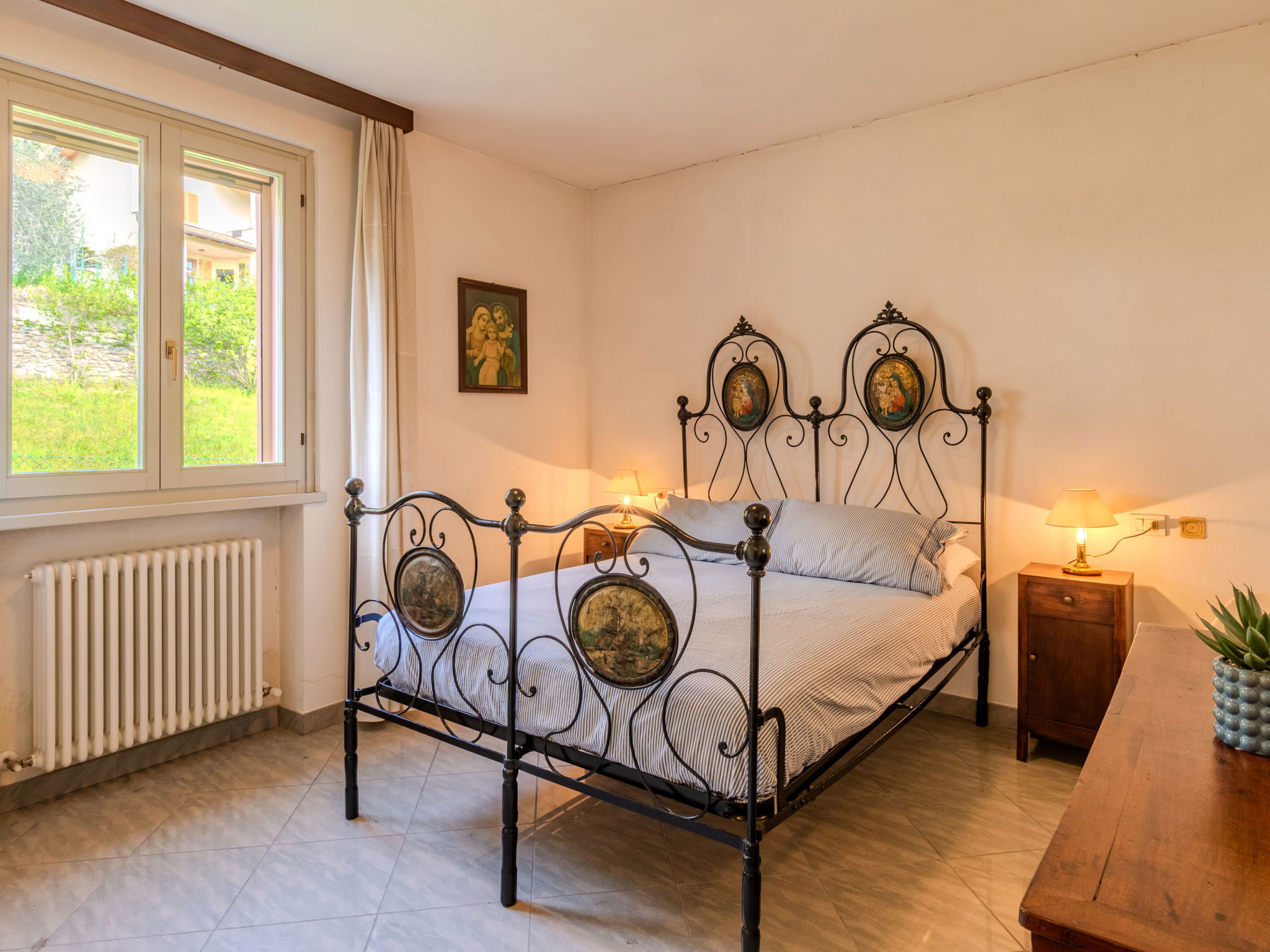Very cosy, comfortable apartment house "Casa Aldes", semi-detached. 500 m from the centre of Gravedona, 16 km from the centre of Colico, 17 km from the centre of Menaggio, in the residential district, 500 m from the lake. Private: property (fenced), large garden with lawn and wildlife garden. Motor access to the house. Single garage space n 1 at the house. Supermarket 1.7 km, restaurant, bar 300 m, bakery 450 m, bicycle rental 950 m, bus stop "C110 Como – Menaggio – Colico" 190 m, railway station "Colico" 16 km, ferry "Menaggio" 17 km, sandy beach "Serenella", grass beach "Lido di Gravedona". Marina 500 m, surf school 1 km, sailing school 1 km. Nearby attractions: Palazzo Gallio-Gravedona, Chiesa Santa Maria del Tiglio, Lake Como Adventure Park, Bellagio, Varenna, Menaggio. Well-known lakes can easily be reached: Lago di Lugano, Lago di Mezzola. Hiking paths: Sasso Pelo, Valle Livo-Crotto Dangri. Please note: suitable for families.