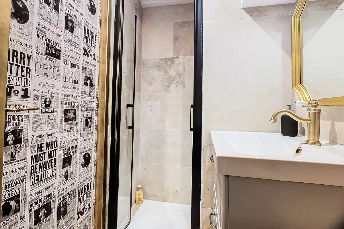 ⚡️ The bathroom includes a beautiful shower, a vanity unit with mirror and of course a toilet with direct access to the Ministry of Magic 🚽