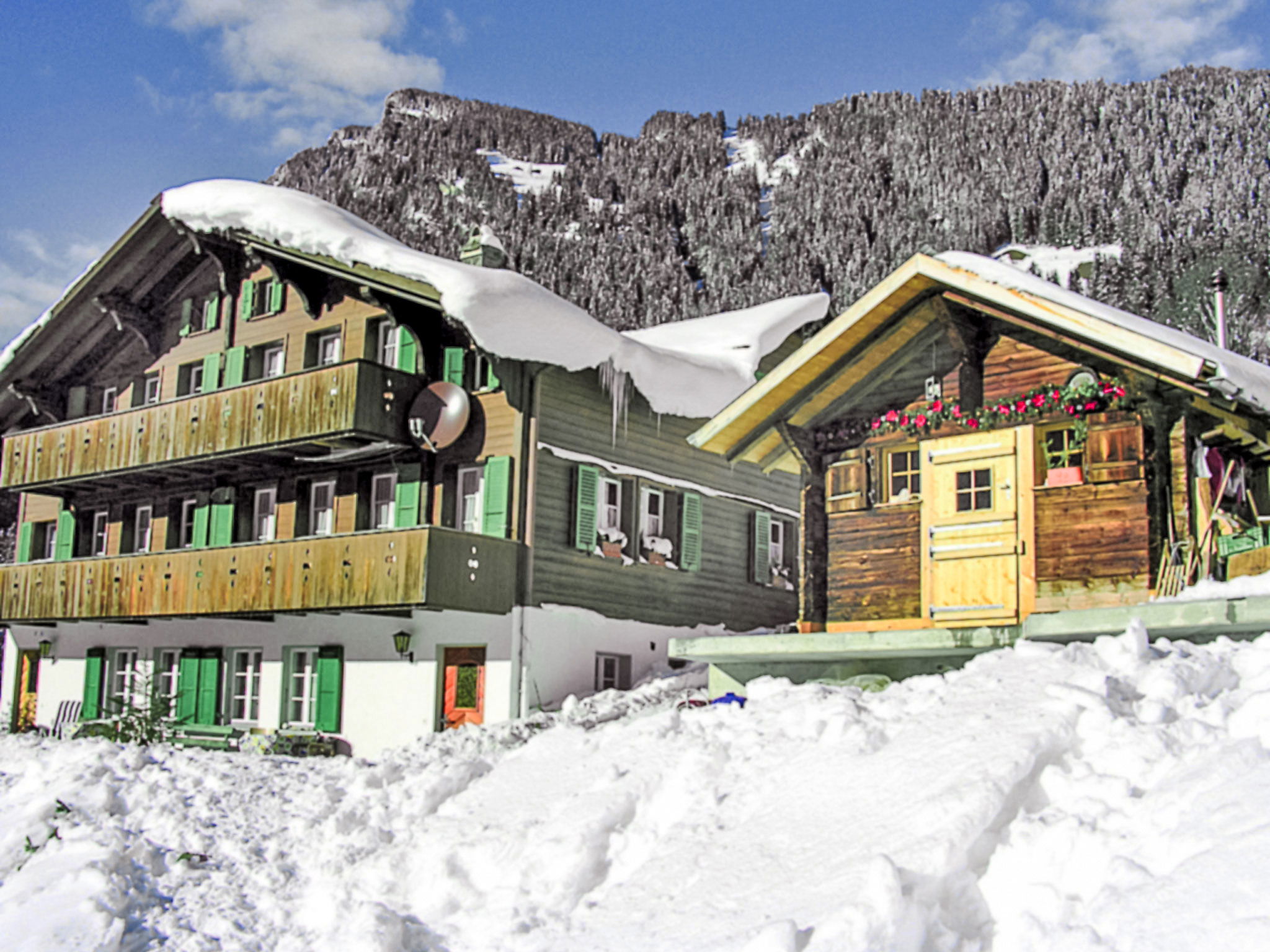 Beautiful, rustic apartment house "Chalet Auf dem Vogelstein". In the district of Schwendi/Vogelstein, 3 km from the centre, in a quiet, sunny, elevated position on top of a hill, in a cul-de-sac, in the countryside, south facing position. In the house: central heating system. Very steep, narrow motor access to the house. Steep footpath to the house. Parking at 30 m. Shopping centre 3 km, restaurant 3 km, bicycle rental 3.5 km, 30 minute walk to the centre, bus stop "Schwendi" 500 m, railway station "Schwendi" 500 m, indoor swimming pool 3 km. Golf course (9 hole) 4.5 km, tennis 4.5 km, minigolf 3.4 km, sports centre 3 km, mountain railway 2.5 km, gondola lift 2.5 km, ski rental 2.5 km, cross country ski track 500 m, children's playground 3 km. Well-known lakes can easily be reached: Thuner-/Brienzersee 15 km. Please note: car recommended. Additional accommodations can be booked.