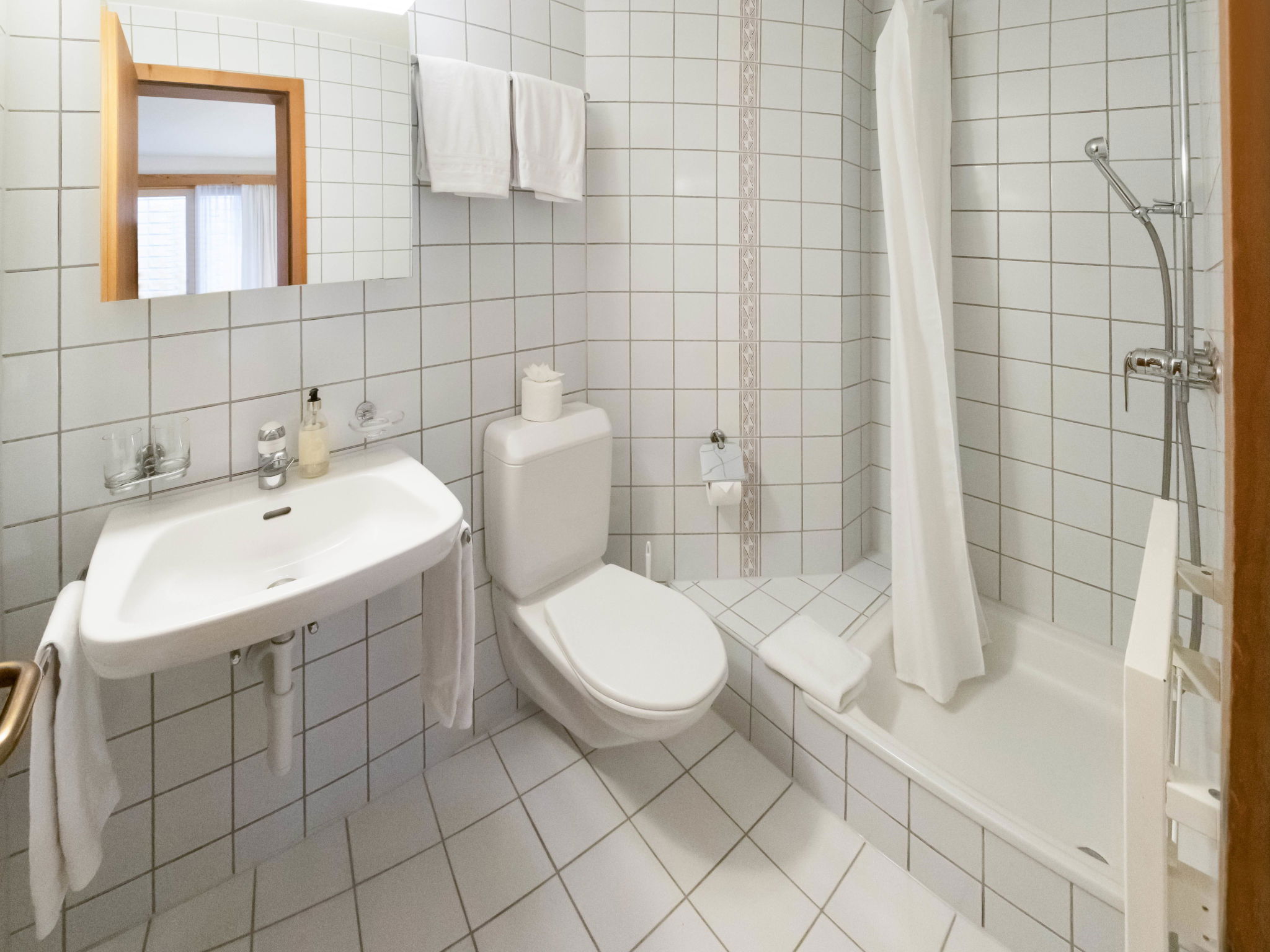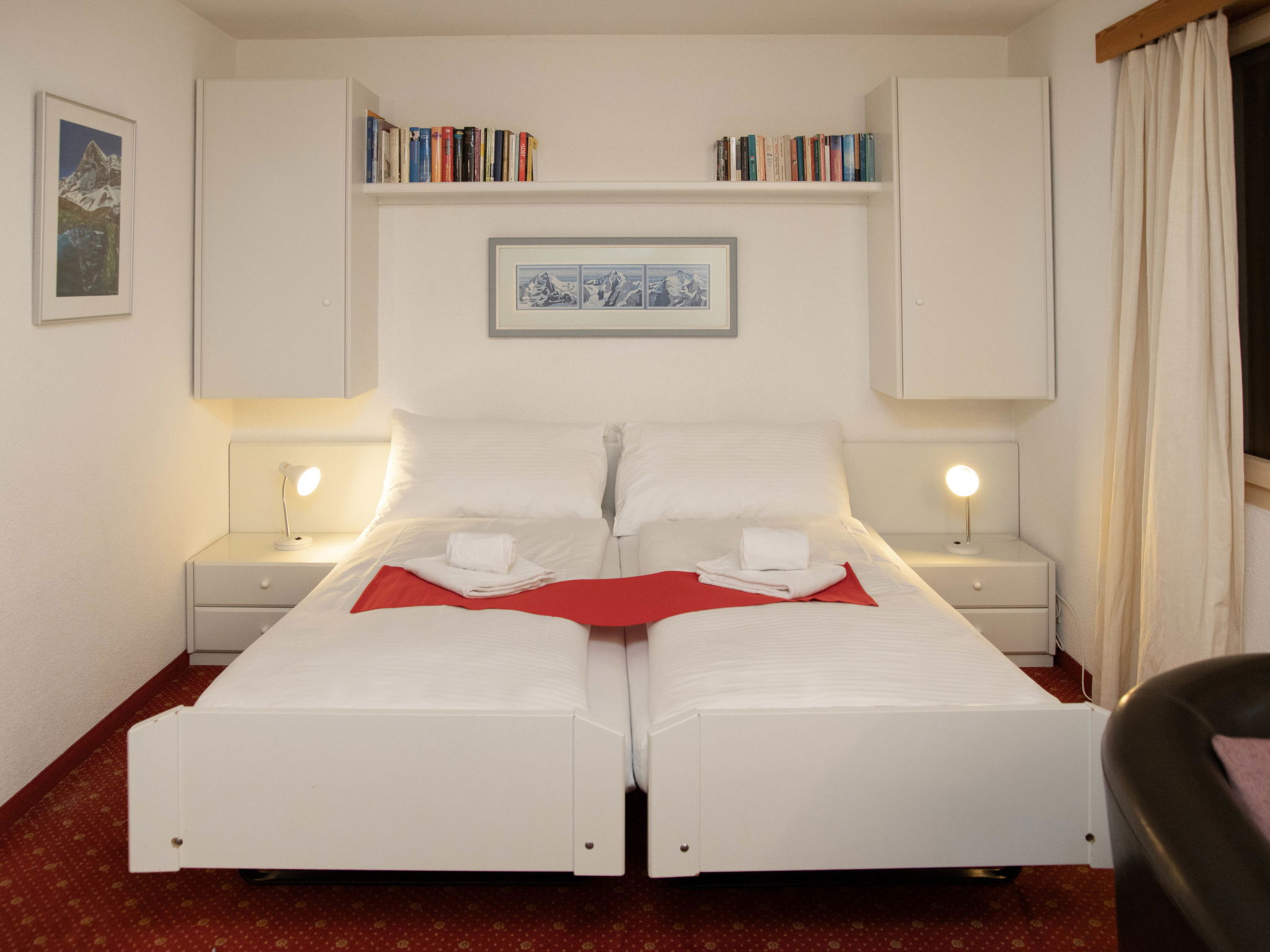 1-room apartment 22 m2. Living/dining room with 2 beds and cable TV (flat screen). Kitchenette (oven, 4 ceramic glass hob hotplates, toaster, kettle, electric coffee machine). Shower/WC. Floor heating. Partial view of the mountains and Eiger. Facilities: hair dryer. Internet (WiFi, free). Please note: non-smokers only. Maximum 1 pet/ dog allowed. A fondue set (meat or cheese) and a raclette oven can be borrowed from reception.
