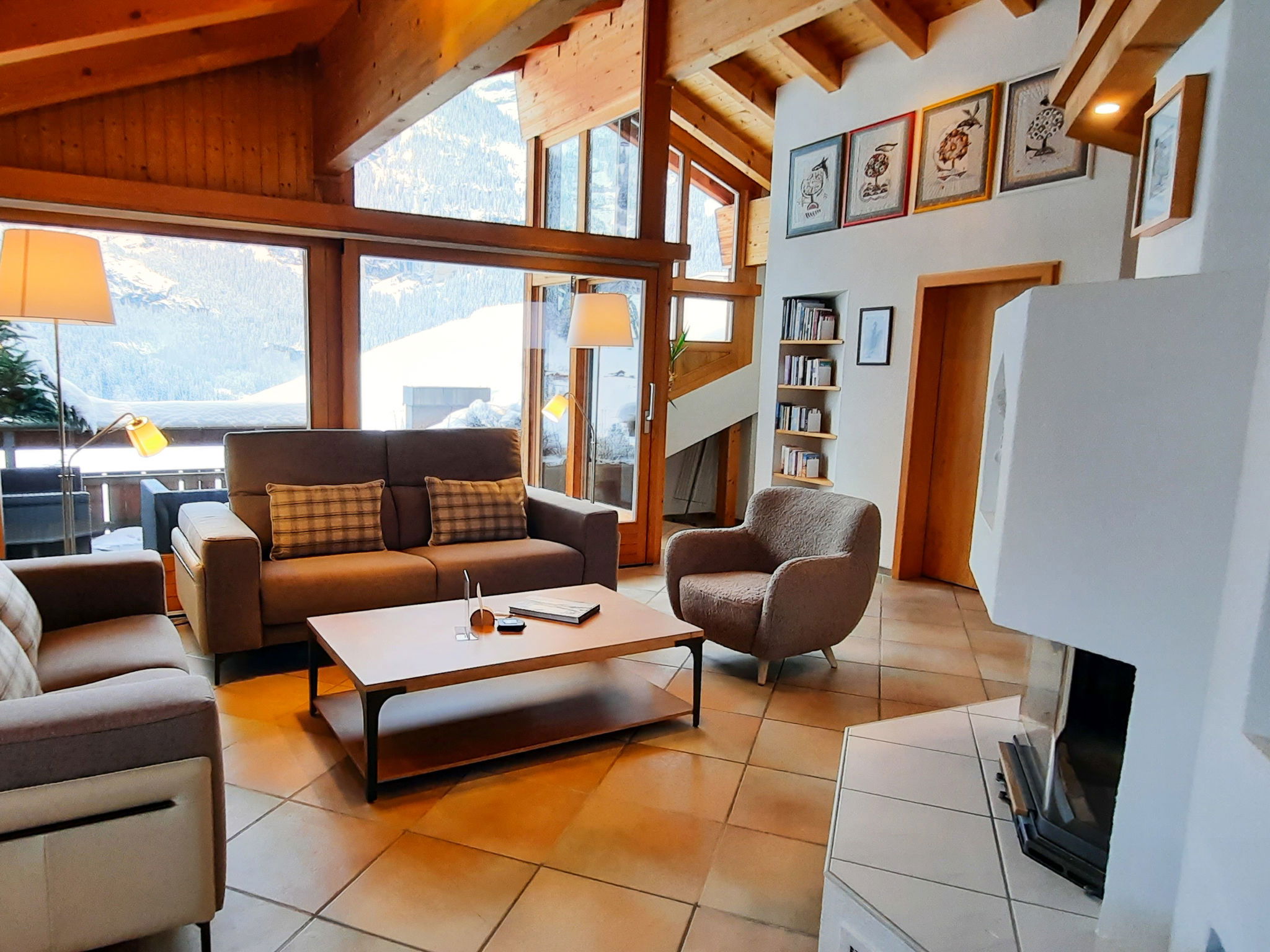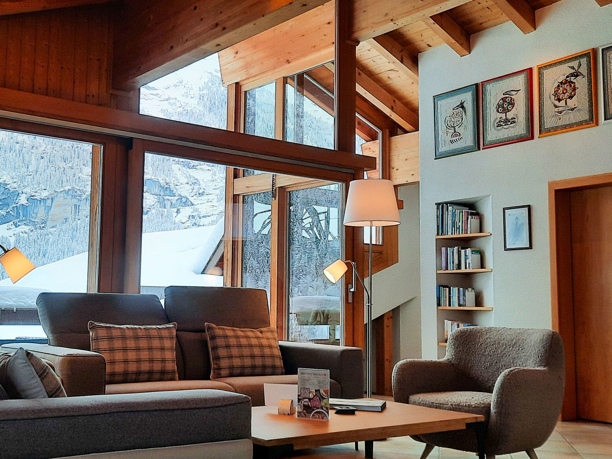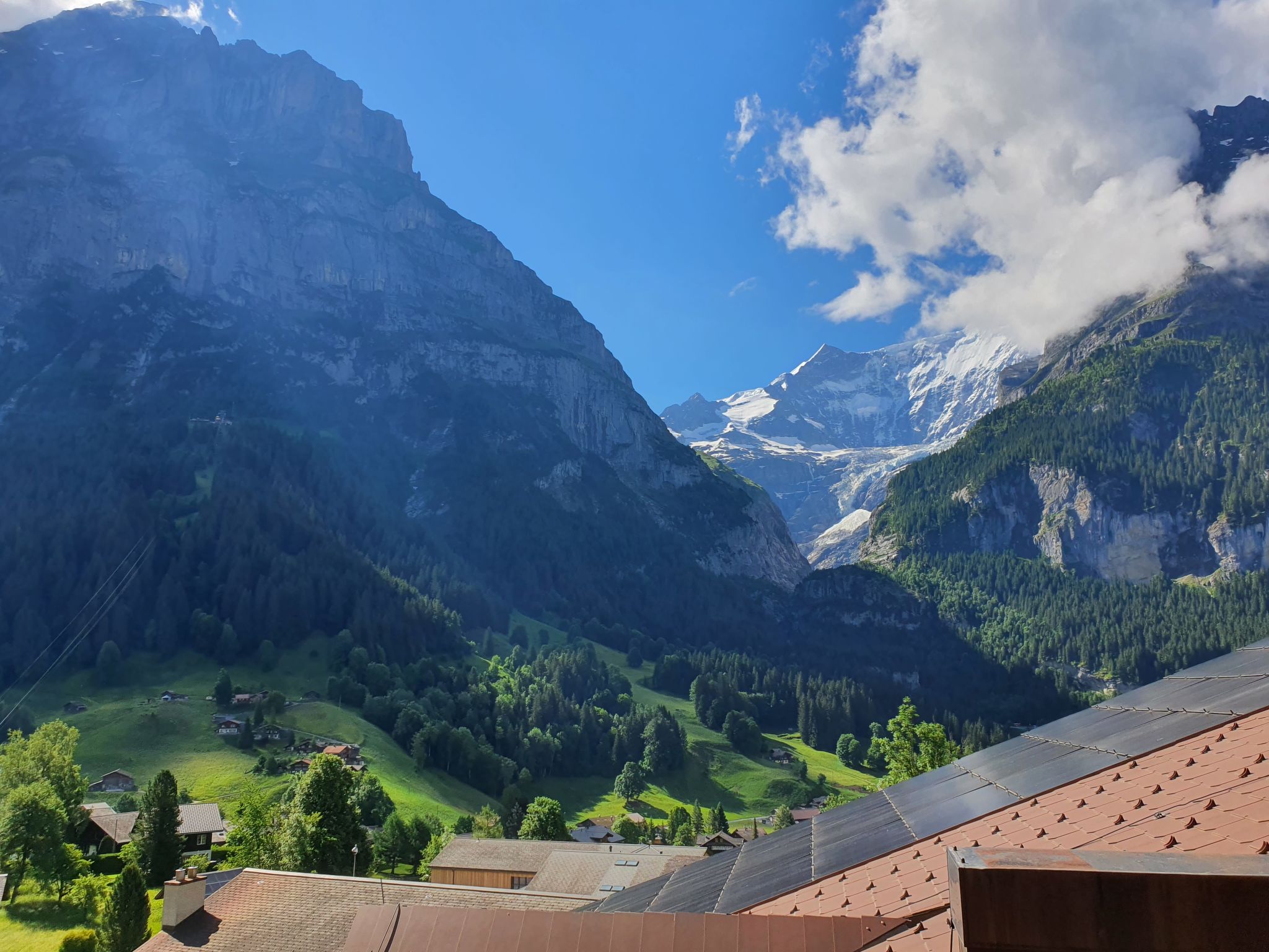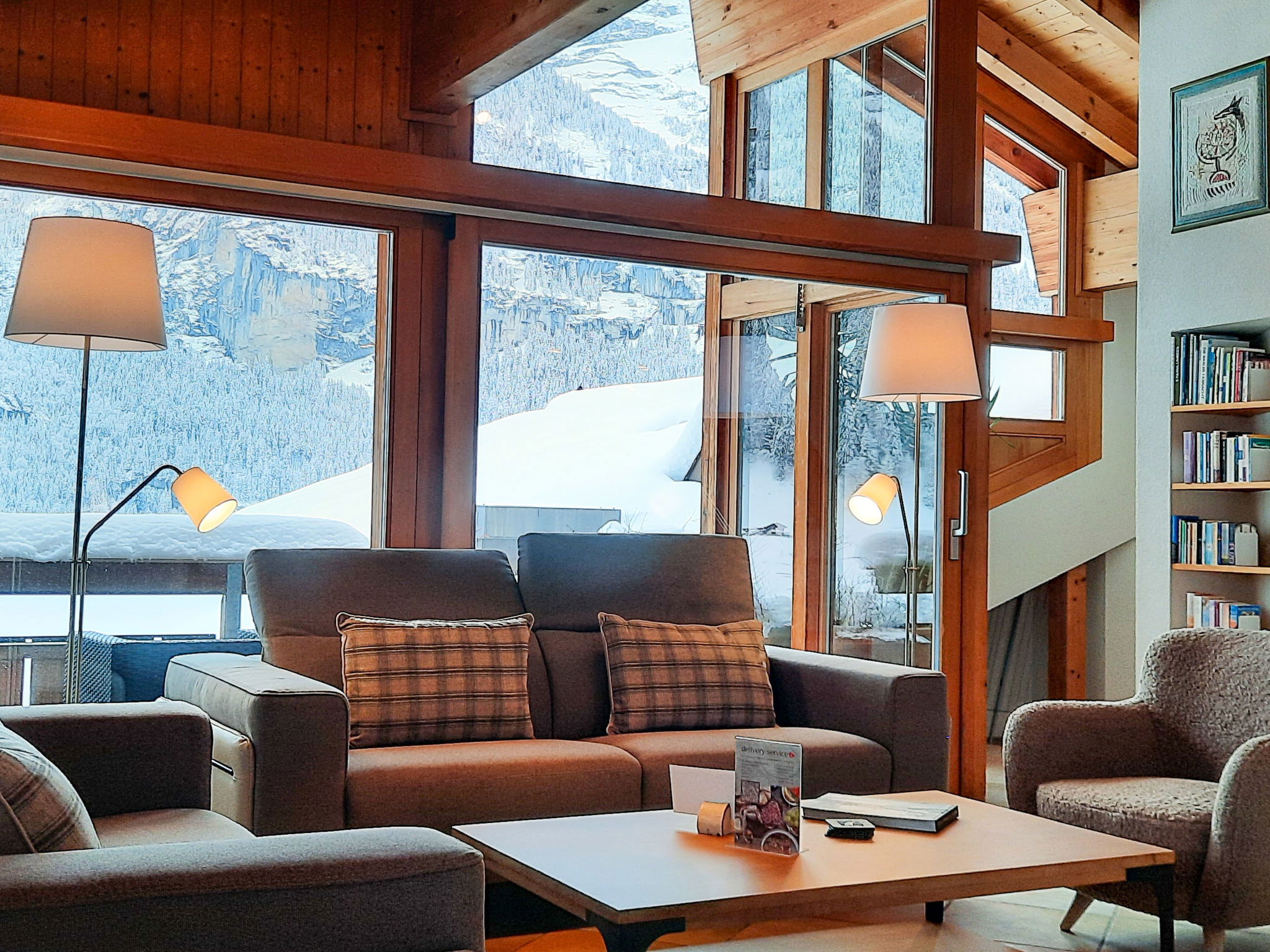 4-room apartment 124 m2, on the top floor. Partly with sloping ceilings, comfortable and cosy furnishings: living/dining room with open-hearth fireplace and cable TV (flat screen). Exit to the balcony, south facing position. 1 room with 1 french bed (180 cm, length 200 cm). 1 room with 1 french bed (140 cm, length 200 cm). 1 double bedroom with 2 beds (90 cm, length 190 cm), bath/shower/WC and cable TV. Open kitchen (oven, dishwasher, 4 ceramic glass hob hotplates, toaster, kettle, microwave, electric coffee machine, Capsules for coffee machine (Nespresso) extra). Bath/WC, sep. WC. Balcony 16 m2, south facing position. Terrace furniture. Marvellous view of the mountains and Eiger. Facilities: hair dryer. Internet (WiFi, free). Please note: non-smokers only. Maximum 1 pet/ dog allowed. A fondue set (meat or cheese) and a raclette oven can be borrowed from reception. Access to the apartment by elevator and stairs.
