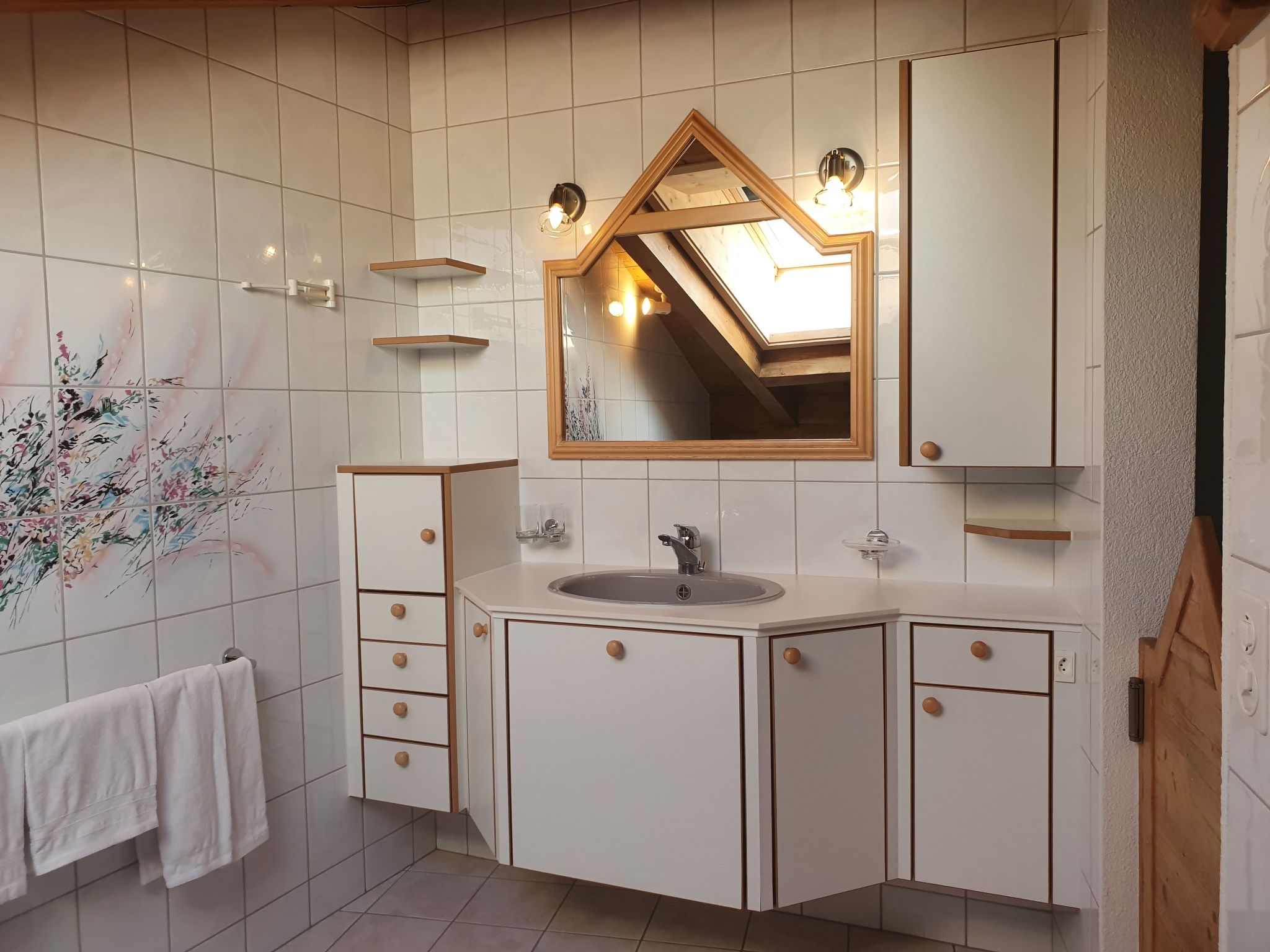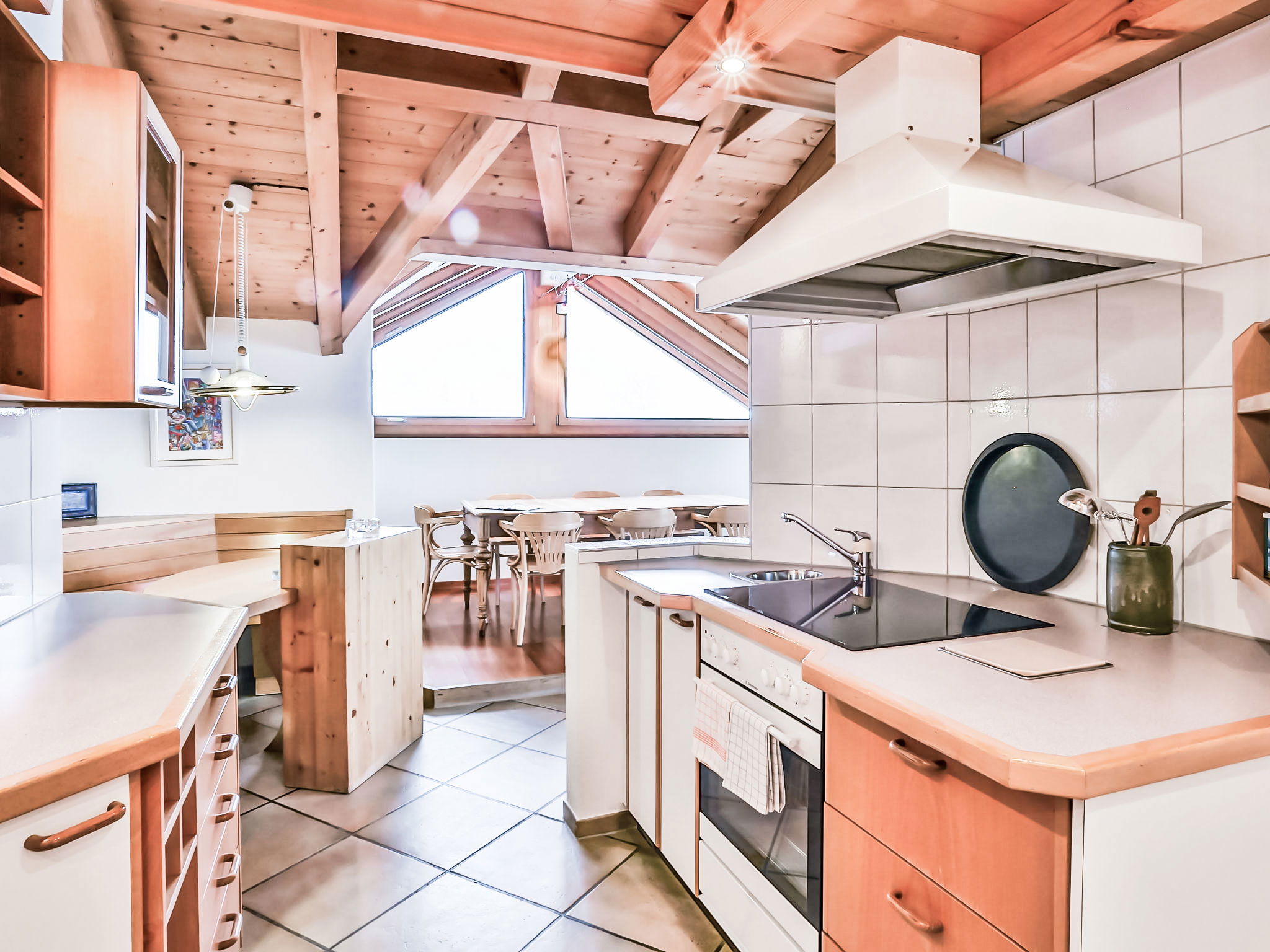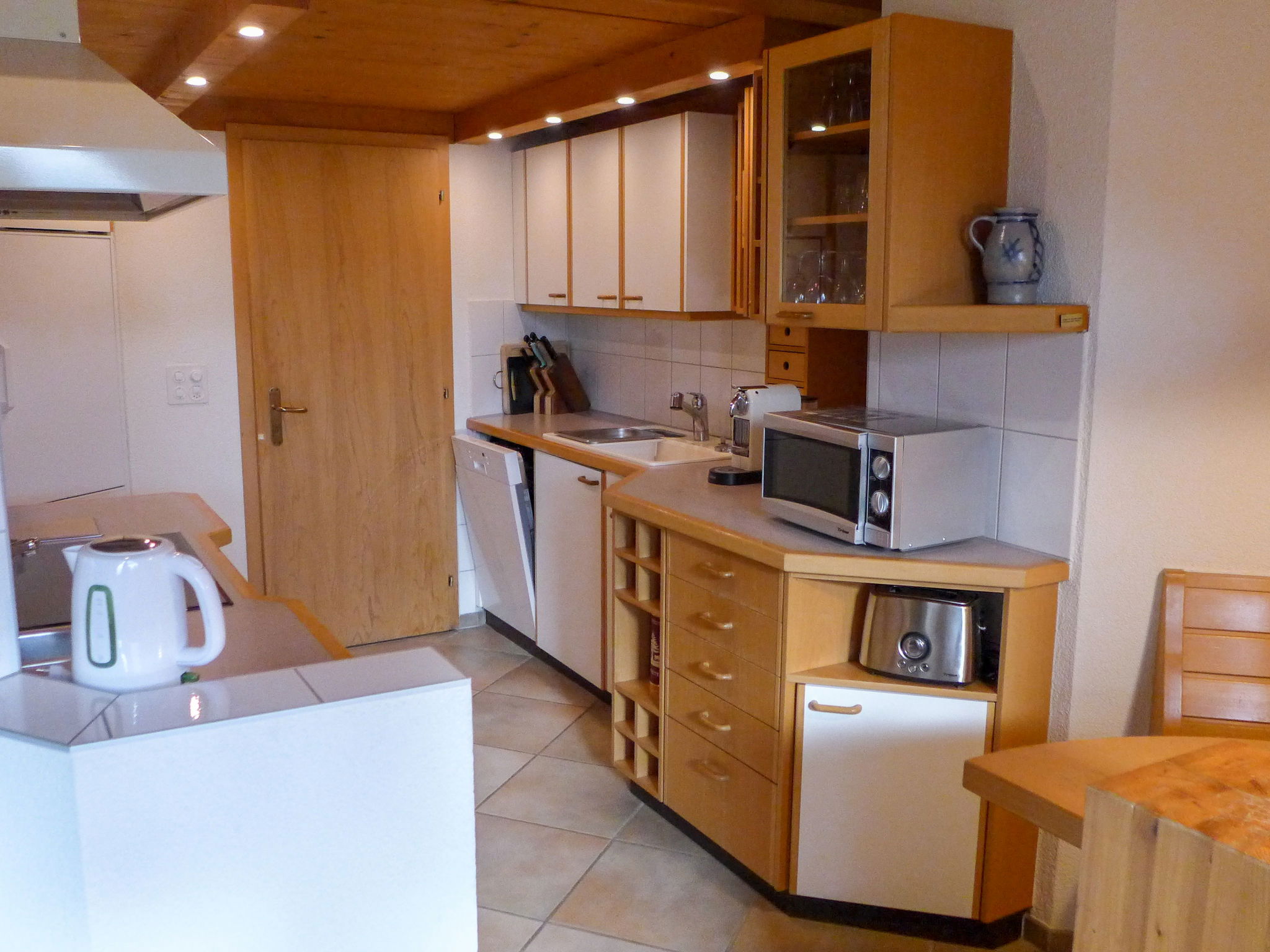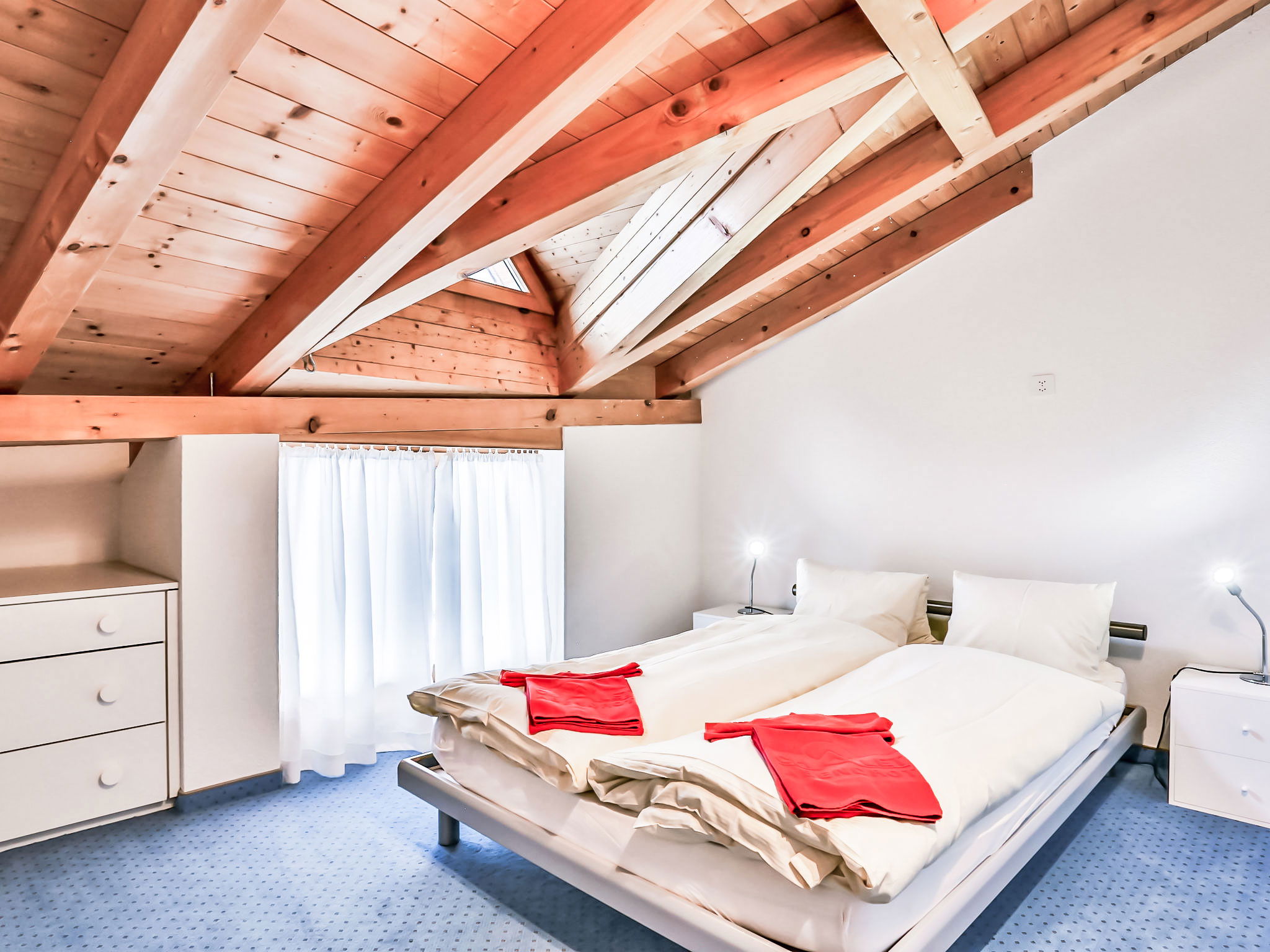 4-room apartment 124 m2, on the top floor. Partly with sloping ceilings, comfortable and cosy furnishings: living/dining room with open-hearth fireplace and cable TV (flat screen). Exit to the balcony, south facing position. 1 room with 1 french bed (180 cm, length 200 cm). 1 room with 1 french bed (140 cm, length 200 cm). 1 double bedroom with 2 beds (90 cm, length 190 cm), bath/shower/WC and cable TV. Open kitchen (oven, dishwasher, 4 ceramic glass hob hotplates, toaster, kettle, microwave, electric coffee machine, Capsules for coffee machine (Nespresso) extra). Bath/WC, sep. WC. Balcony 16 m2, south facing position. Terrace furniture. Marvellous view of the mountains and Eiger. Facilities: hair dryer. Internet (WiFi, free). Please note: non-smokers only. Maximum 1 pet/ dog allowed. A fondue set (meat or cheese) and a raclette oven can be borrowed from reception. Access to the apartment by elevator and stairs.