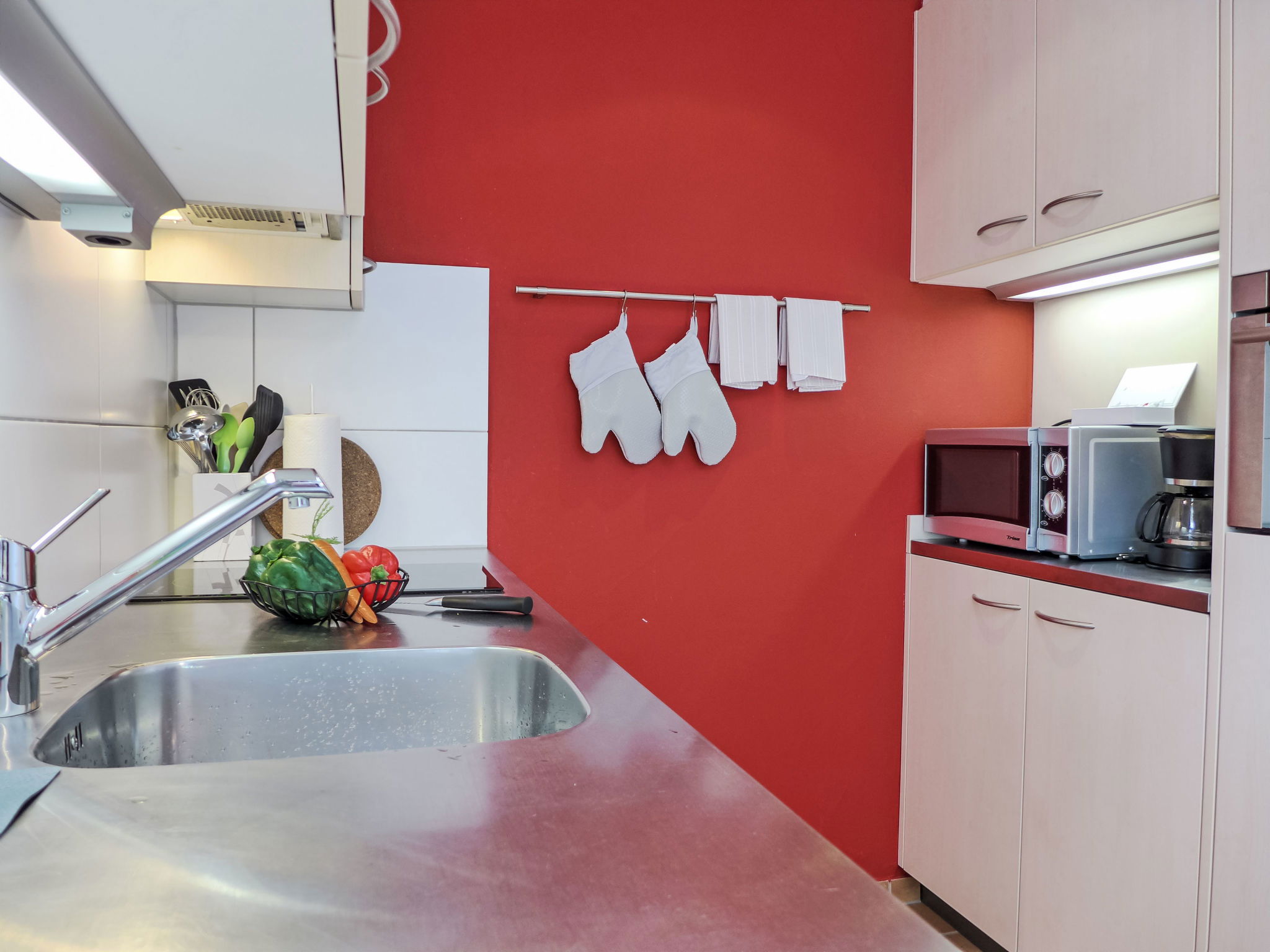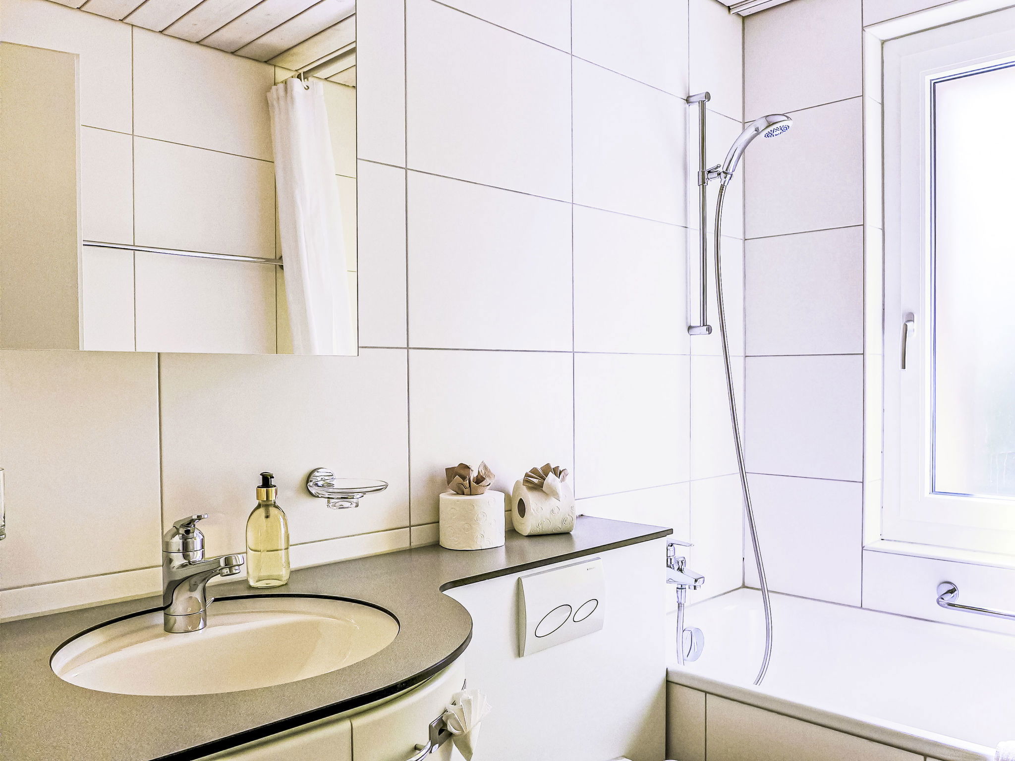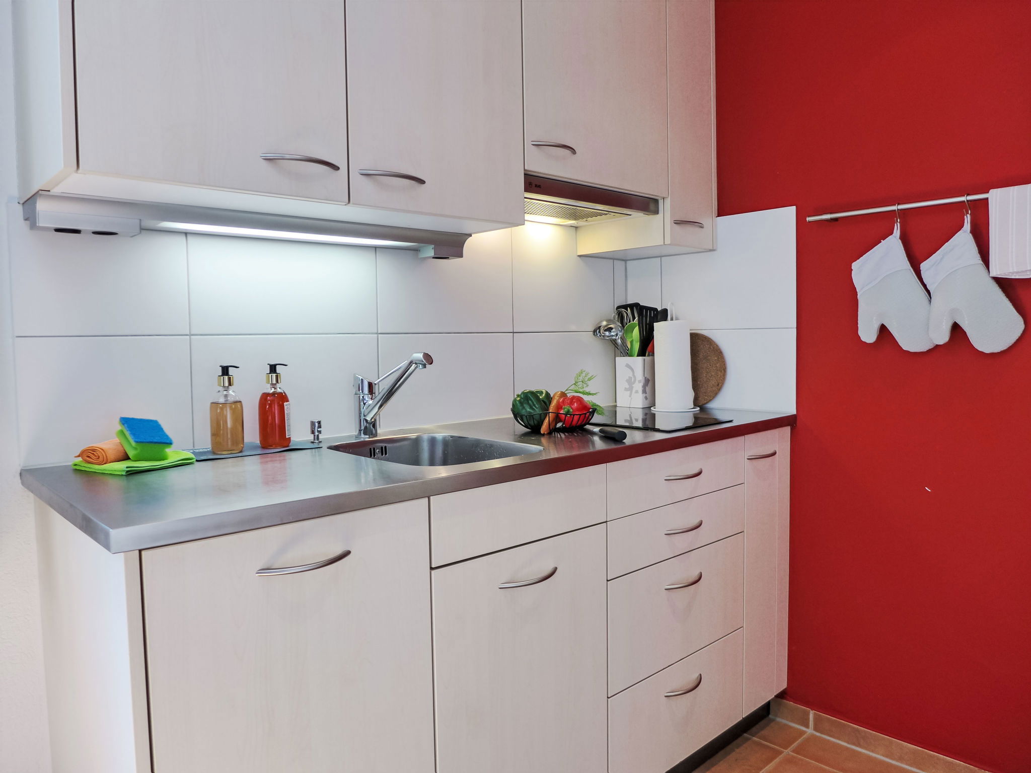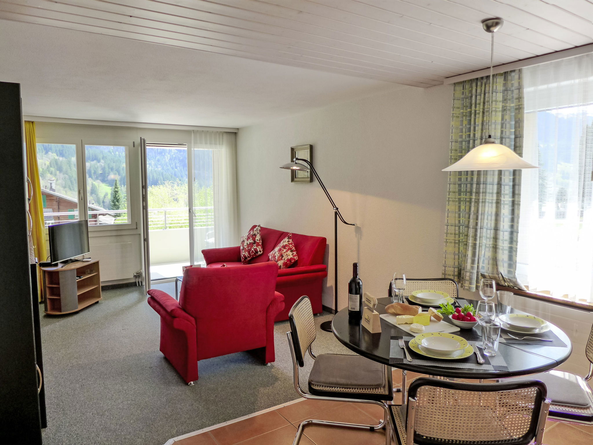 2-room apartment 40 m2 on 1st floor, south facing position. Bright, practical and cosy furnishings: open living/sleeping room with 1 wall-trunk bed (90 cm, length 200 cm), dining table and satellite TV. Exit to the balcony. 1 room with 1 double bed (2 x 90 cm, length 200 cm). Open kitchen (oven, dishwasher, 2 ceramic glass hob hotplates, toaster, kettle, microwave, electric coffee machine, raclette grill, fondue Set (cheese)). Bath/WC. Carpet. Balcony, south facing position. Balcony furniture. Marvellous view of the mountains and the countryside. Facilities: hair dryer. Internet (WiFi, free). Parking at the house. Maximum 1 pet/ dog allowed.