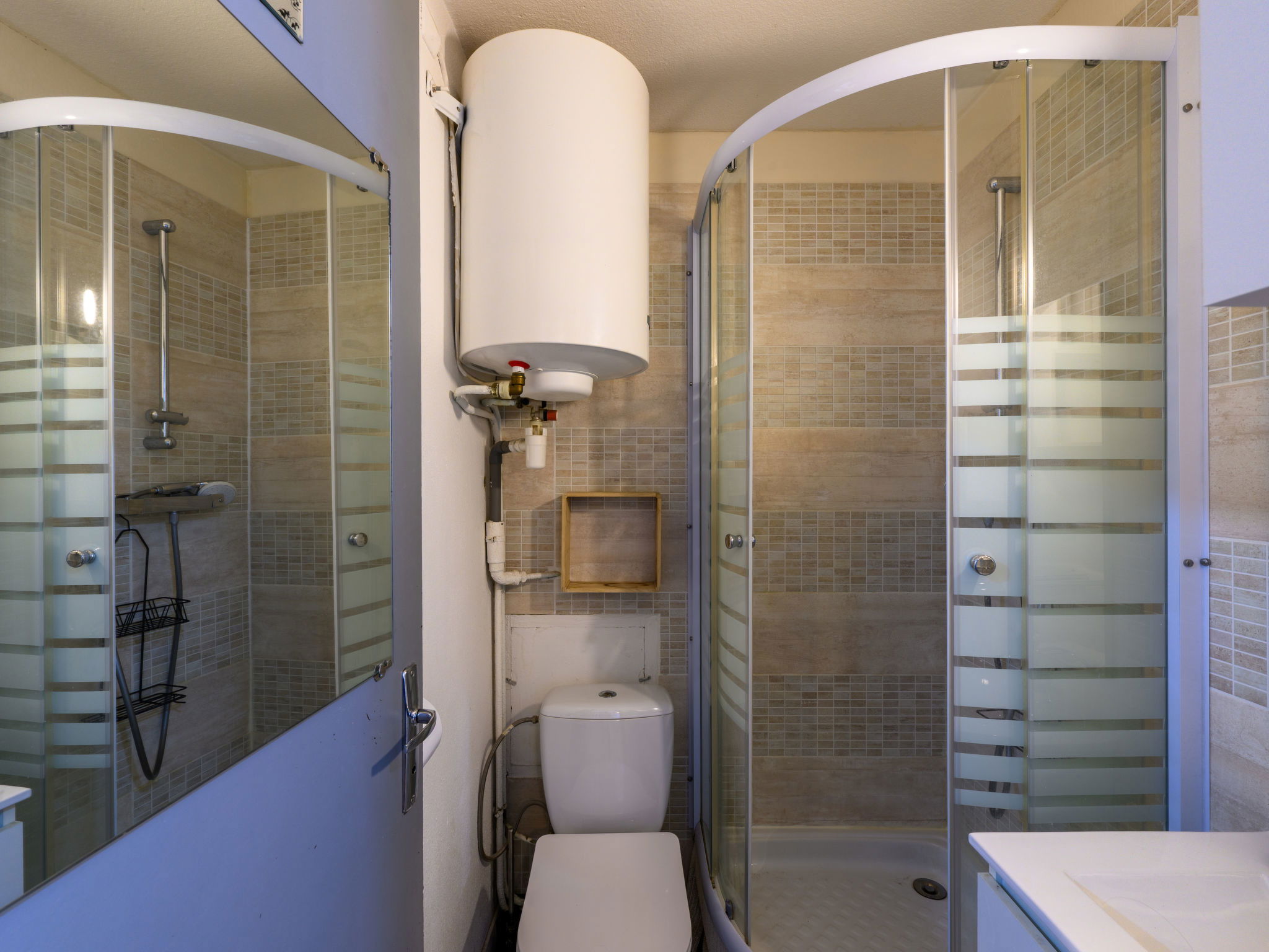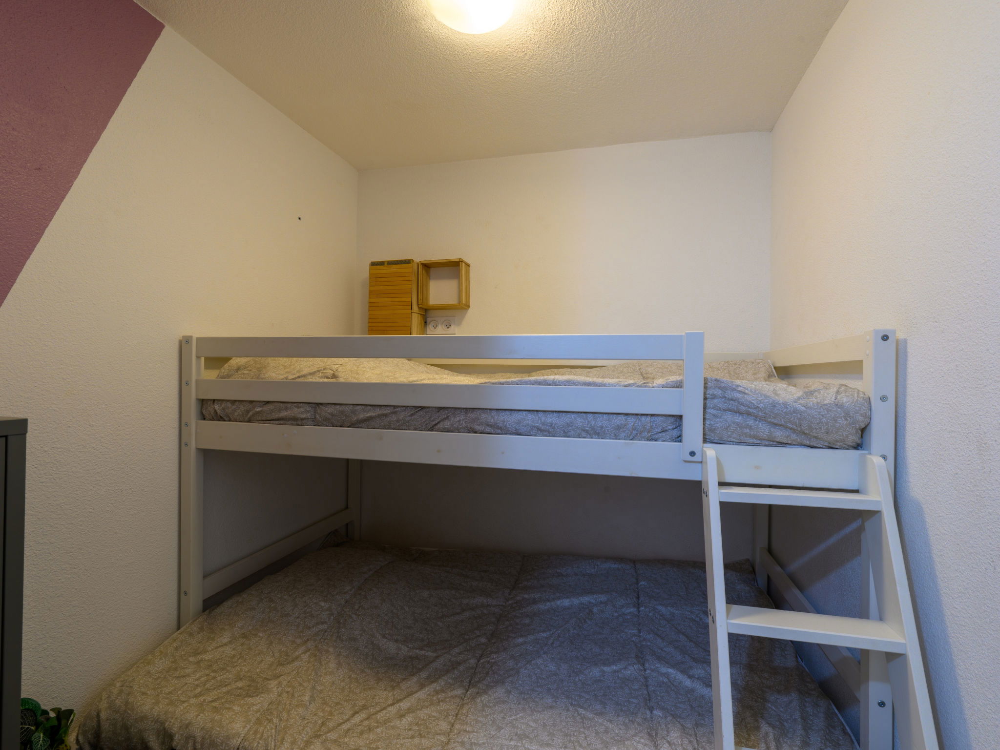 2-room apartment 25 m2 on 3rd floor. Comfortable and beautiful furnishings: living/dining room with TV (flat screen). Exit to the balcony. 1 open room with 1 french bed (1 x 140 cm, length 190 cm). Entrance hall with 1 bed (120 cm, length 190 cm), 1 sleeping facility (1 x 80 cm, length 190 cm). Open kitchen (2 hot plates, dishwasher, toaster, kettle, microwave, electric coffee machine, Capsules for coffee machine (SENSEO)). Shower/WC. Electric heating. Balcony, north-east facing position. Balcony furniture. Facilities: washing machine. Internet (WiFi, extra). Parking. Please note: 1 pet/ dog allowed. Smoke alarm. Please note: There are bunk beds at the entrance. Offer by a private individual according to Art. 155, IV of CGI.