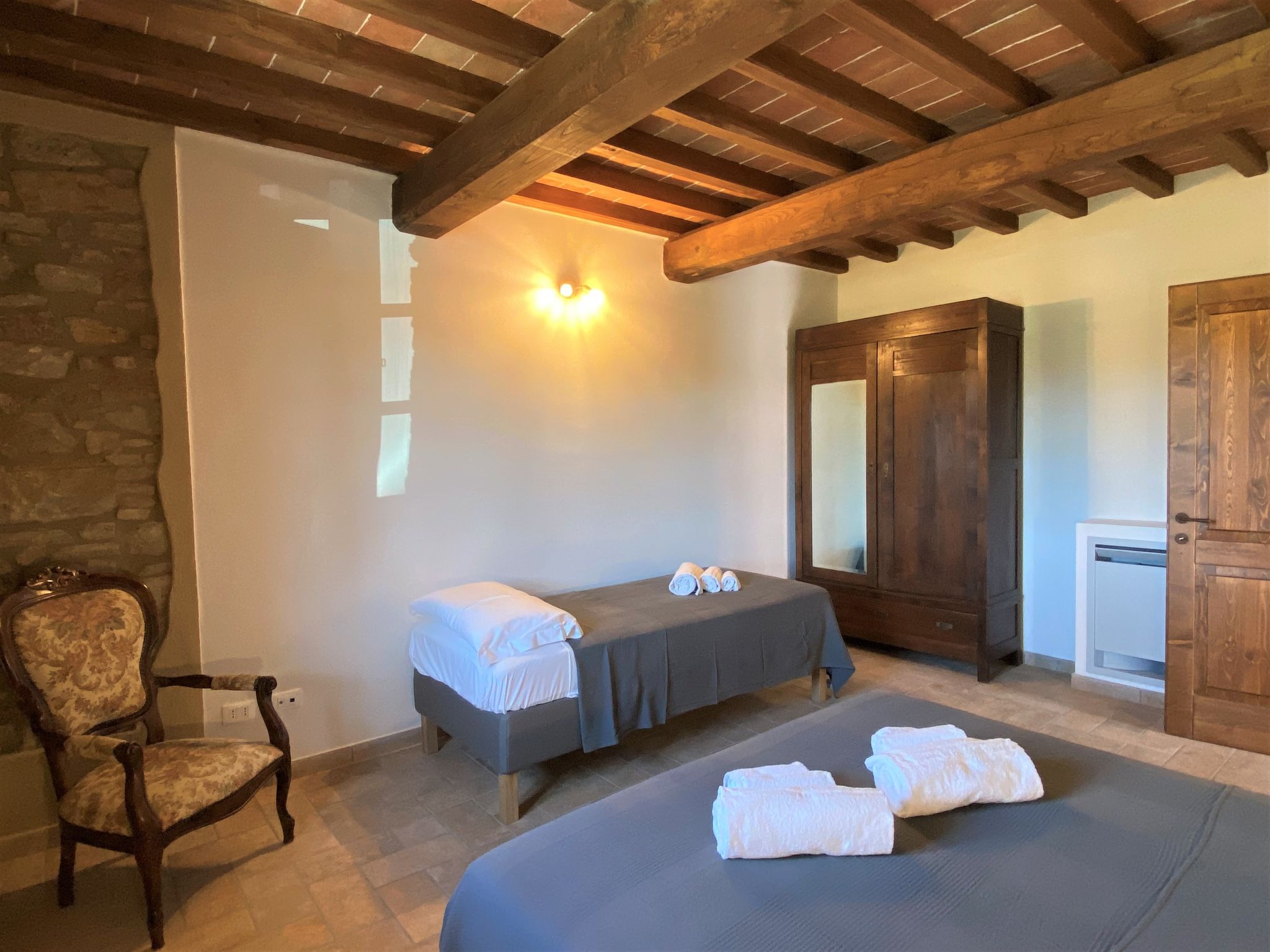 This carefully restored complex is located in the middle of the fields of the Val di Cecina, a few steps from the river of the same name. Much attention was paid to the construction of the swimming pool, where a hydromassage ( about 11 people) and a children's pool carved into the stone were created. Resort "Podere la Querciola", 2 storeys, renovated in 2021, surrounded by meadows and fields. In the district of Casino di Terra 11 km from the centre of Guardistallo, 14 km from the centre of Cecina, in a secluded, quiet position, 16 km from the sea. For shared use: property with plants and trees, swimming pool (6 x 11 m, depth 150 cm, seasonal availability: 01.May. - 15.Oct.). Children's pool, outdoor shower, hot tub, garden furniture, barbecue. In the complex: WiFi, washing machine (extra). Motor access (700 m via unmade road). Parking. Shop 11 km, restaurant 2 km, bar 2 km, bus stop 1.1 km, sandy beach "Marina di Cecina" 16 km. Nearby attractions: Volterra 24 km, Pisa 70 km, Firenze 100 m.