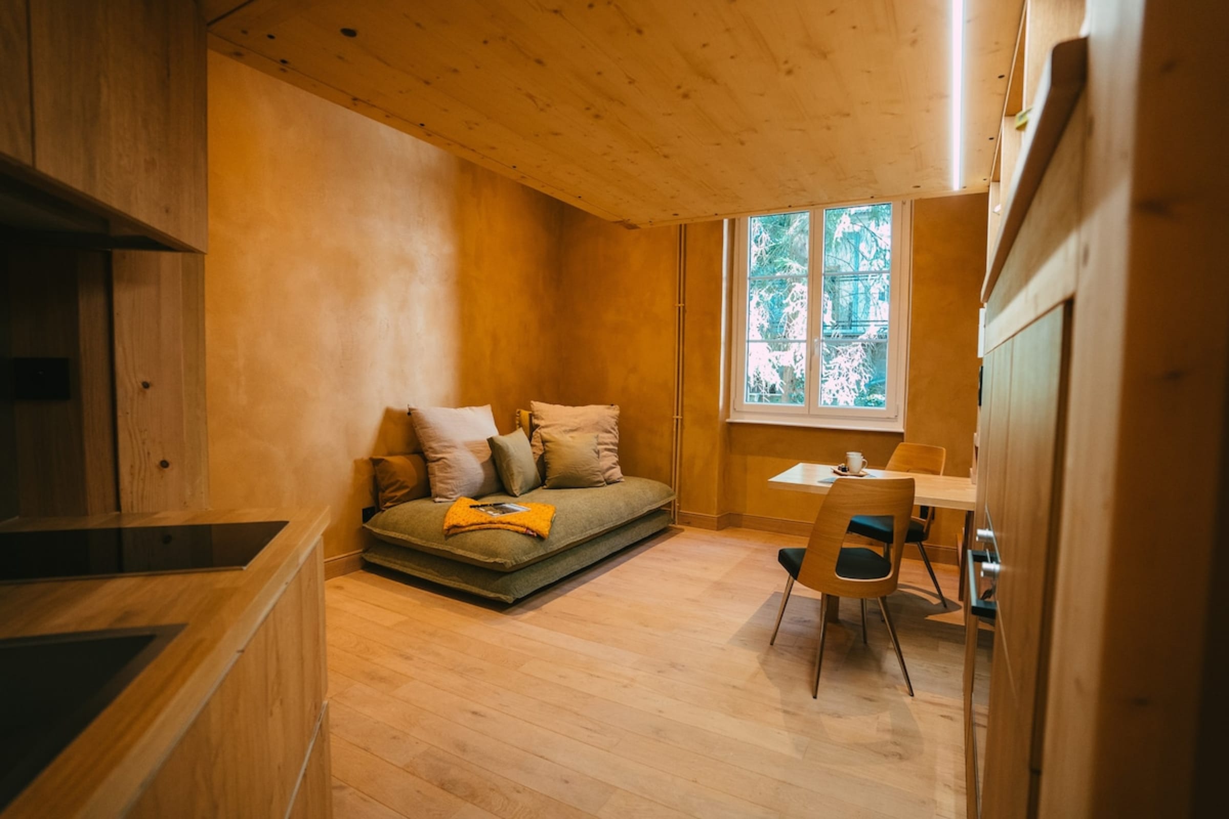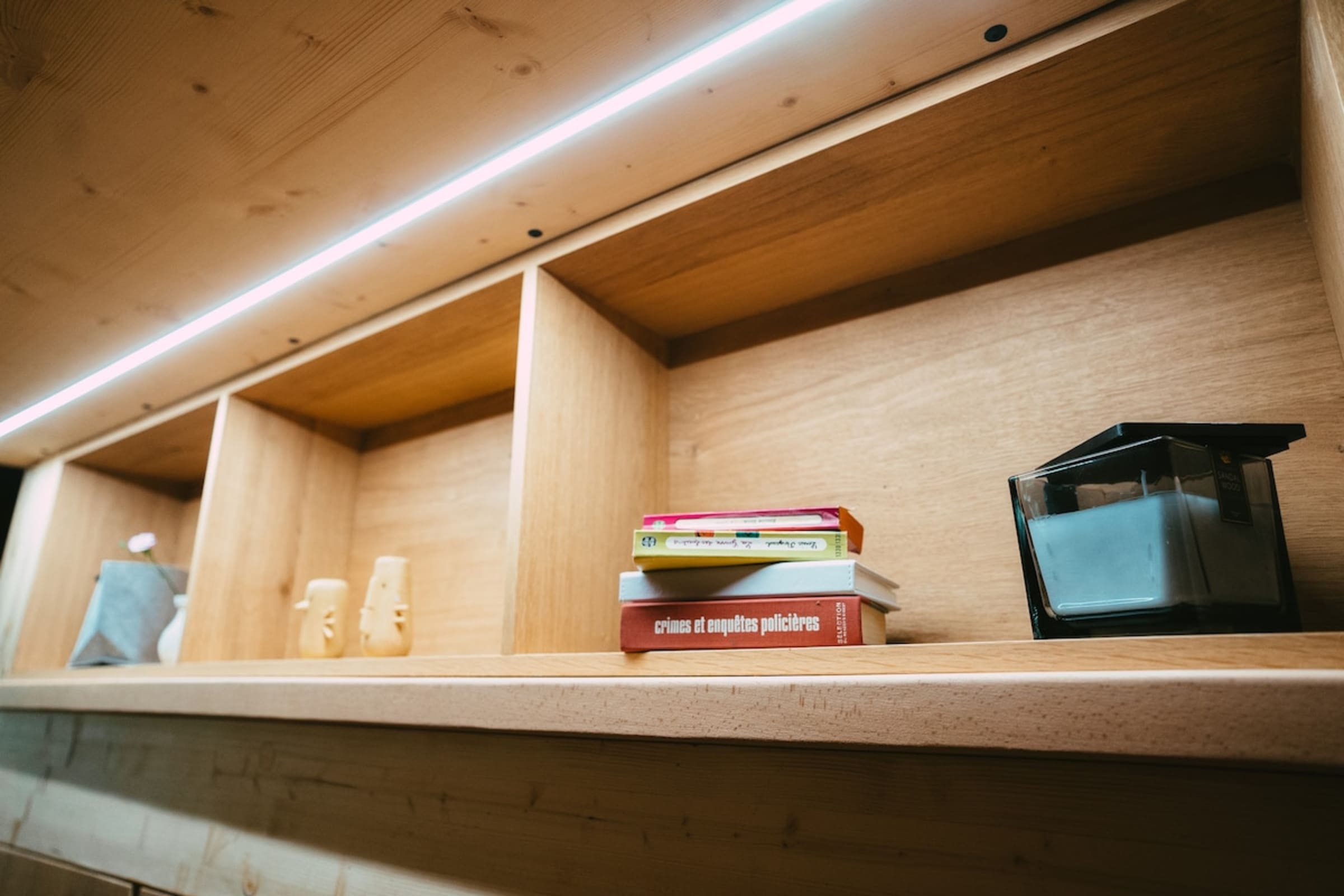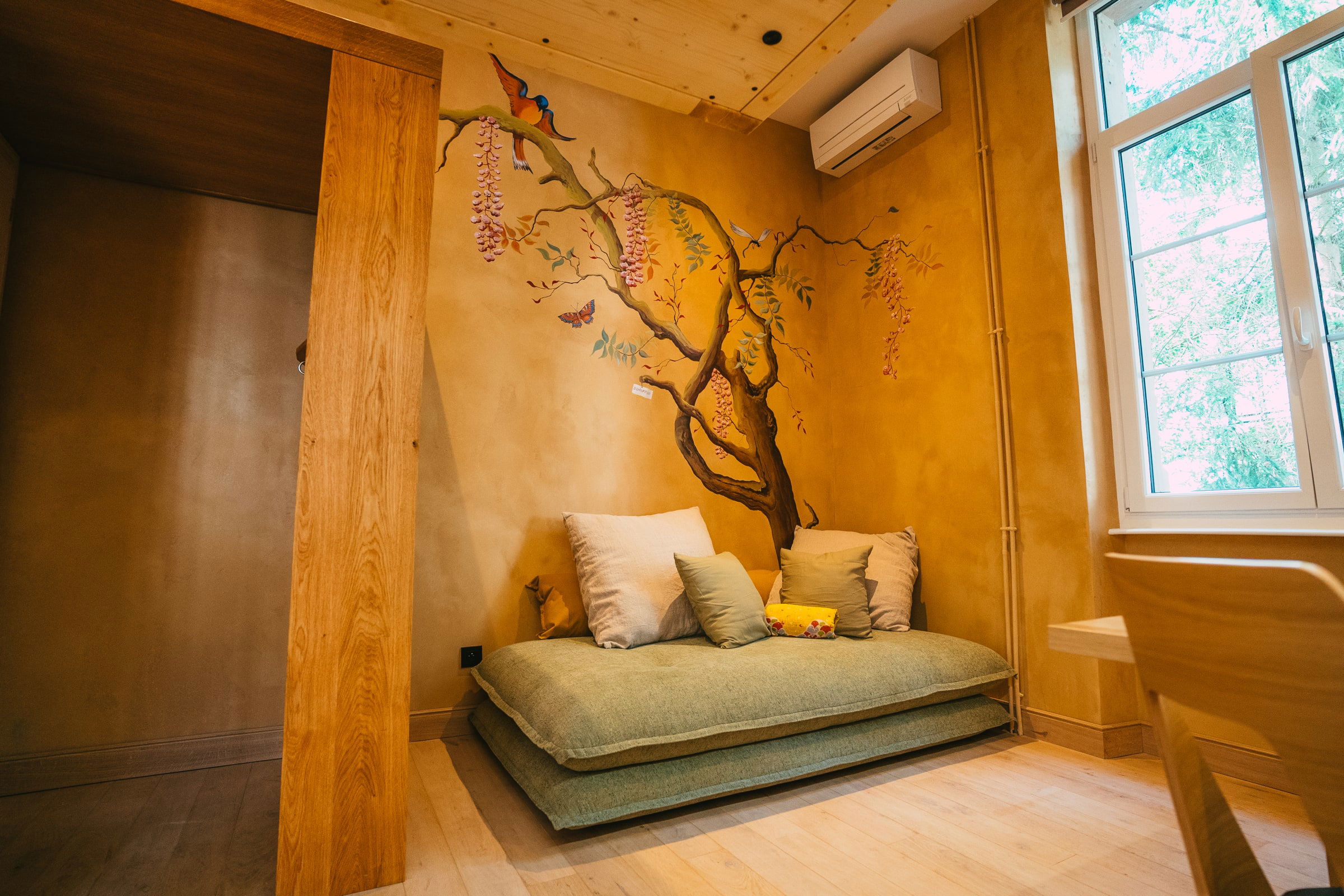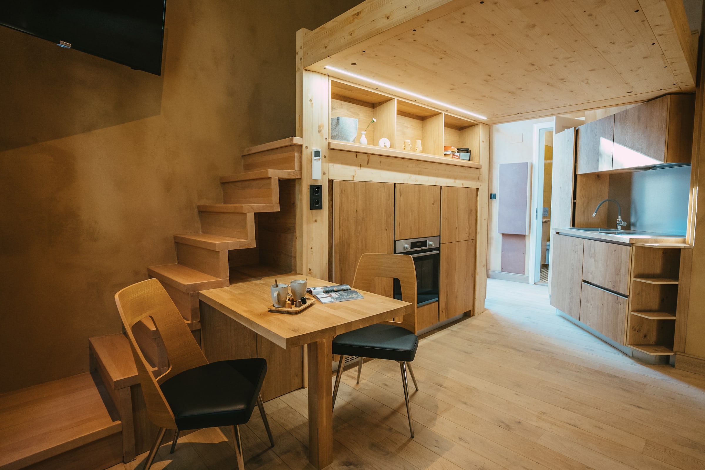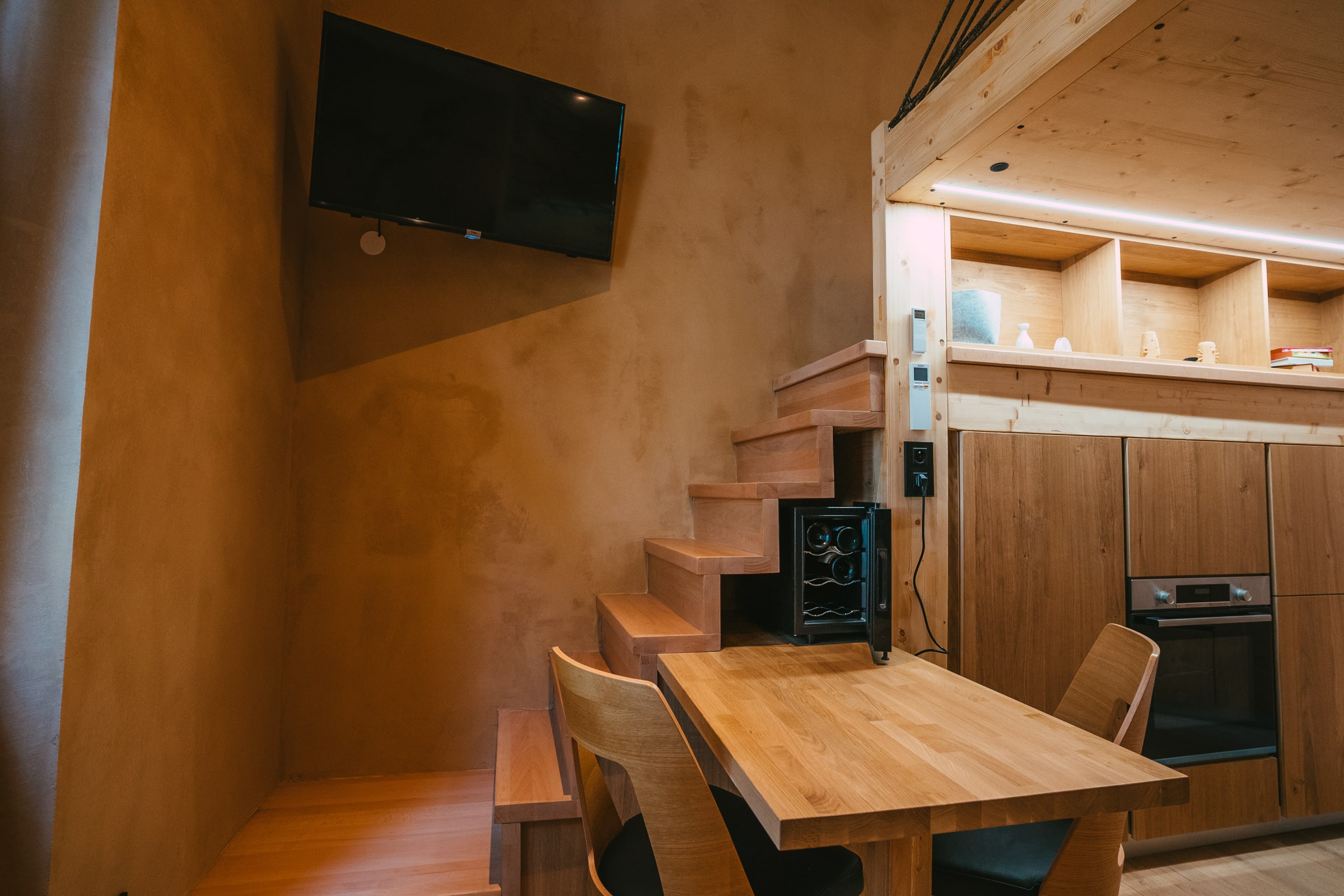 Beautifully and cleverly designed, this studio combined everything you need to enjoy your stay in Alsace. 160x190 cm high-quality bed is hanging above the clouds on a wooden platform ( only reachable with stairs ) to offer a cosy and comforting environment.