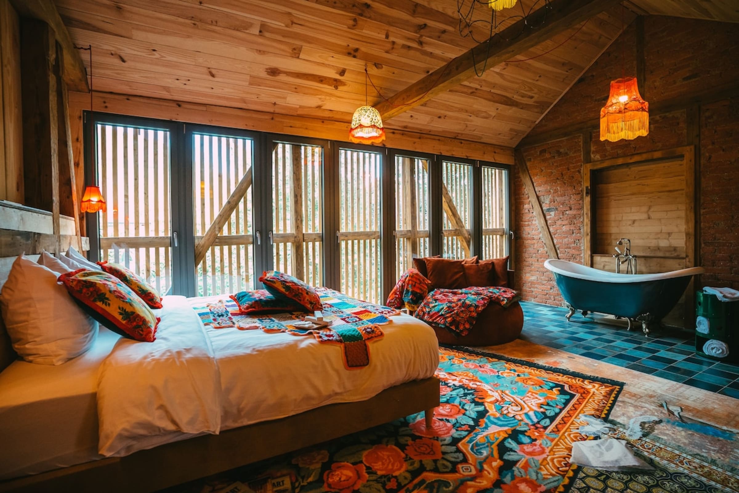 Pack your suitcases and get to know our amazing and unique accommodation : " La Bohème". Unwind in a cosy and vibrant atmosphere full of color and good vibes and a touch of "Gipsy chic" ! Everything has been hand-made into details. Nothing is left to chance : self-designed furniture, hand-picked vintage furniture from here and there, custom carpeting ... " La Bohème" is an open space loft surrounded by windows all around that leave you with the impression to sleep in the middle of nature. Bathtub directly in the room + a private bathroom with an Italian shower for those who want more privacy ! It has everything you need for a perfect stay including a kitchen ( convertible microwave/oven, hobs, dishwasher, fridge, kettle, coffee machine, toaster ) and dining room. The accommodation is part of " Domaine Bohème " a traditional 19th century mansion. Renovated with heart and passion by local craftsmen. More than a rental; a unique and unforgettable experience where we leave with stars in the eyes and we come back with stars in the heart...