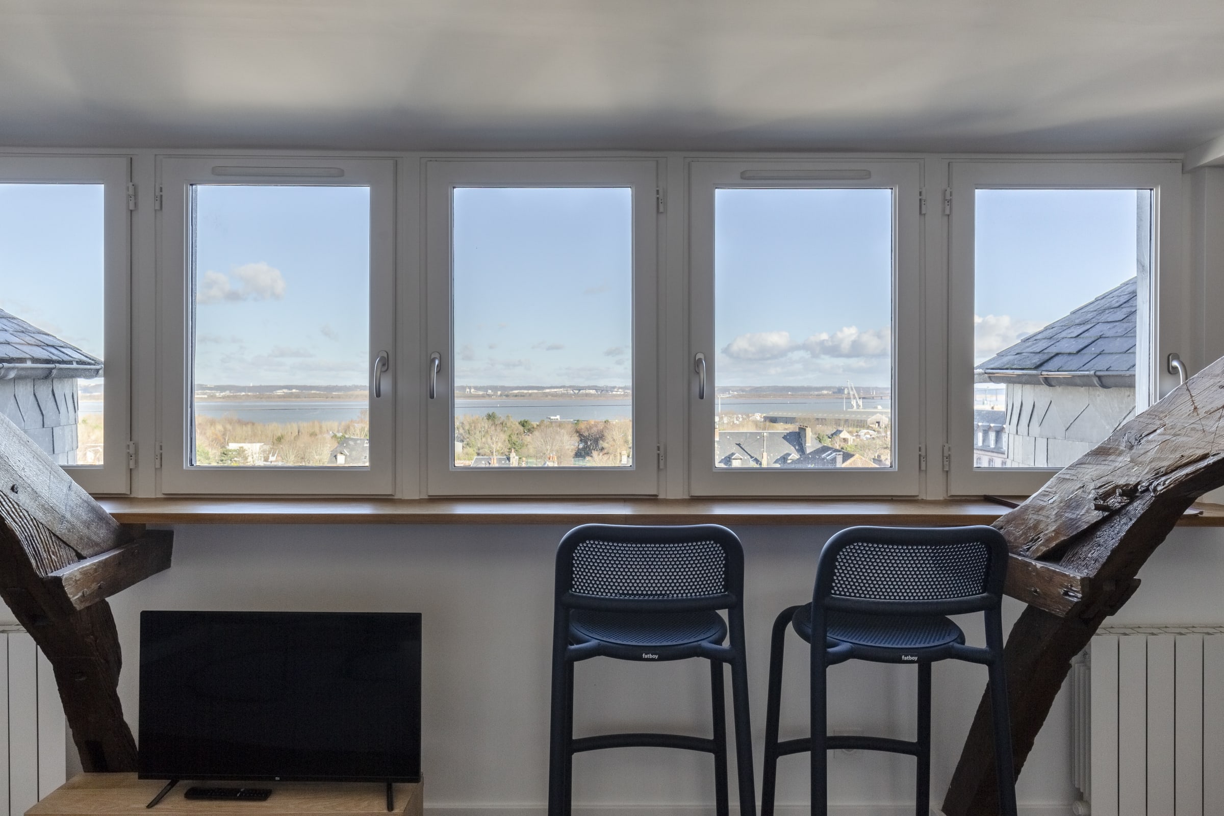 Nestled on the 3rd and last floor of an atypical building (narrow spiral staircases), its summit offers a superb view of the Estuary!