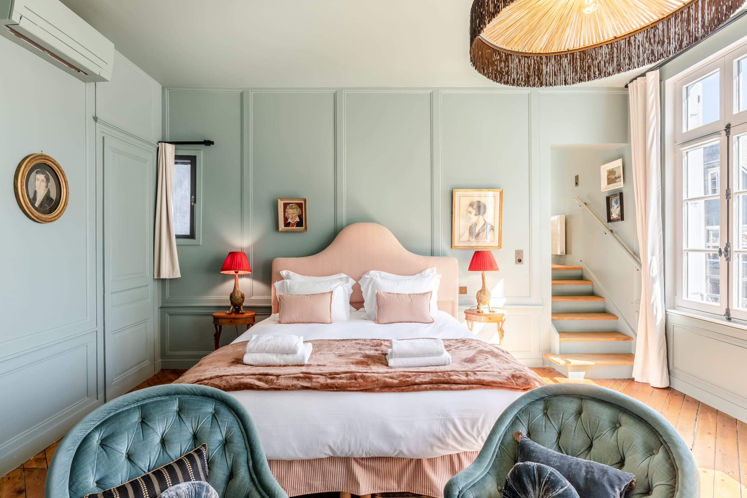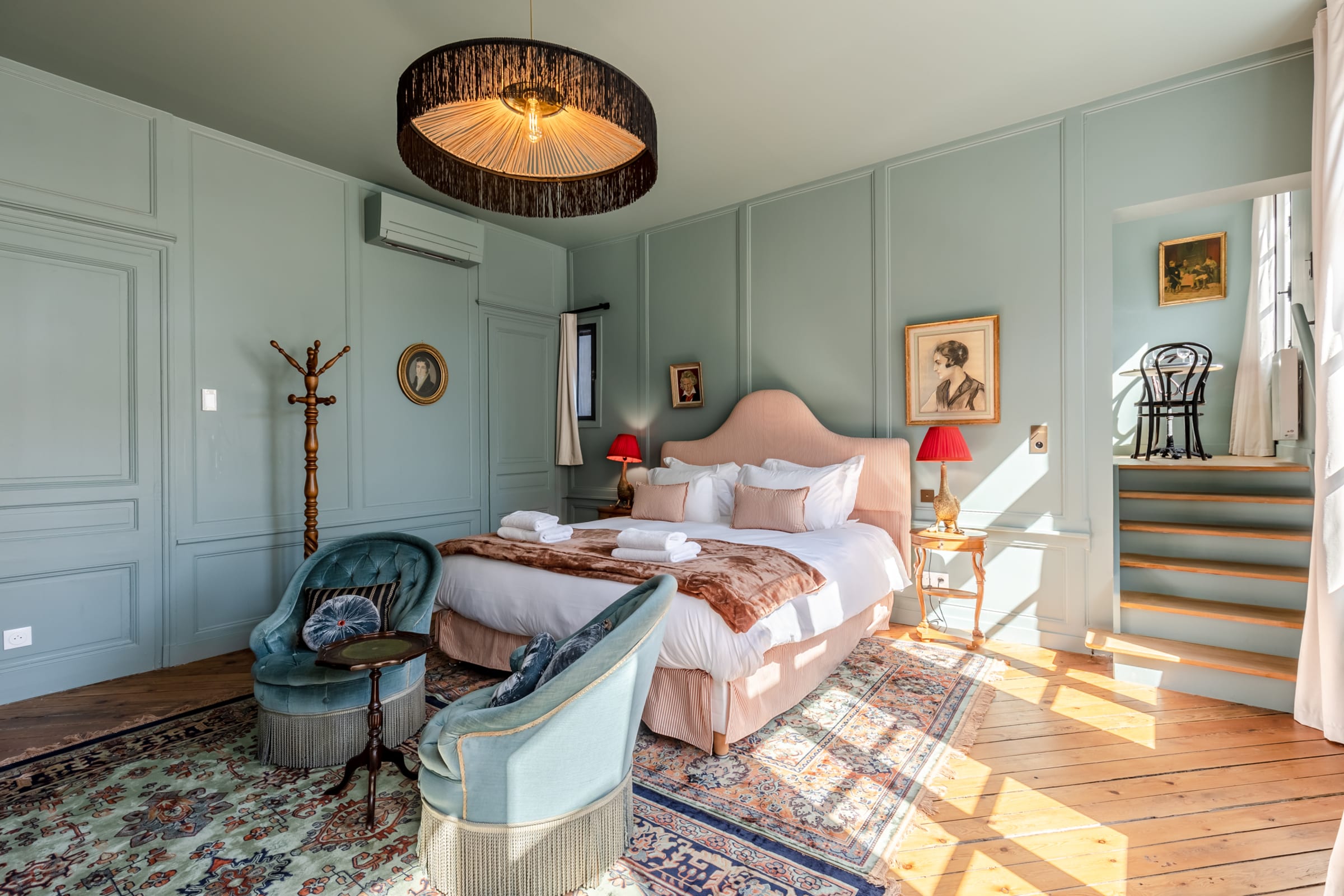 High ceilings, neat decoration and designer furniture, you will be completely seduced by the retro chic atmosphere and the light that this suite will offer you!