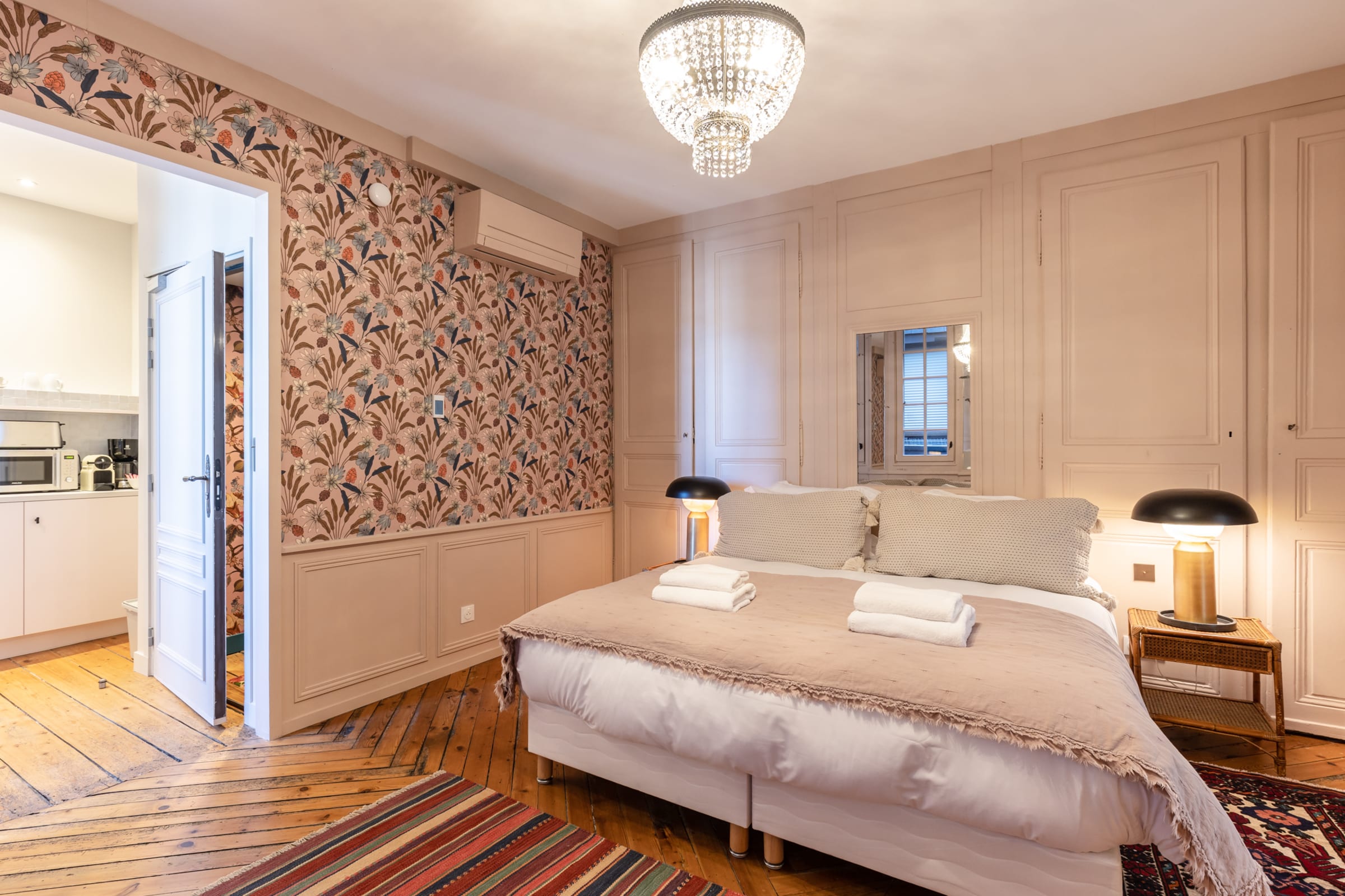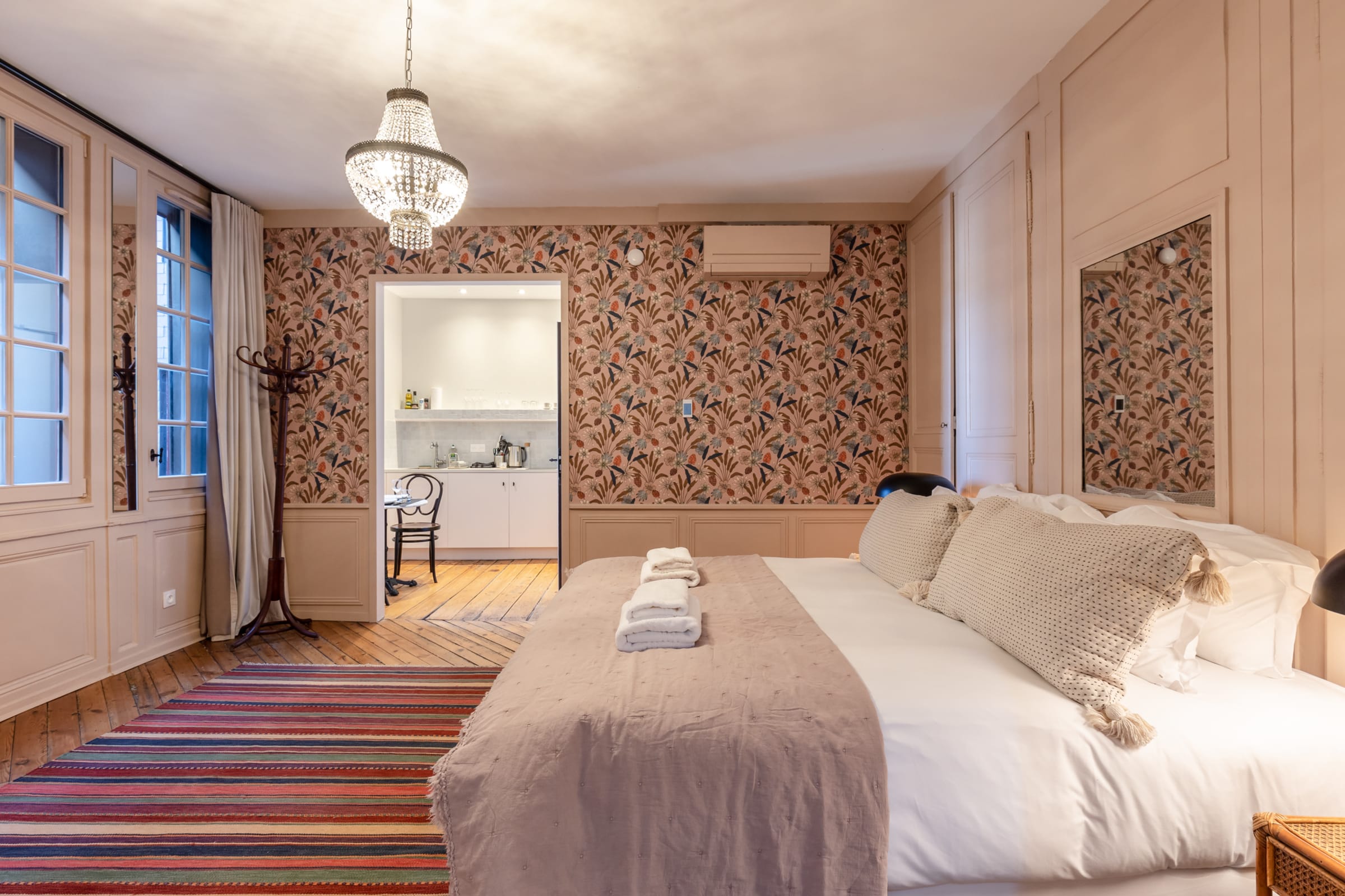 Neat decoration and designer furniture, you will be completely seduced by the retro chic atmosphere and the light that this suite will offer you!