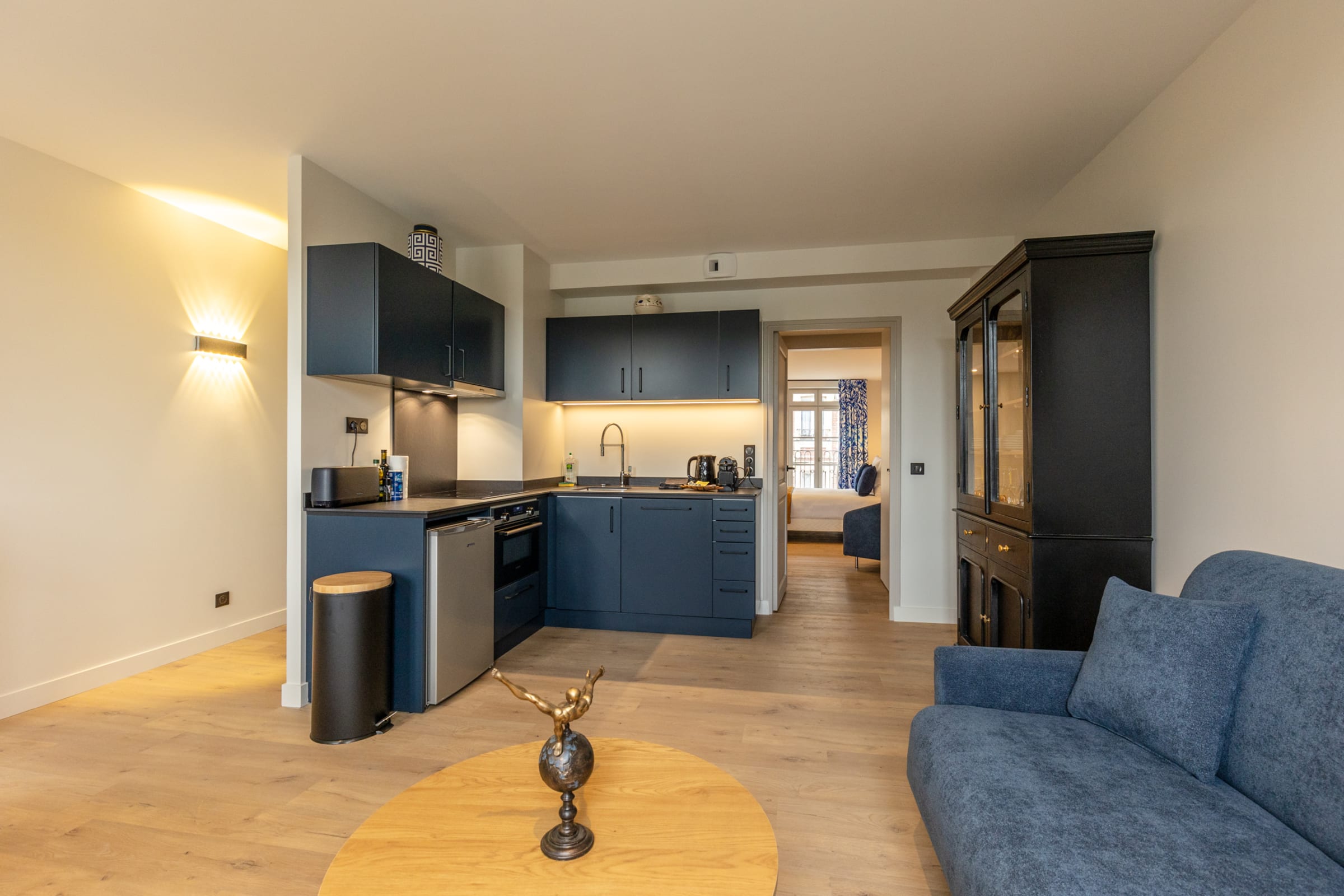 The apartment has a beautiful living room with air conditioning and electric fireplace, top quality convertible sofa, dining room, fully equipped American kitchen (kettle, toaster, Nespresso, oven, microwave, refrigerator, freezer, washing machine). dishes),