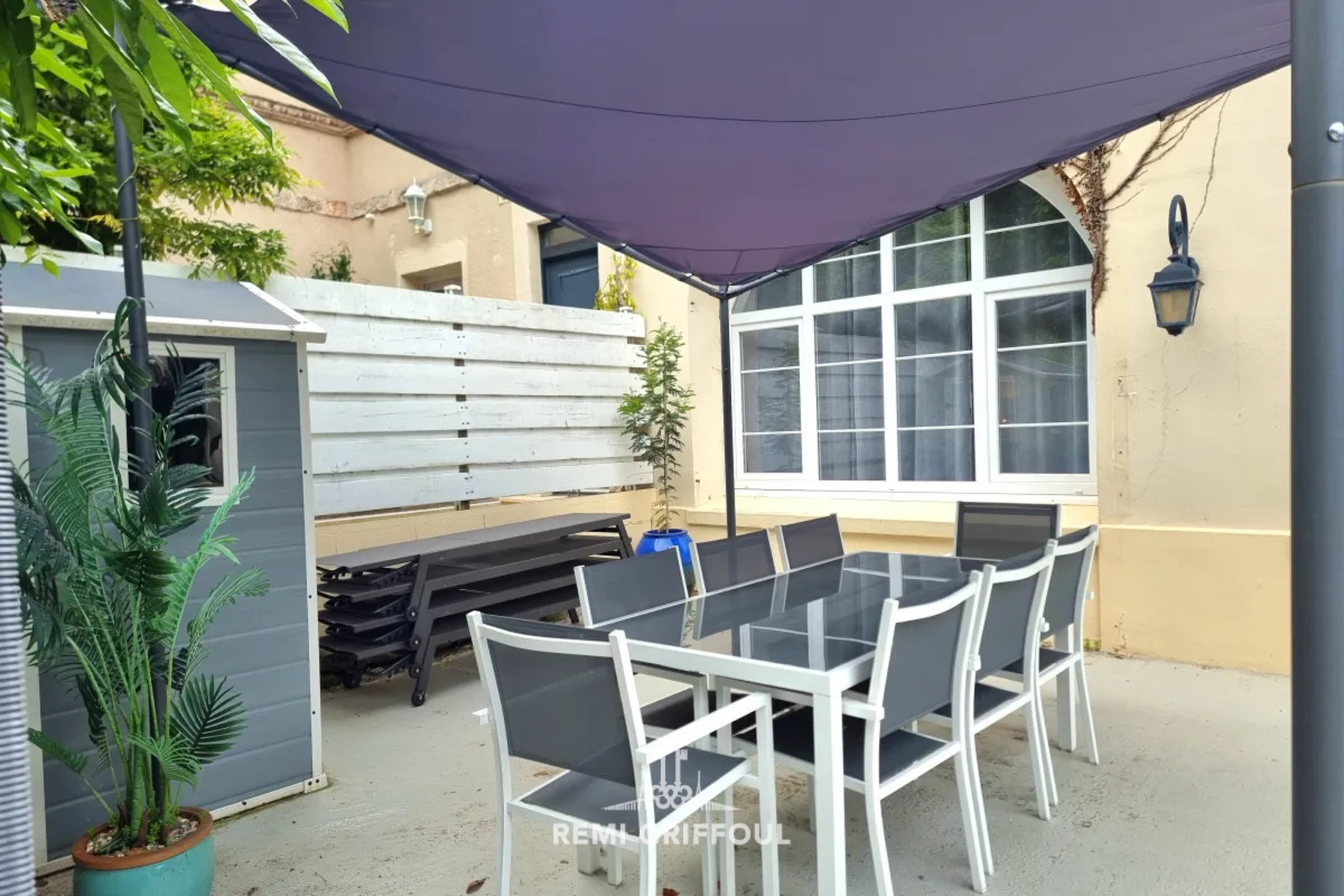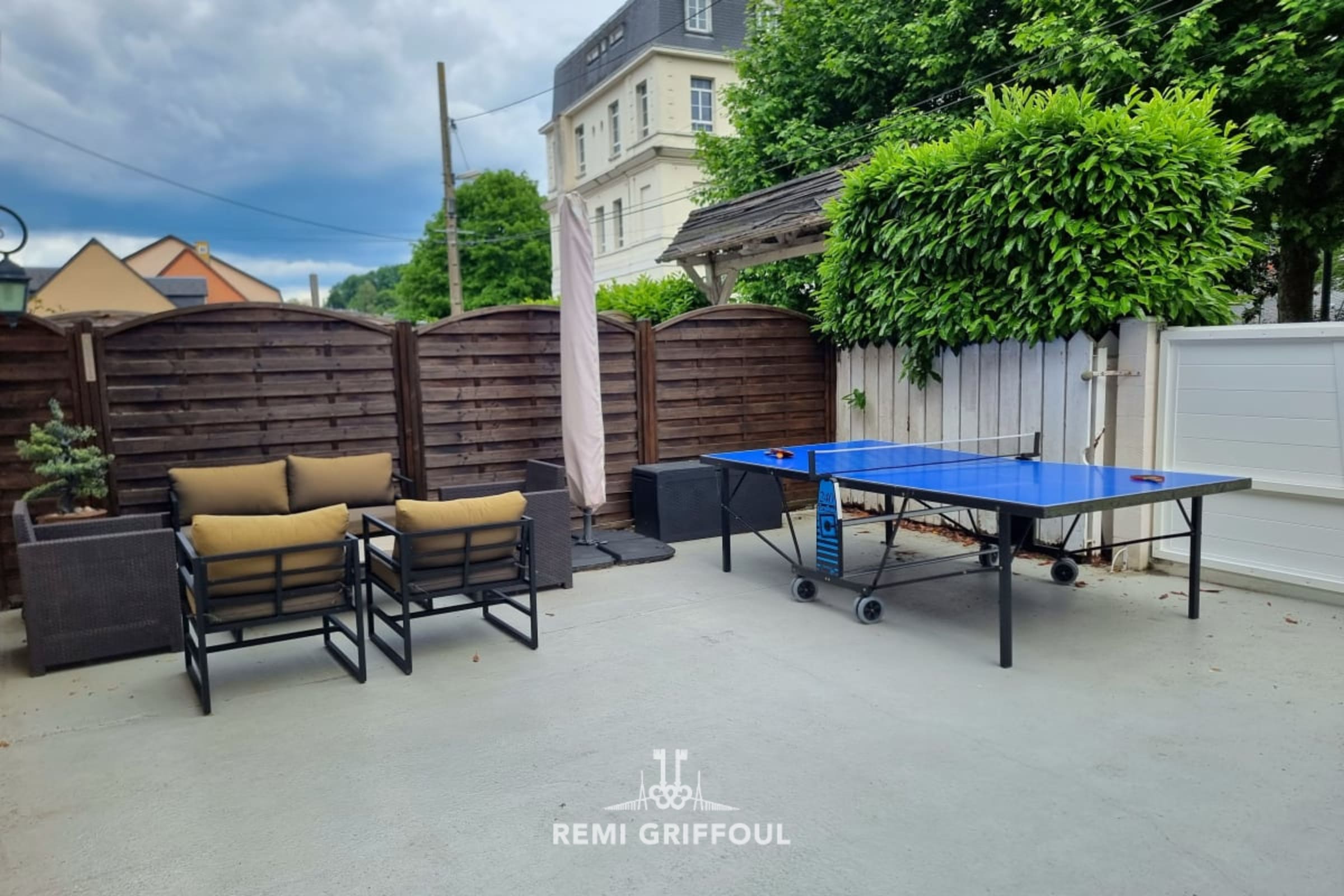 The private terrace is perfectly furnished, dining table, garden furniture, deckchair, Ping Pong table, southern exposure to enjoy the sun all day long!