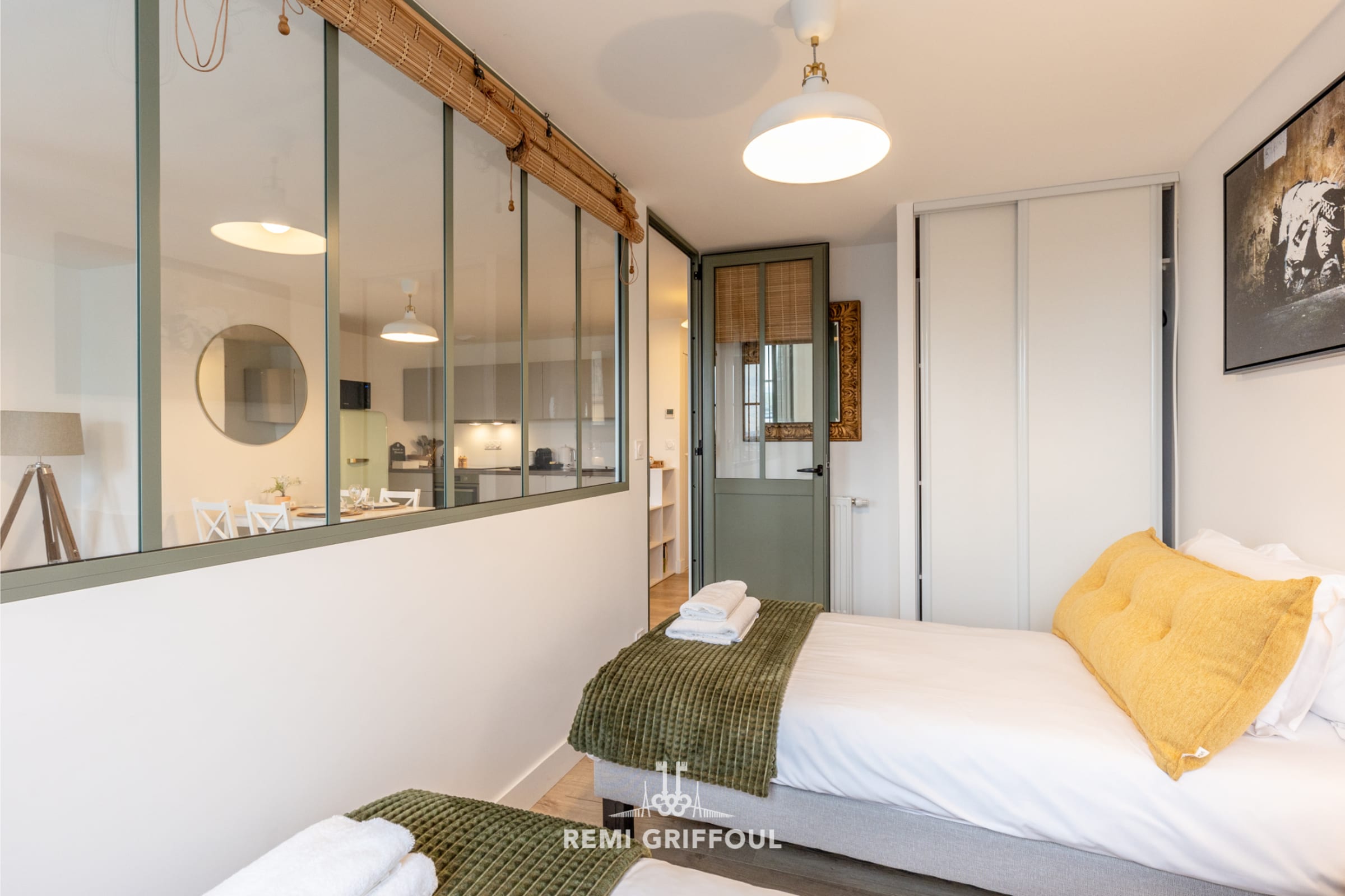 This elegant and fully renovated apartment is located on the 3rd floor of a historic building. With a warm and modern ambiance, it is perfect for couples, solo travelers, or small families seeking an authentic stay in Normandy.