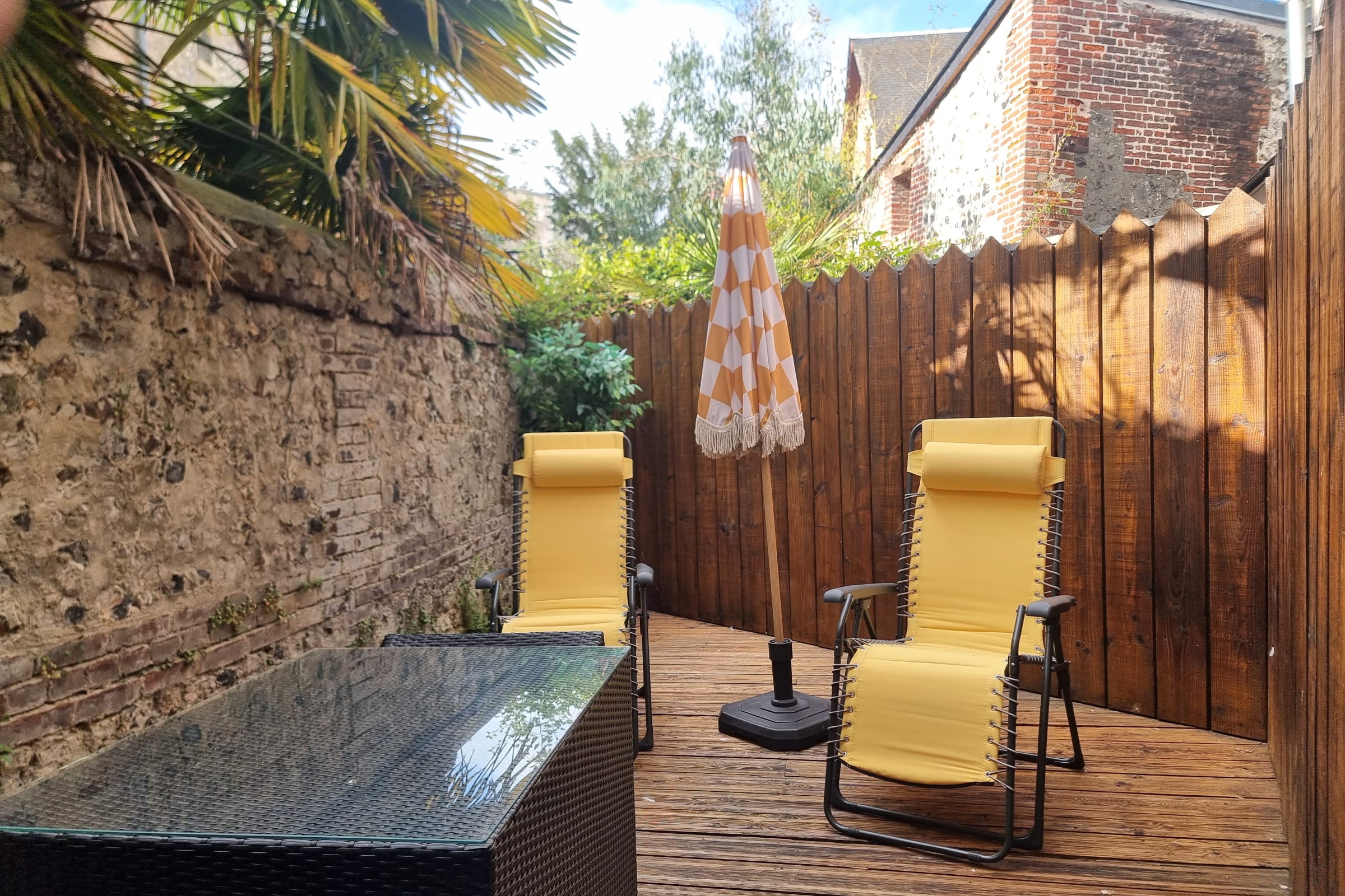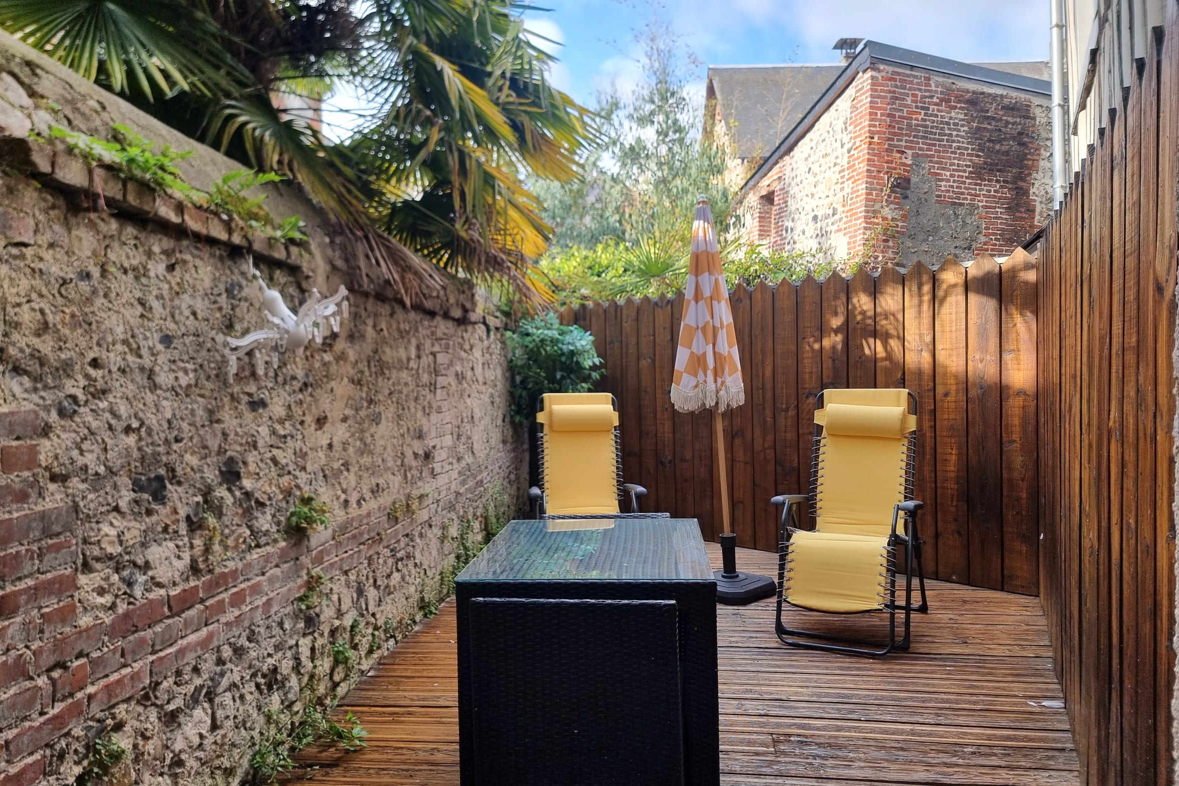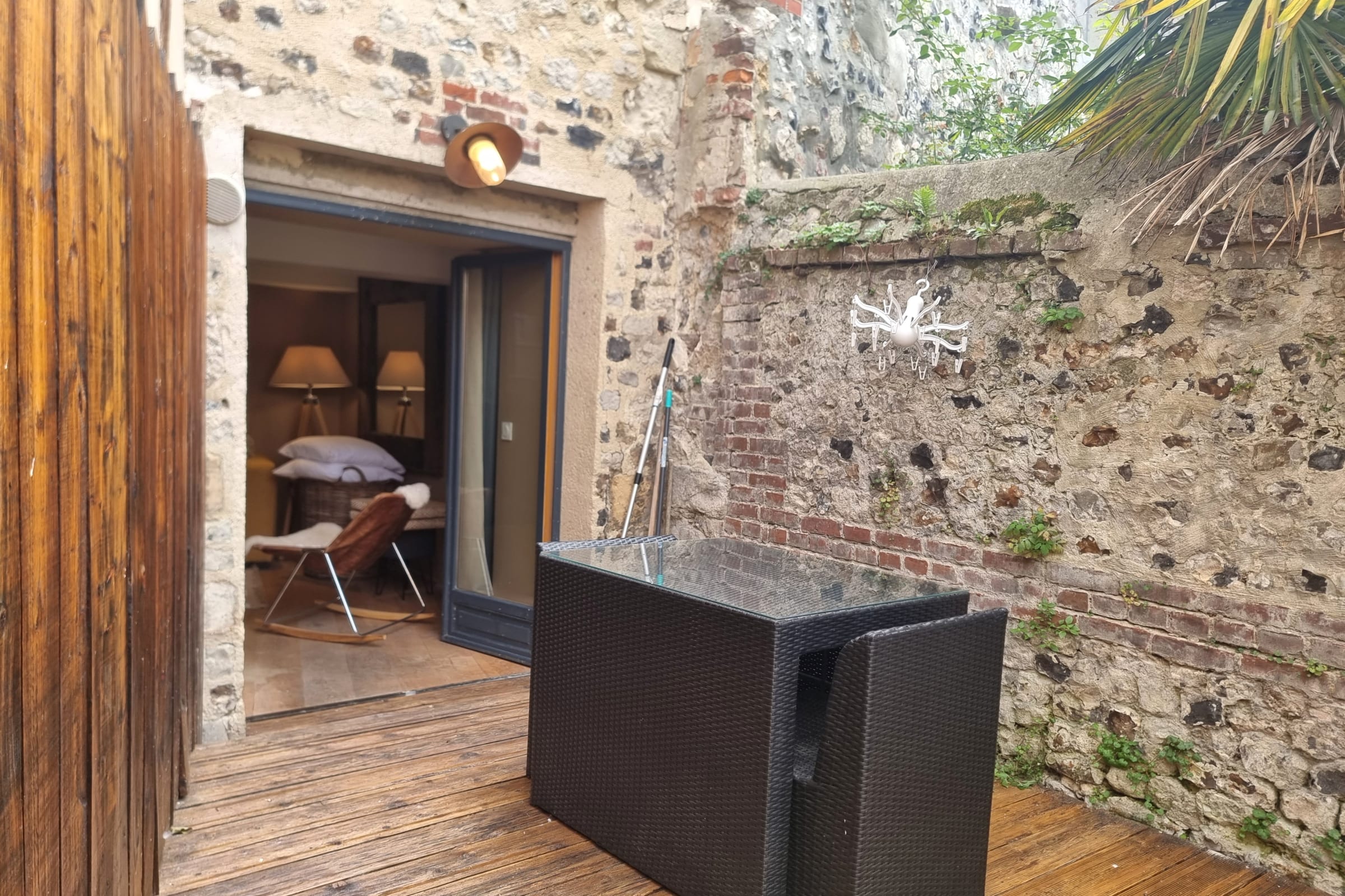Charming, cozy and comfortable studio, fully renovated with care, located on the ground floor with a lovely little sunny 10M2 private terrace – perfect for a solo getaway or a romantic stay in the heart of Honfleur’s historic district.