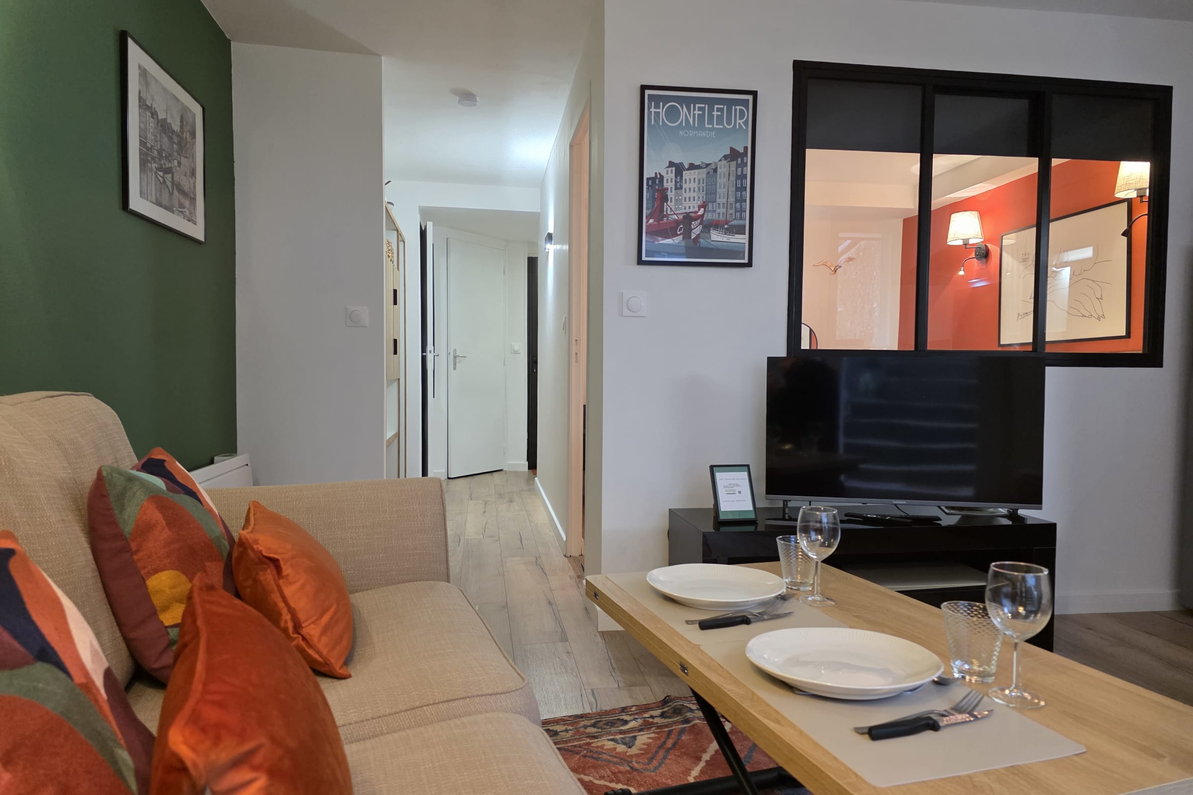 Treat yourself to a comfortable stay in the heart of Honfleur with Picasso, a ground floor city apartment, entirely renovated and designed to combine elegance, functionality and a gentle way of life.