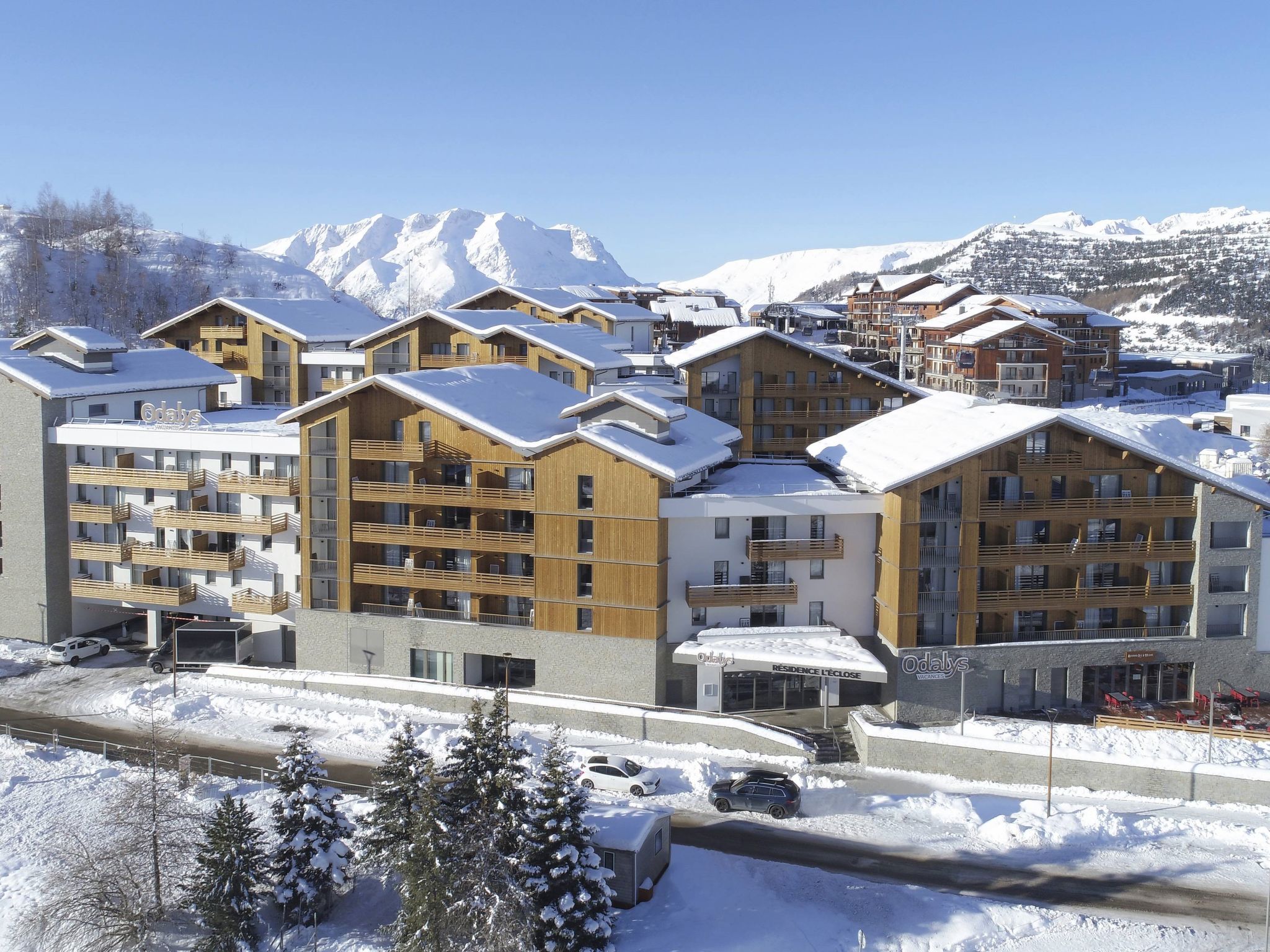 Comfortable residence "Résidence Prestige Odalys l'Éclose". In the resort Alpe d'Huez, 59 km from the centre of Grenoble, directly by the skiing area. For shared use: indoor pool heated (19 x 10 m, seasonal availability: 01.Jun. - 31.Aug.). In the complex: reception, lounge, WiFi, sauna, fitness room, massage (extra). Steam room, hot tub, billiard table, lift, storage room for skis, washing machine (extra), ski boot dryer. Communal covered parking (extra). Skisport facilities 100 m. Nearby attractions: Parc National des Ecrins, Le Pic Blanc, site archéologique Brandes. Well-known ski regions can easily be reached: Alpe d'Huez, La Sarenne: la piste noire la plus long. Please note: the photograph shows a typical example. The holiday properties may differ in living space, floorplan, equipment and furnishing.