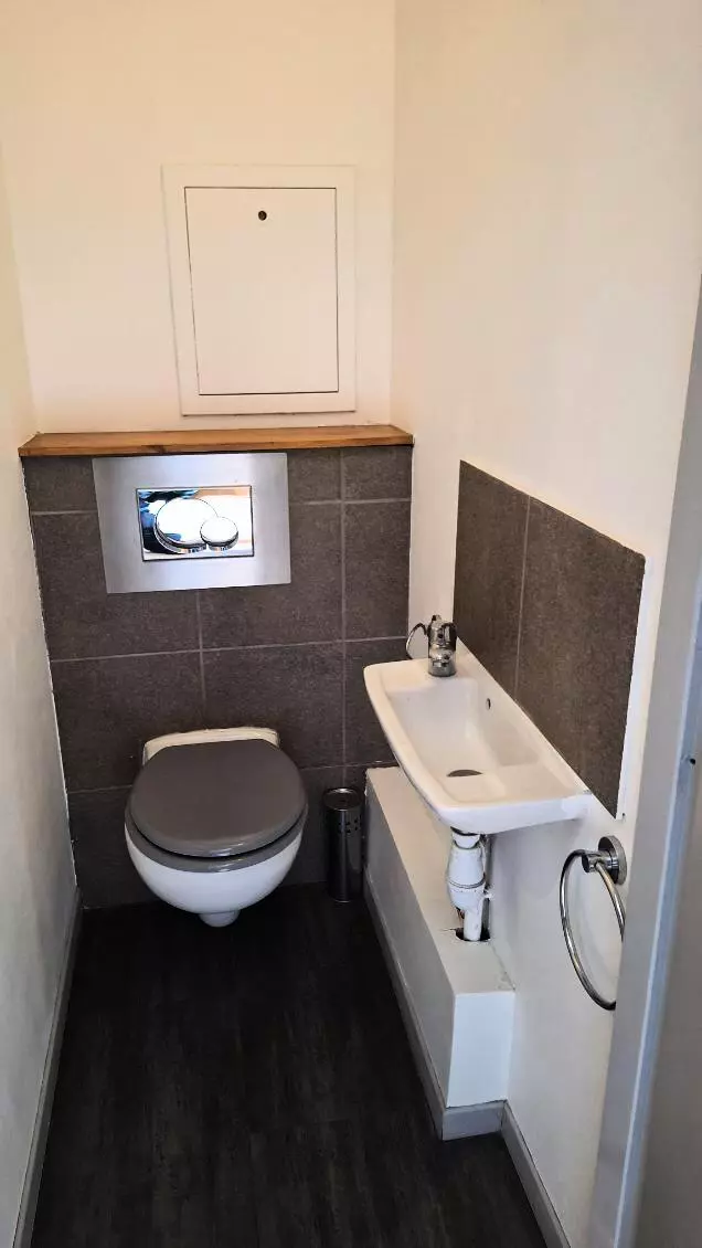 1 living room, 1 kitchen area, 1 bedroom, 1 bathroom, 1 separate WC and balcony.