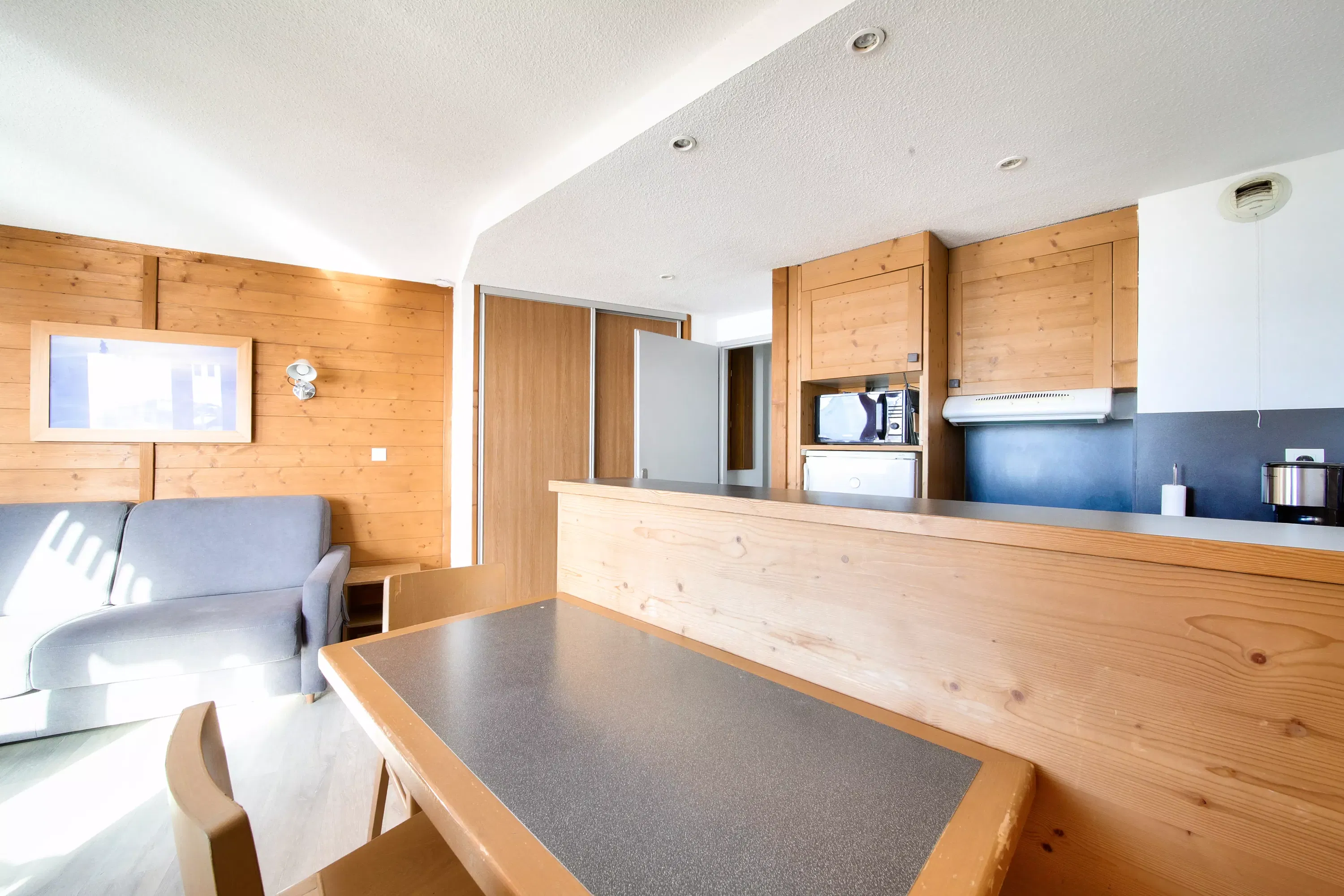 Living room facilities: 1 sofa bed (sleeps 2). Dining area: 1 table with 4 chairs and 1 stool.