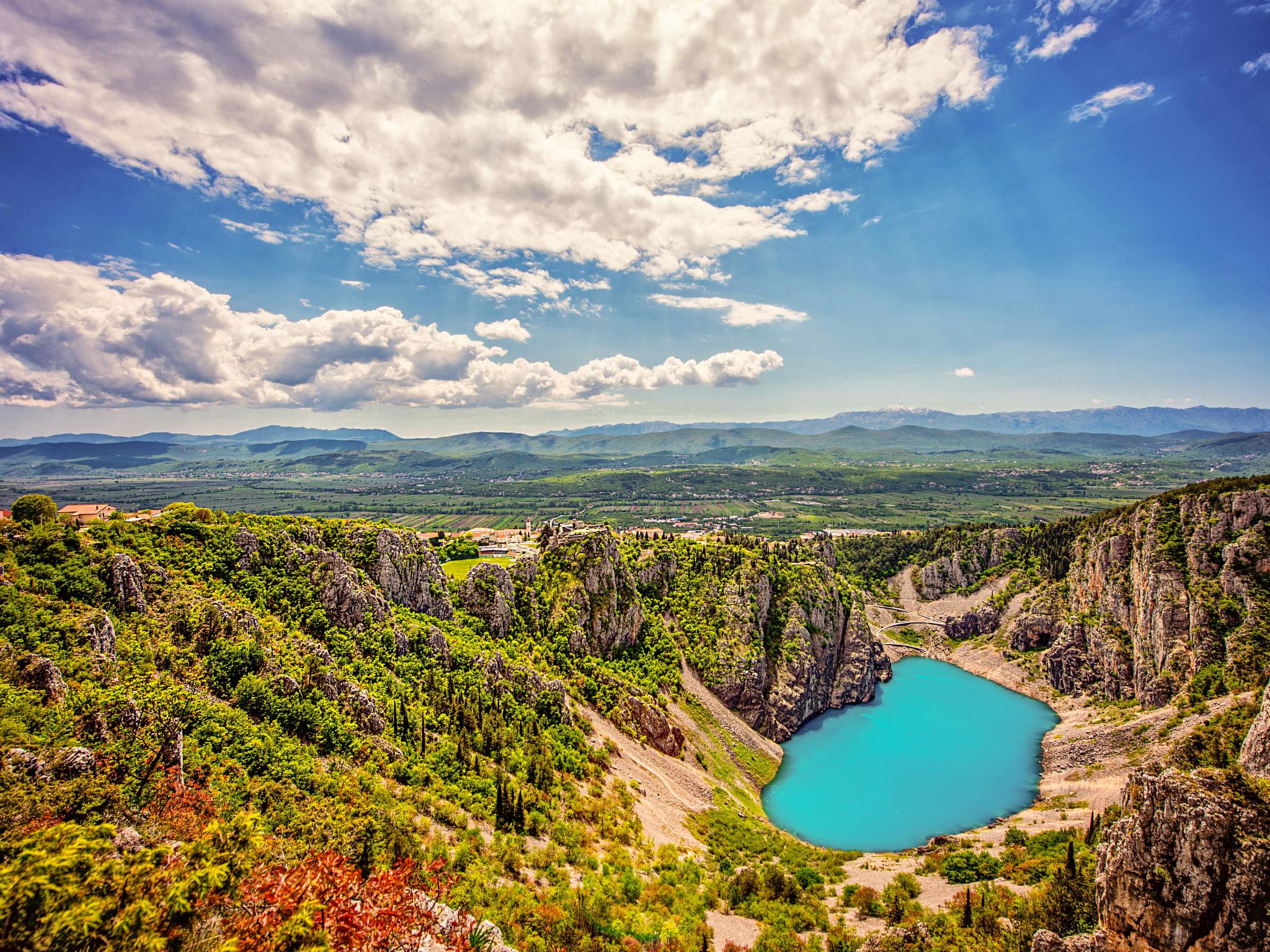 Donji Proložac 5 km from Imotski: 2-family house "Paz". In a quiet, sunny position, 29 km from the sea, 29 km from the beach, in a cul-de-sac. Private: property 700 m2 (fenced), natural garden, swimming pool angular (8 x 4 m, depth 150 cm, seasonal availability: 01.May. - 01.Oct.). Outdoor shower, hot tub, terrace (20 m2), garden furniture, barbecue, children's playground. In the house: internet access, washing machine. Parking (for 3 cars) at the house on the premises. Shop 500 m, restaurant 1 km, bus stop 500 m, pebble beach 29 km, rocky beach 29 km. Well-known lakes can easily be reached: Modro jezero 5 km, Crveno jezero 5 km.