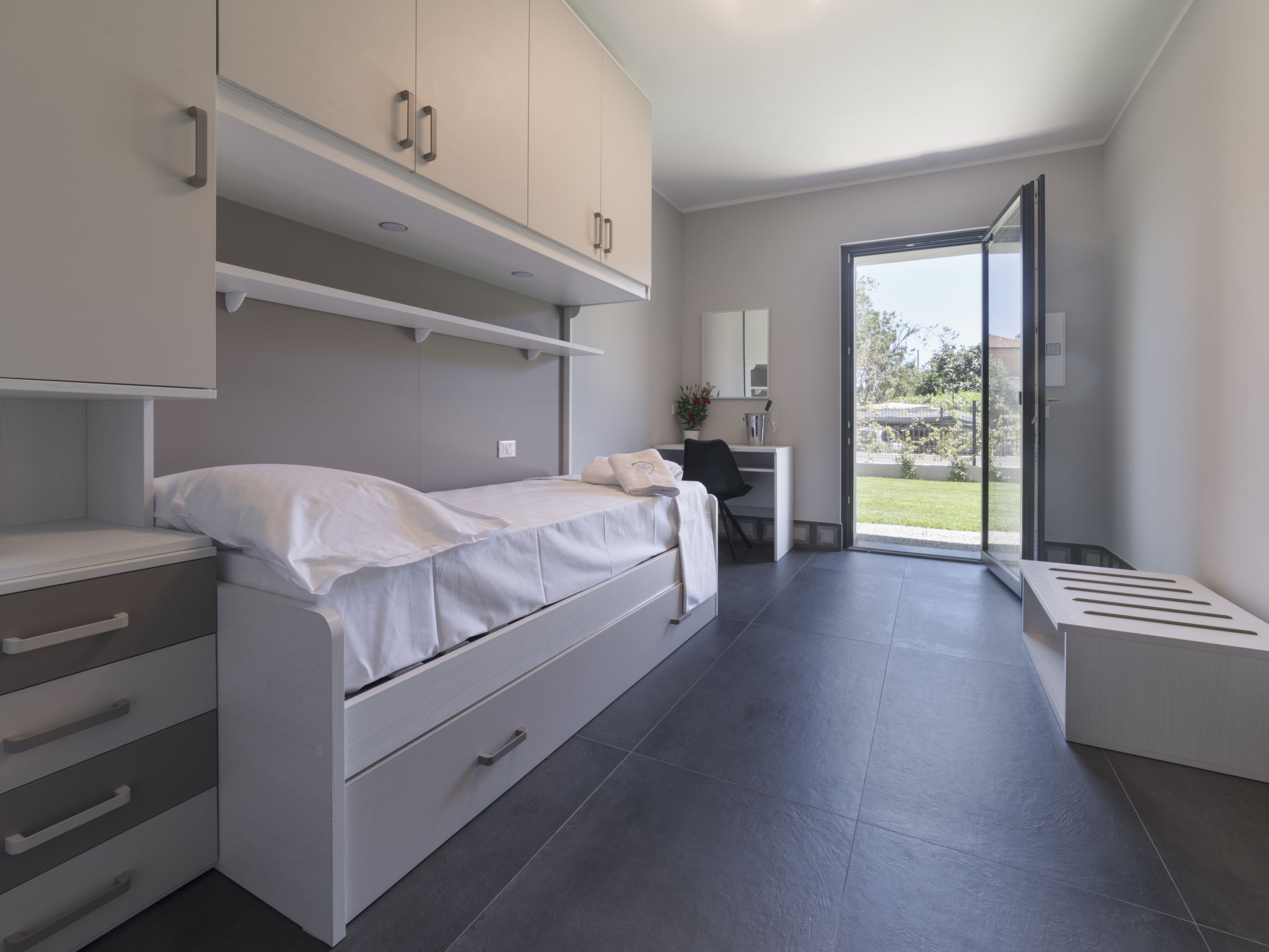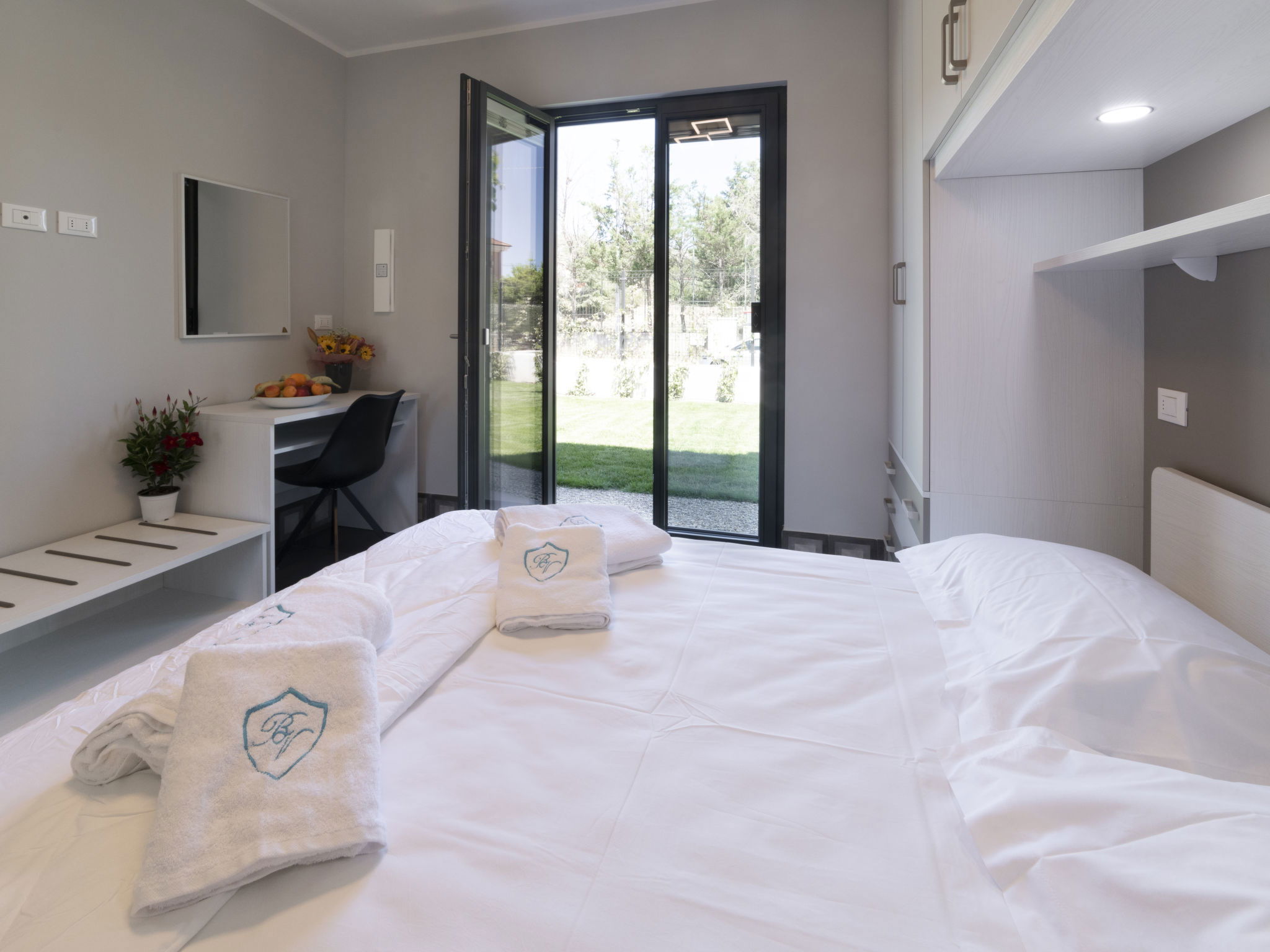 "Ciliegiolo", 3-room apartment 56 m2, on the ground floor. Bright, comfortable and tasteful furnishings: 1 room with 1 double bed (1 x 160 cm). 1 room with 1 bed and 1 pull-out bed. Living/dining room with 1 double sofabed (1 x 160 cm, length 200 cm), dining table and satellite TV. Exit to the garden, to the terrace, to the swimming pool. Open kitchen (oven, dishwasher, 4 induction hot plates, toaster, kettle, microwave, electric coffee machine). Shower/WC. Air-conditioning, forced-air heating. Terrace furniture, deck chairs (2). Beautiful view of the garden. Facilities: iron, children's high chair, baby cot, hair dryer. Internet (WiFi, free). Parking (1 car), garage (1 car). Please note: 1 small pet/ dog allowed. Smoke alarm, fire extinguisher. IT008031B4VWHBOR2Z