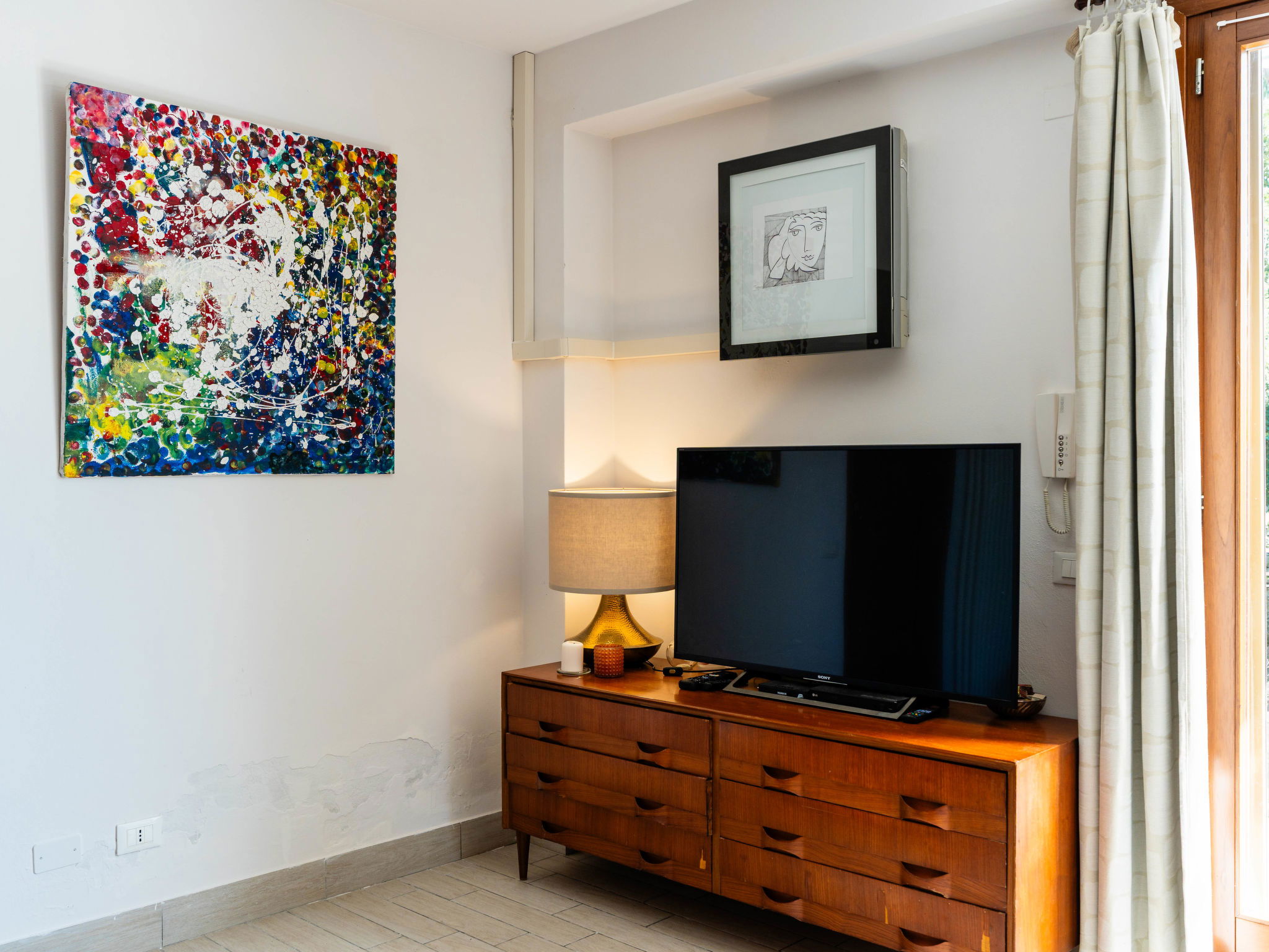 "Gelsomino", 2-room apartment 55 m2, on the ground floor. Fully renovated, tasteful and cosy furnishings: living/sleeping room with 1 double sofabed (1 x 160 cm, length 200 cm), satellite TV. Exit to the garden, to the terrace. 1 room with 1 double bed (1 x 160 cm, length 200 cm). Exit to the terrace. Kitchenette (oven, dishwasher, 4 gas rings, toaster, kettle, freezer, electric coffee machine) with dining table. Shower/bidet/WC. Air-conditioning, forced-air heating. Large terrace 20 m2, patio, small garden. Terrace furniture, barbecue, deck chairs. Facilities: washing machine, iron, mosquito net, baby cot, hair dryer. Internet (WiFi, free). Parking space n 2 (fenced). Please note: maximum 1 pet/ dog allowed. Private entrance, smoke alarm, fire extinguisher. IT008031C2LZ3WHE54