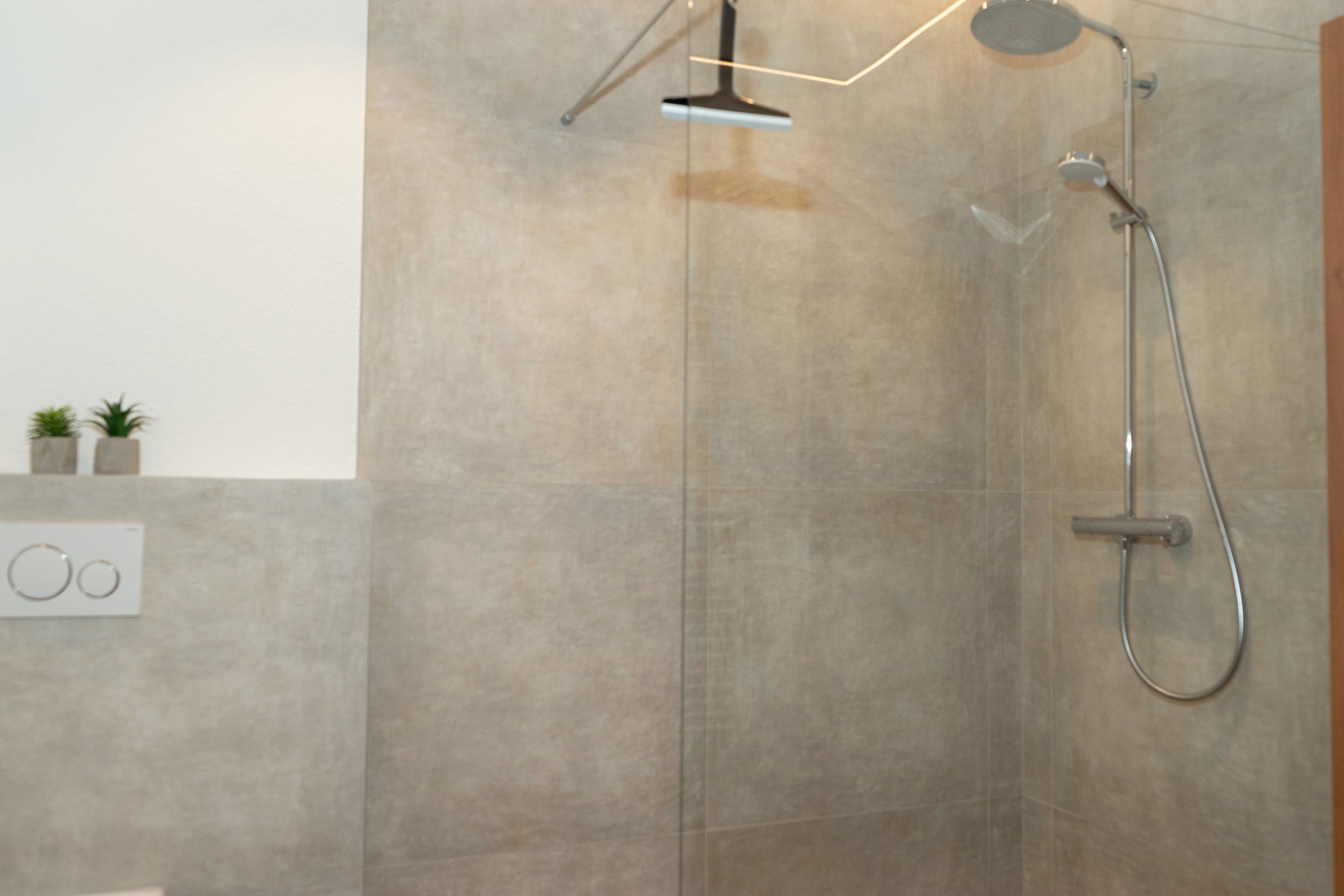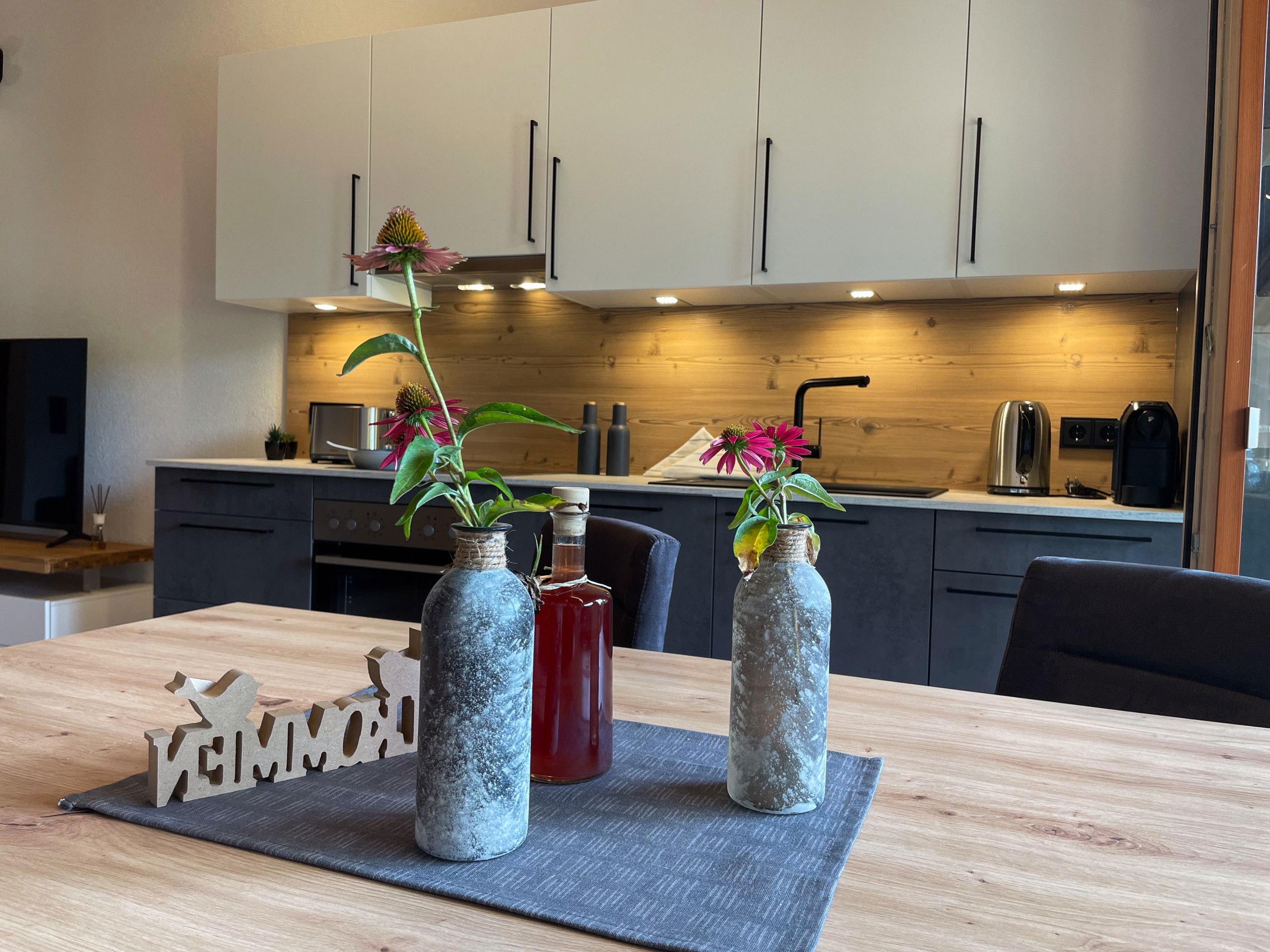 With two cosy bedrooms - one equipped with a double bed, the other with two single beds - the flat offers space for a restful night's sleep. The living room has a sofa bed that offers additional space for up to six people if required. The living and dining area is open-plan and invites you to enjoy convivial meals or relaxed evenings. The well-equipped kitchen leaves nothing to be desired and the dining table offers space for all guests to dine together. The bathroom is fitted with modern, high-quality materials and offers a spacious shower.