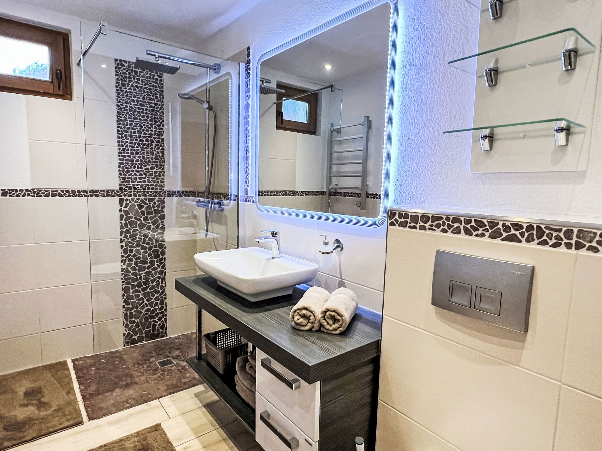 "Ferienwohnung Daxer", 2-room apartment 55 m2, on the ground floor. Beautiful and tasteful furnishings: living/dining room with 1 bed and TV (flat screen). 1 double bedroom. Open kitchen (oven, dishwasher, 4 ceramic glass hob hotplates, toaster, kettle, microwave, electric coffee machine) with dining table. Shower/WC. Underfloor heating. Parquet floors. Terrace. Terrace furniture. Panoramic view. Facilities: hair dryer. Internet (WiFi, free). Maximum 1 pet/ dog allowed.