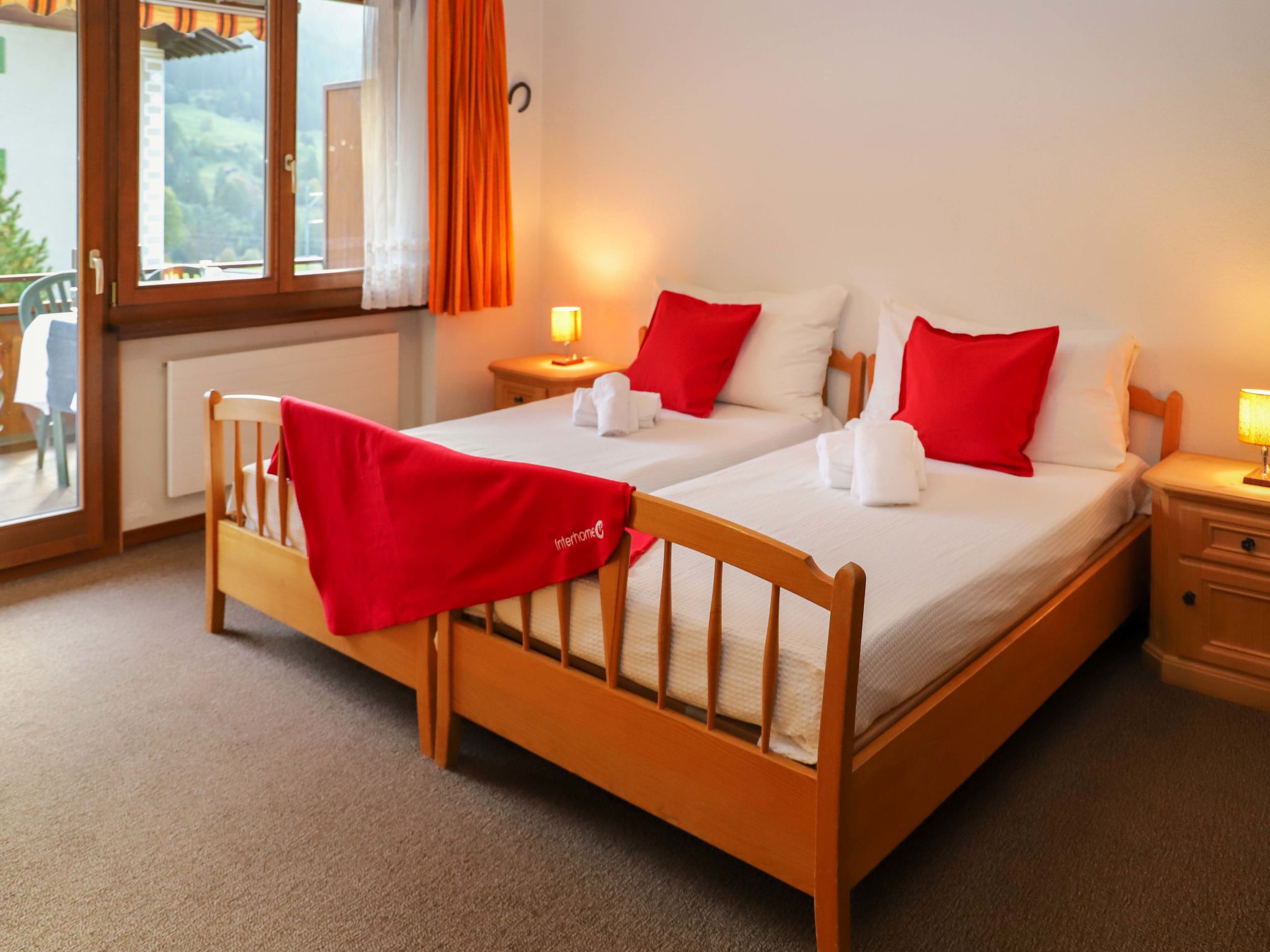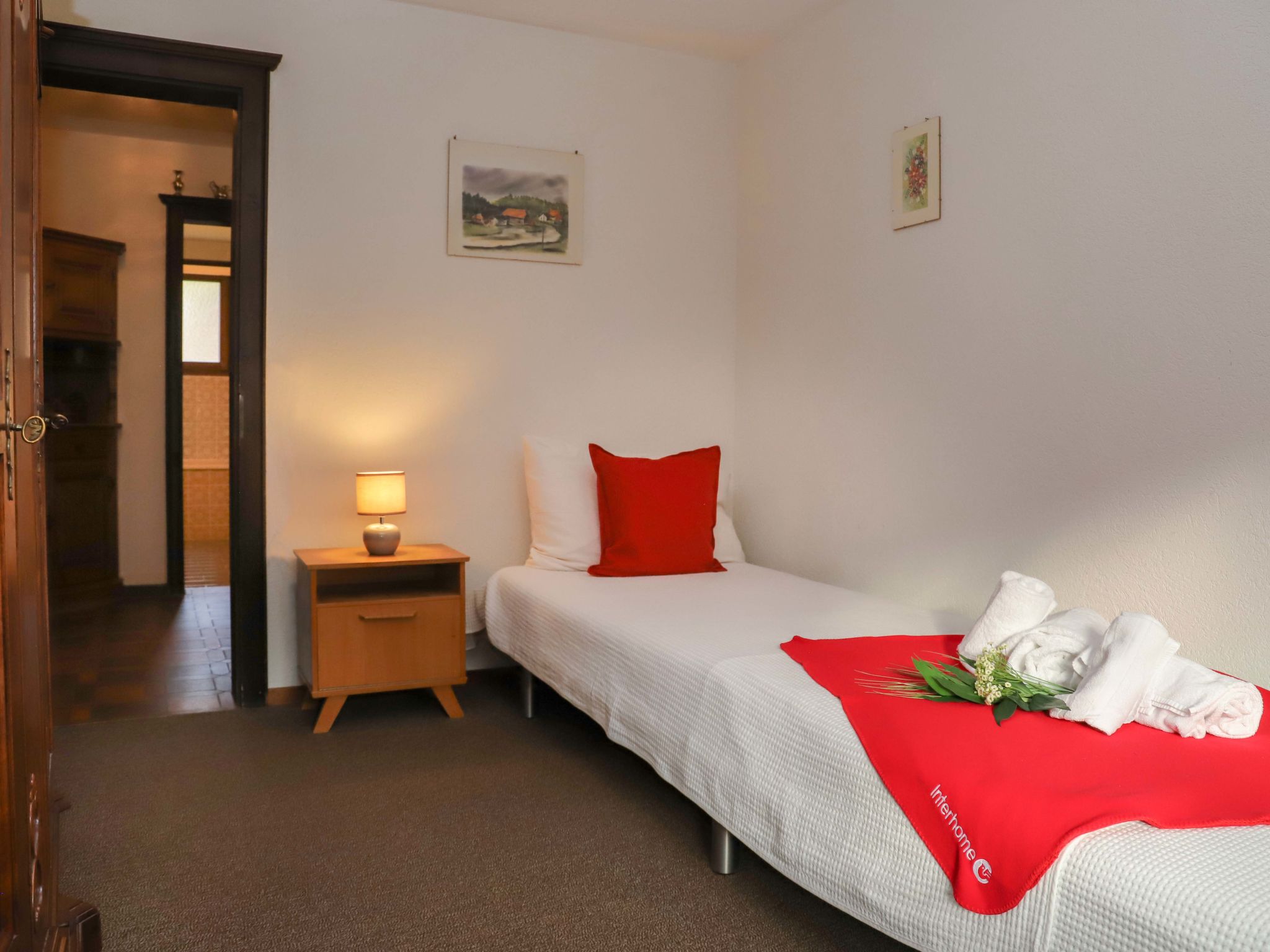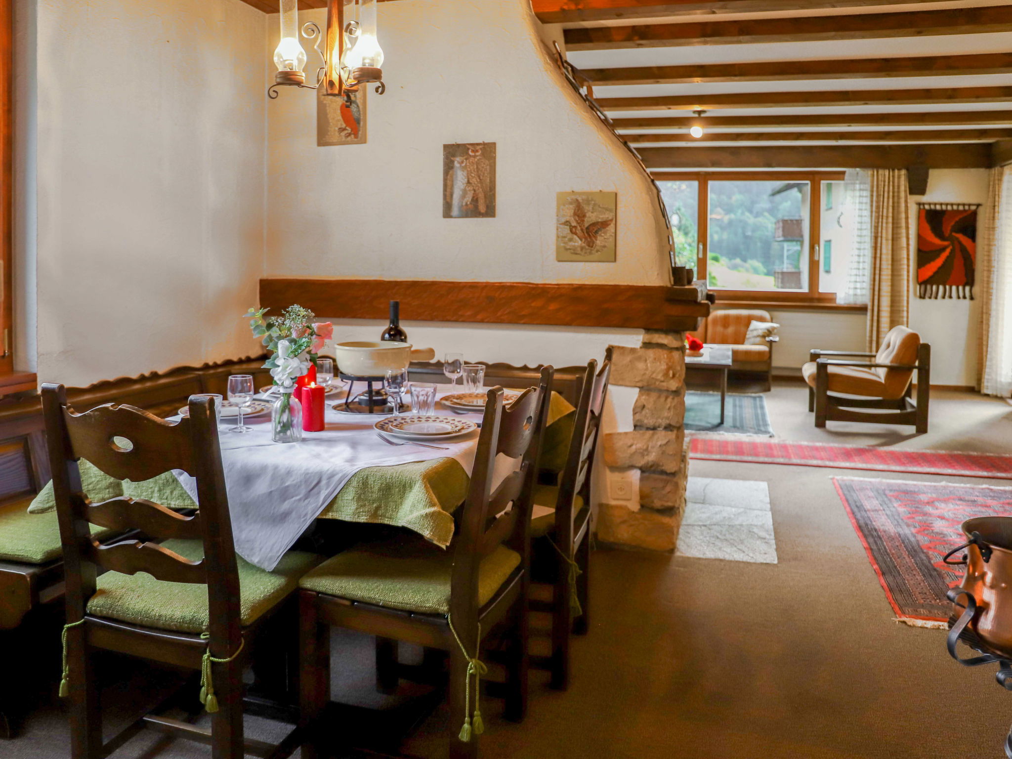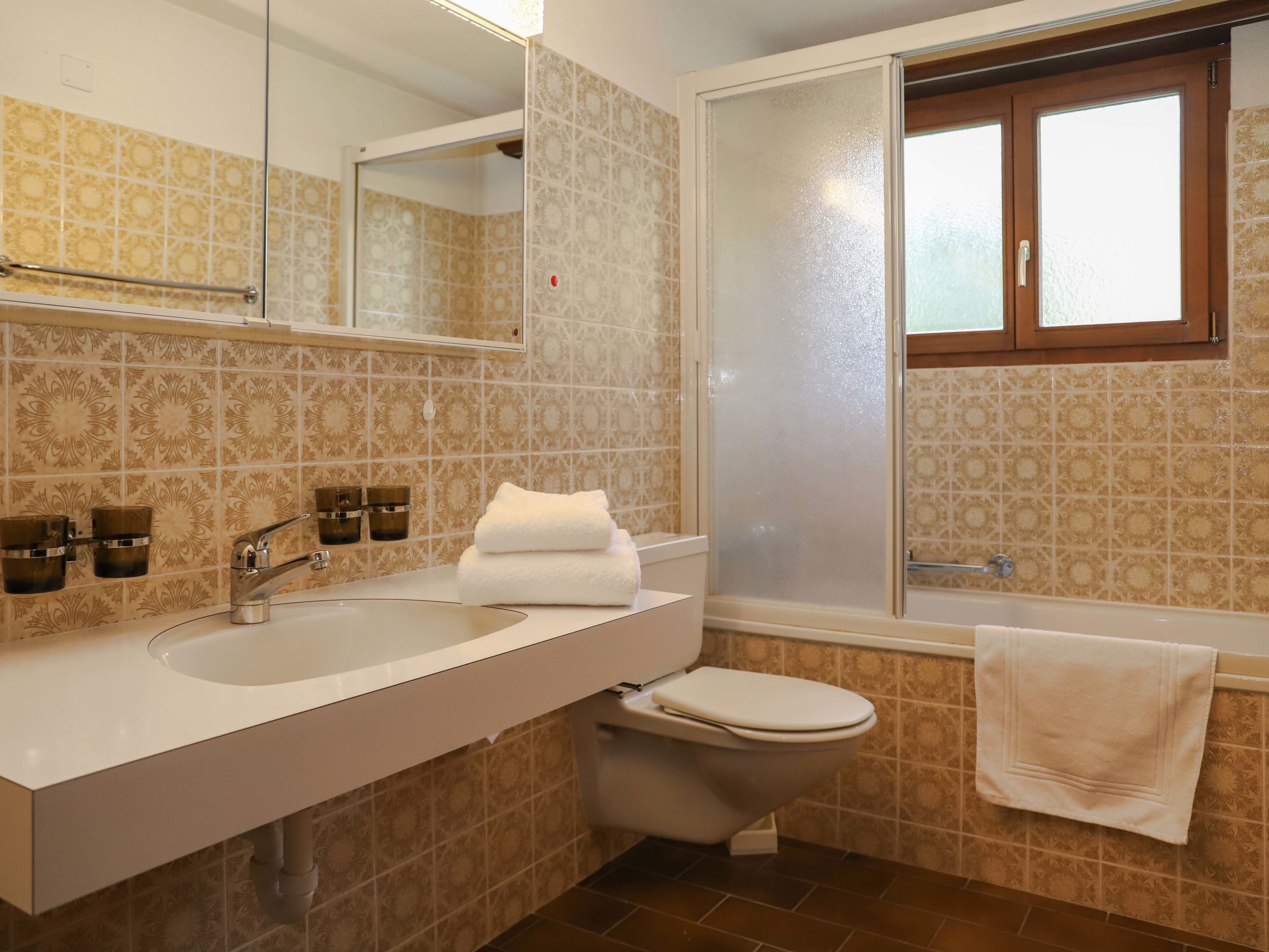 "Parnier", 4-room apartment 110 m2 on 1st floor, south-west facing position. Object suitable for 5 adults. Spacious, rustic and cosy furnishings: living/dining room with open-hearth fireplace, separate WC, cable TV and international TV channels (flat screen). Exit to the balcony. 1 double bedroom with 1 double bed (2 x 90 cm, length 200 cm). 1 double bedroom with 2 beds (90 cm, length 200 cm). 1 room with 1 bed (90 cm, length 200 cm). Kitchen-/living room (oven, dishwasher, 4 ceramic glass hob hotplates, microwave, electric coffee machine, Capsules for coffee machine (Filterkaffee)) with small bar, dining table. Sep. WC, bath/shower/WC. Heating. Carpet. Large balcony. Balcony furniture. Beautiful view of the mountains and the countryside. Facilities: Internet (DSL/LAN, free). Garage on the property (1 car). Please note: suitable for families. Non-smokers only. Maximum 1 pet/ dog allowed.