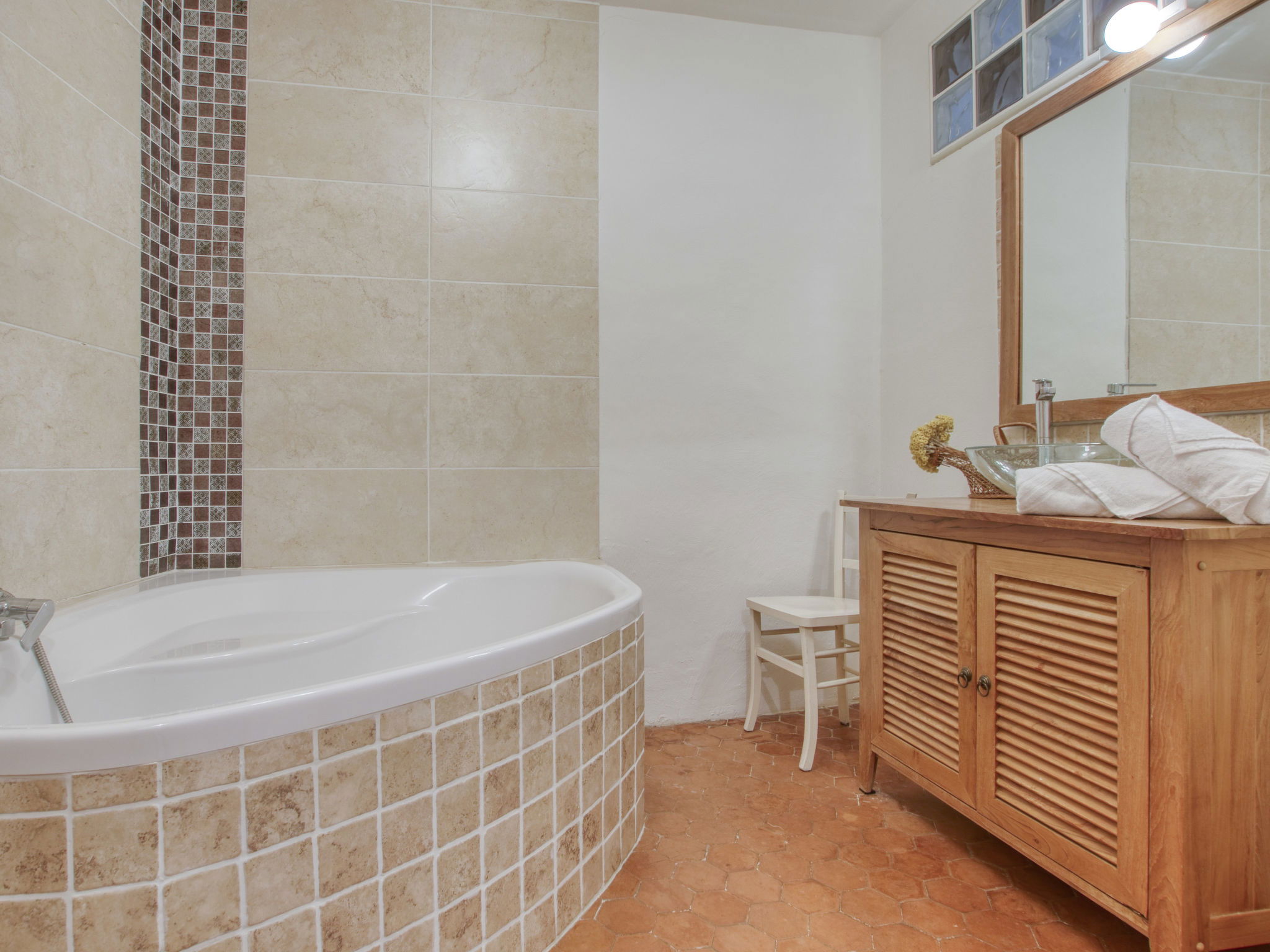 Small apartment house "Le Cadiero". In the centre of La Cadière d'Azur, 6 km from the sea, 6 km from the beach. Public parking 100 m. Shop 50 m, grocery 70 m, supermarket 4 km, restaurant 50 m, bakery 70 m, café 50 m, bus stop "chemin des Baumes" 400 m, railway station "Saint Cyr les Lecques-La Cadière" 5.5 km, sandy beach "Les lecques" 6 km. Golf course (18 hole) 5 km. Nearby attractions: Aqualand. Hiking paths: Sainte Baume, Sainte Victoire, Calanques Port Cros, Porquerolles, Ile verte, Embiez, Figuerolles, Cassis. The keys‘ handover takes place by the agency in Saint Cyr sur Mer, 8 km.