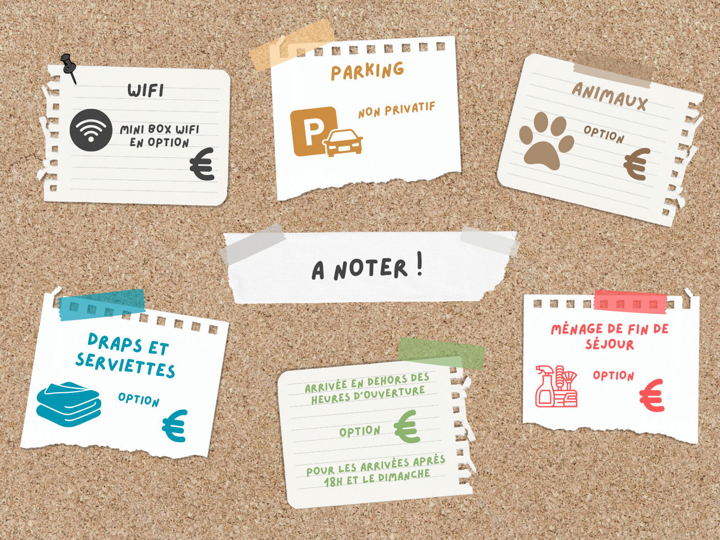 - End-of-stay cleaning, fixed price depending on the size of the accommodation (€ 50 to € 250), to be ordered 3 days before departure,