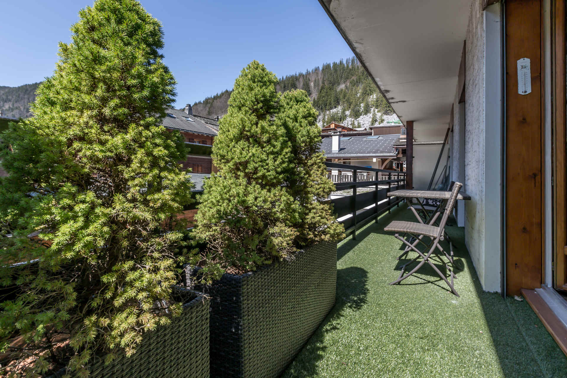 - LIVING ROOM (27.78 m²): flat screen TV, DVD player, west facing French window + balcony, next door residences view