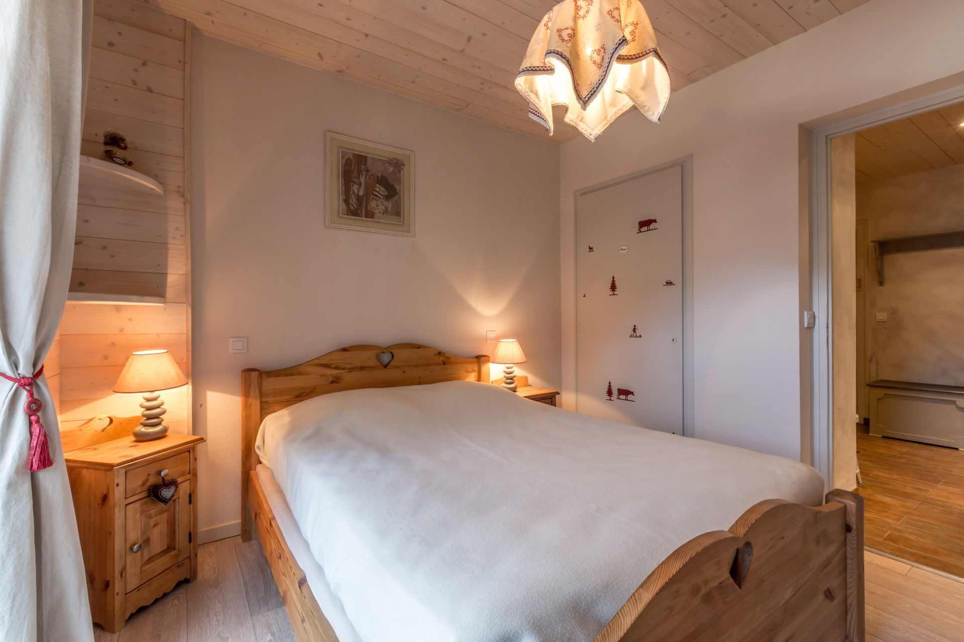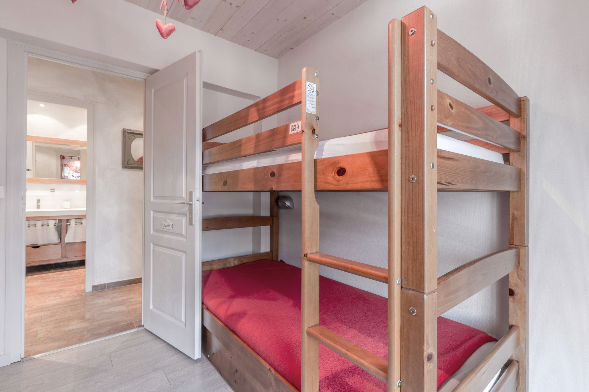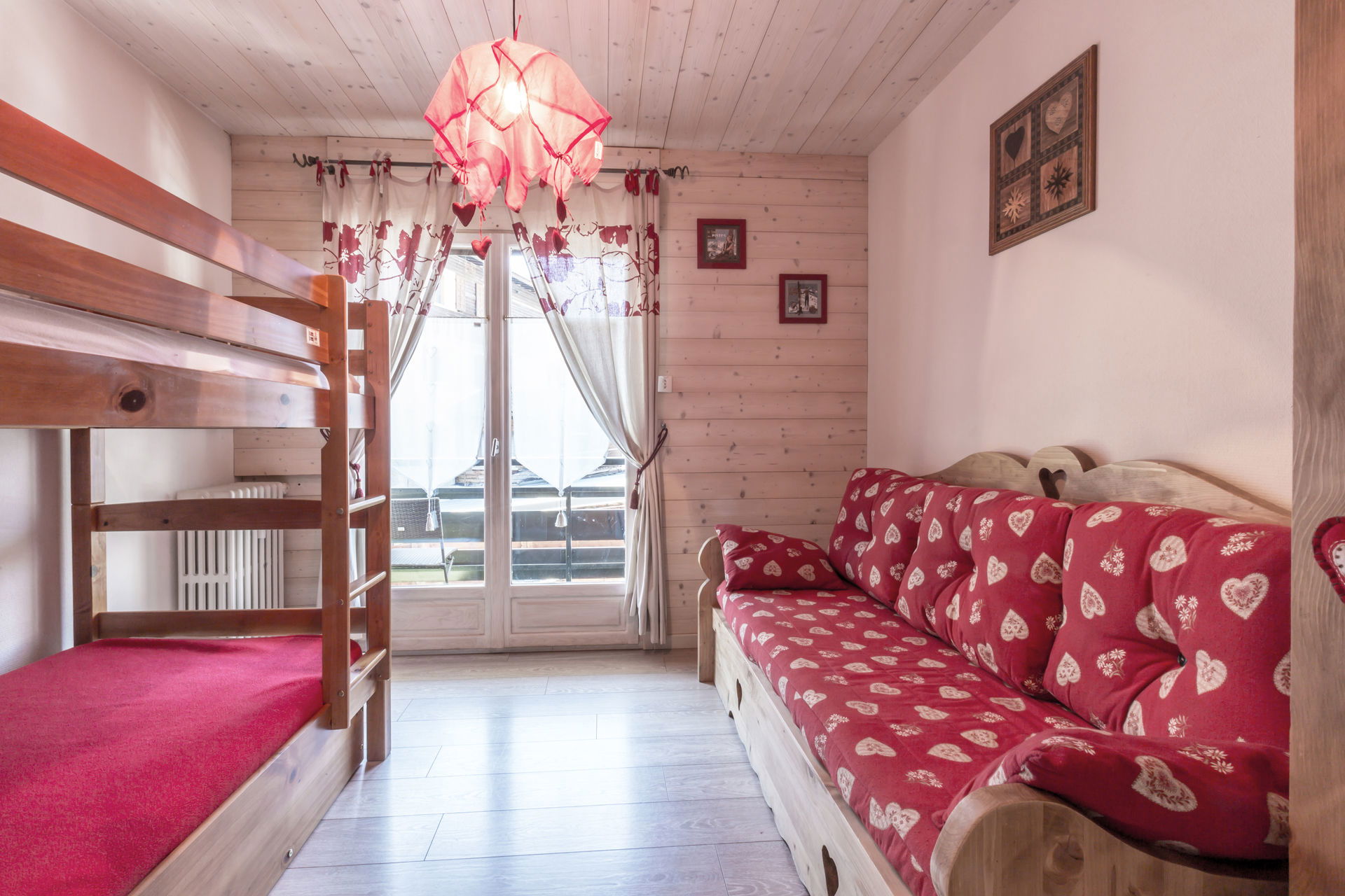 - BEDROOM (10.08 m²): 1 SINGLE SOFA BED (80) + 1 SINGLE PULL OUT BED (80) + 2 BUNK BEDS (90) -> upper bed forbidden under 6 years old, west facing French window + balcony, next door residences view