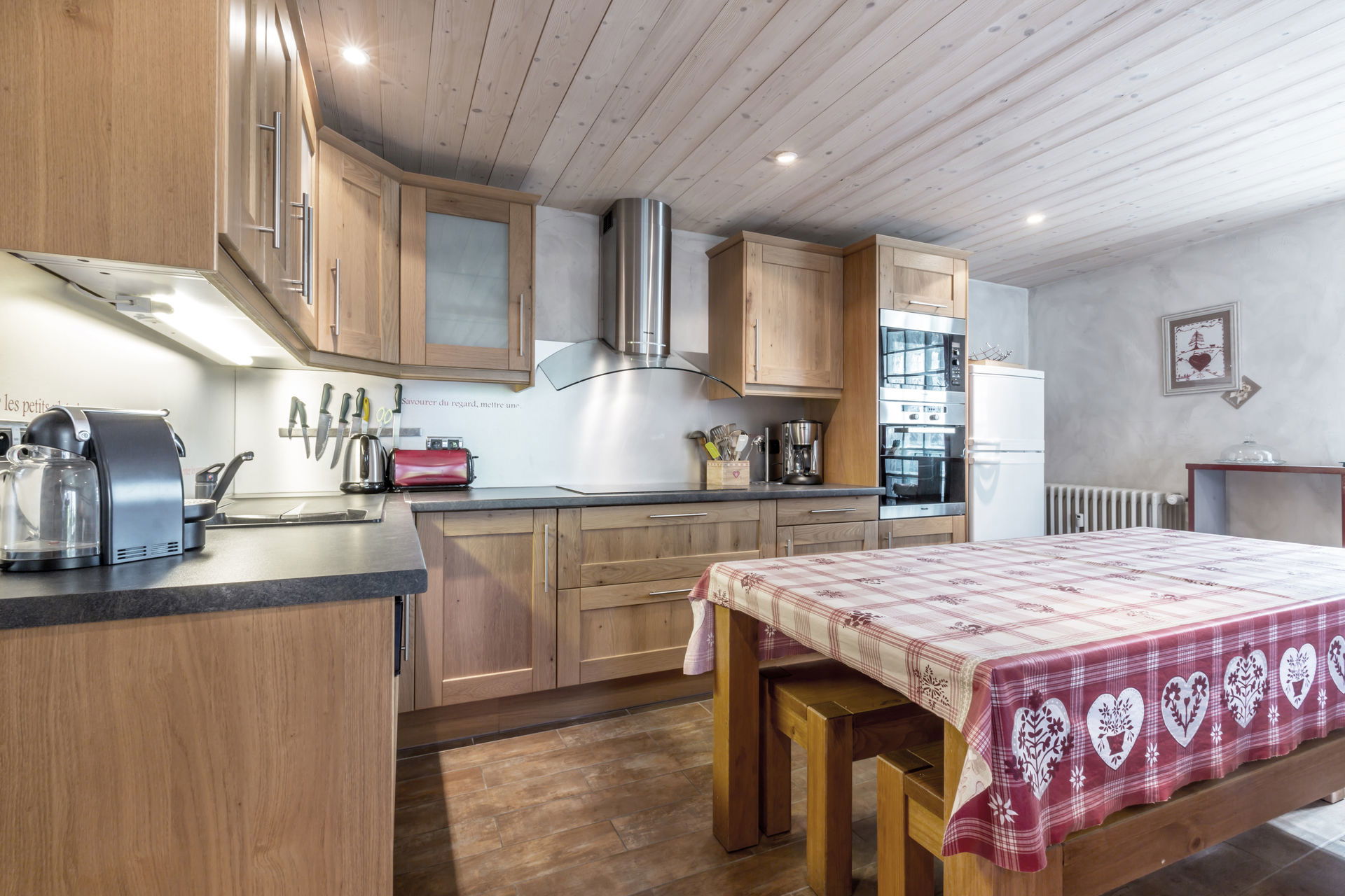 - Open KITCHEN: combined fridge-freezer (204 L), oven, INDUCTION STOVE, MICROWAVE, DISHWASHER, NESPRESSO coffee machine