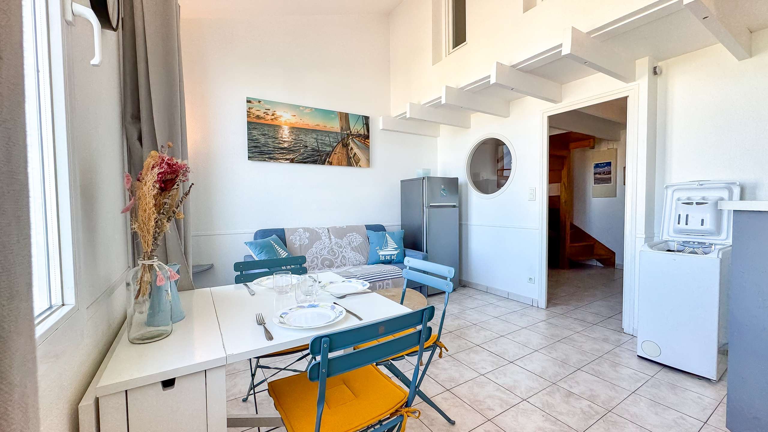 Beautiful apartment located on the floor of a residence with shared swimming pool, ideally located near the beaches and the central market of La Couarde. It includes a kitchen open to the living room, a bedroom, a rest area, a toilet and a bathroom. The residence offers a secure swimming pool accessible to all residents. Facilities included: parking, bicycle storage and WIFI. Mandatory services: END OF STAY CLEANING AND LINEN (Bed linen, towels, bath mats, tea towels)