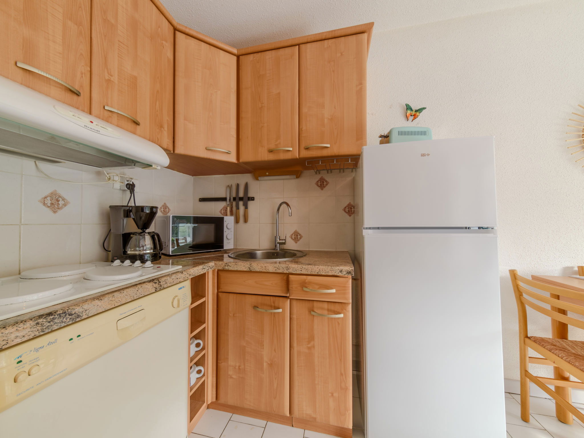 1-room studio 22 m2 on 1st floor, south facing position. Bright, practical and comfortable furnishings: living/dining room with 1 double fold-away bed (140 cm, length 190 cm), TV (flat screen). Entrance hall with 1 x 2 bunk beds (90 cm, length 190 cm). Kitchenette (4 hot plates, toaster, kettle, freezer, electric coffee machine, Capsules for coffee machine (NESPRESSO), combination microwave). Bath/WC. Electric heating. View of the garden. Facilities: washing machine. Internet (WiFi, extra). Please note: 1 small pet/ dog allowed. Smoke alarm. Offer by a private individual according to Art. 155, IV of CGI. 1406974750125