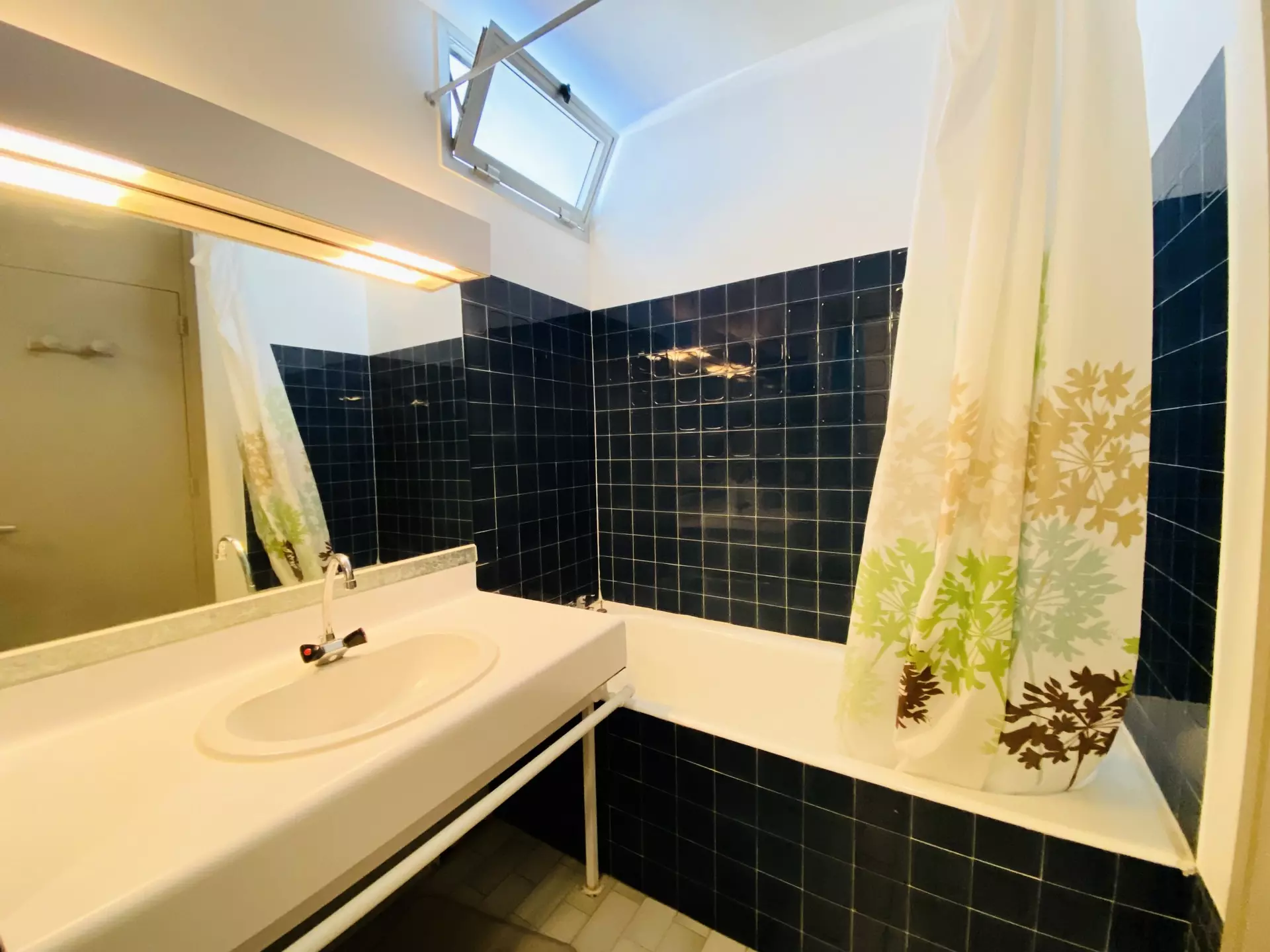It can accommodate up to 5 people with its sofa bed in the living room and its 3 bunk beds in the cabin, not being suitable for children under 6 years old – article 6 of Decree no. 95-949 of August 25, 1995.