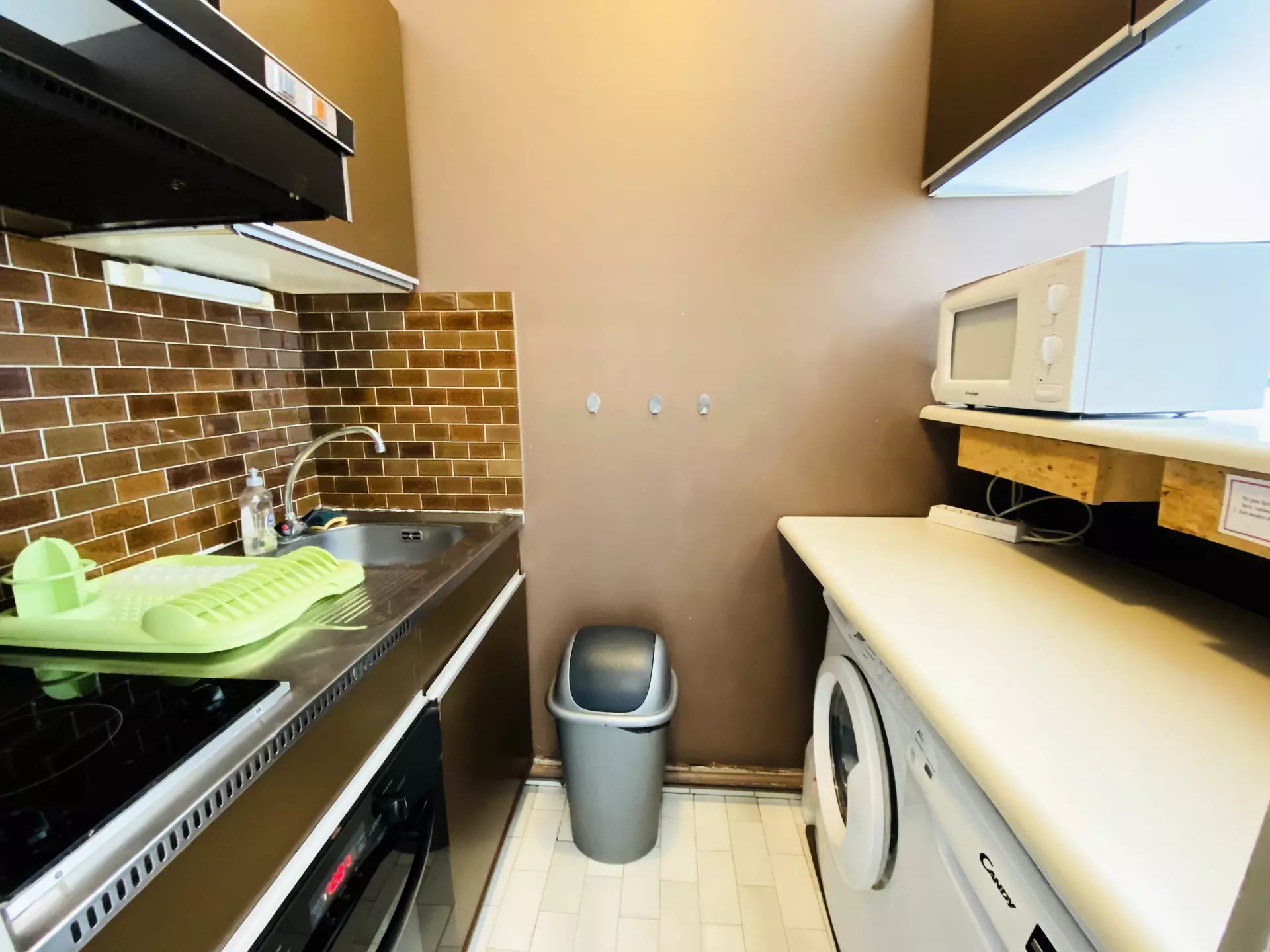 The kitchen is fully equipped, including a microwave, a coffee maker (filter), a refrigerator with freezer, an oven, electric hotplates, a washing machine, a dishwasher, a toaster,