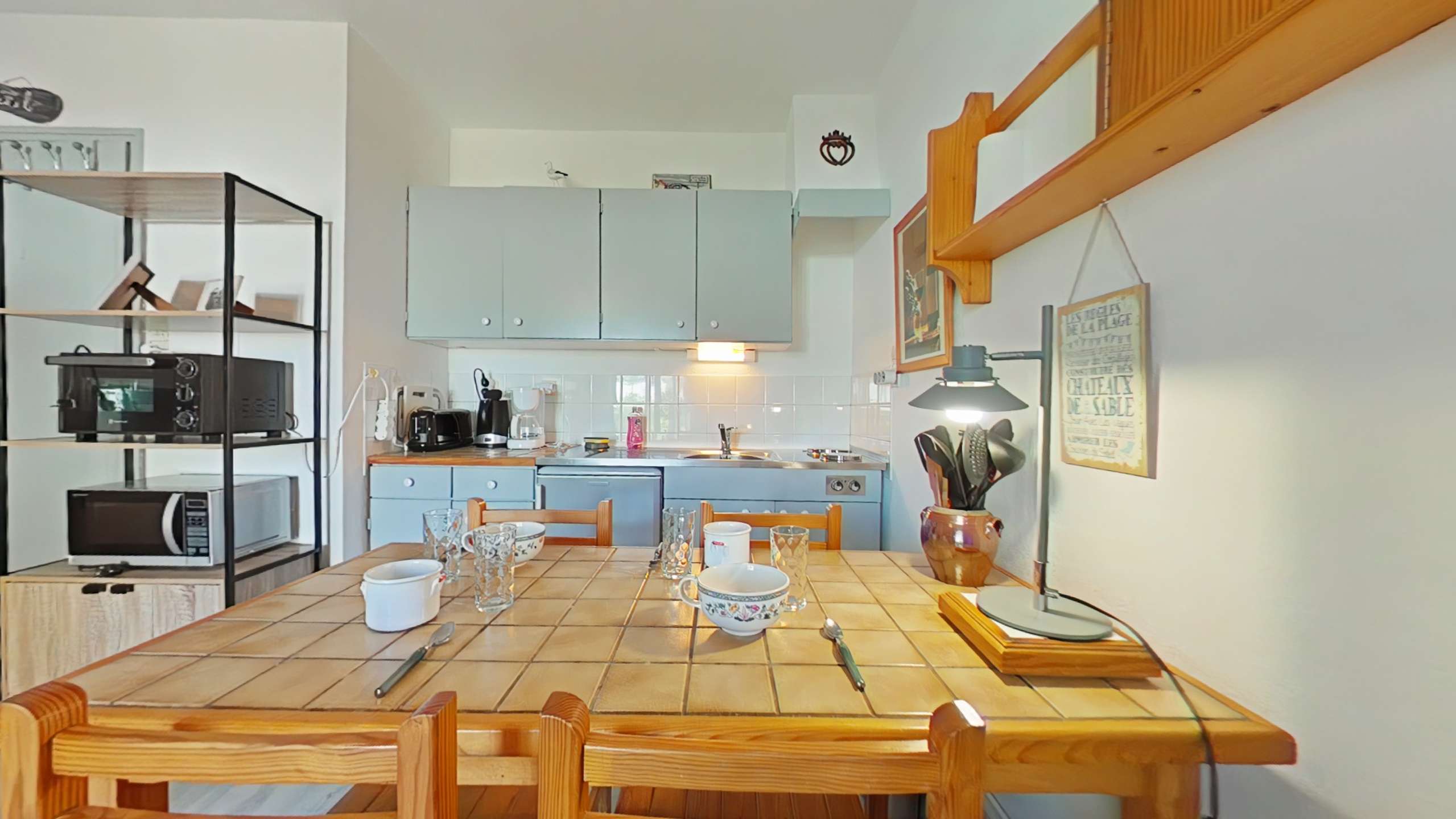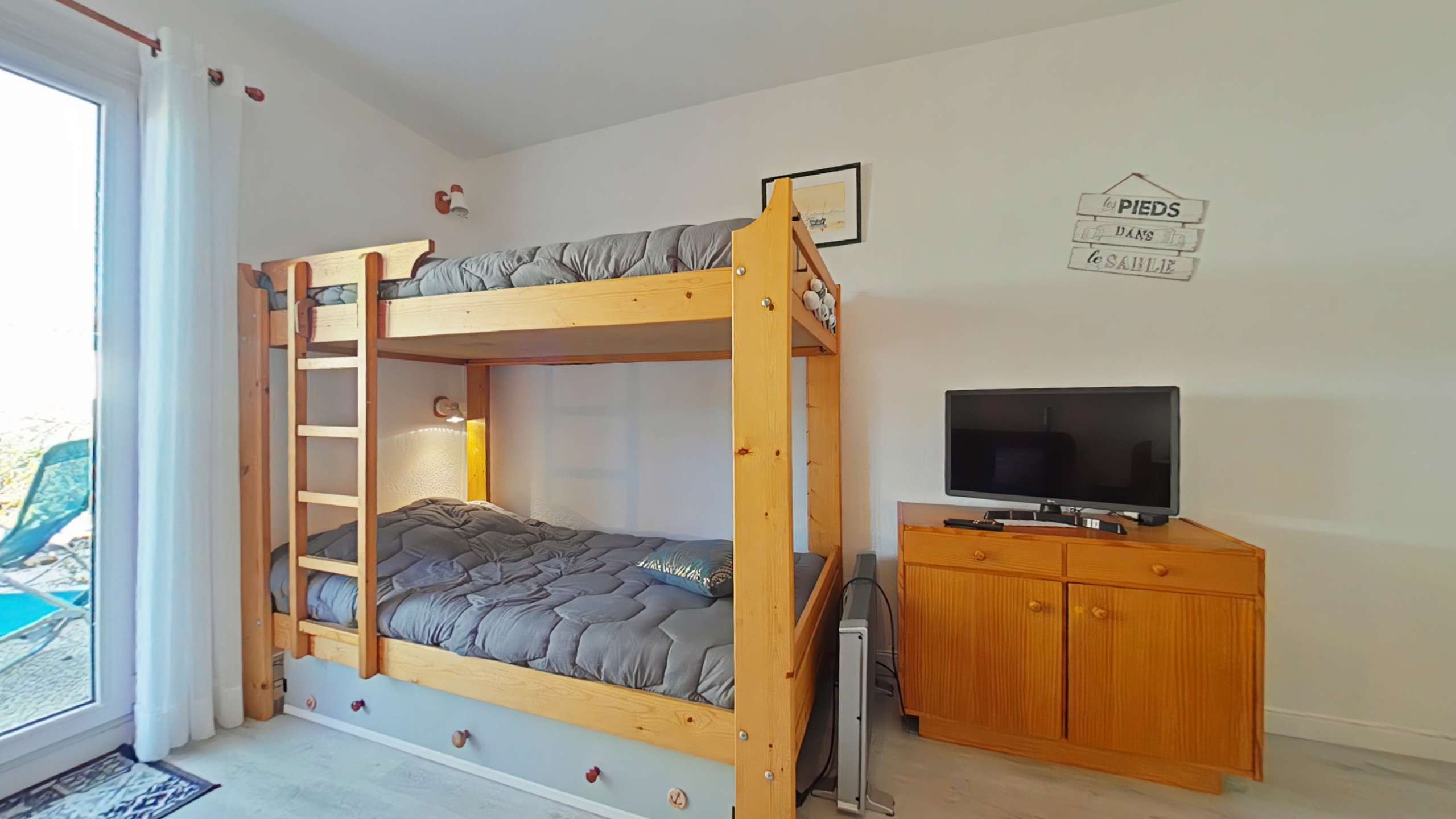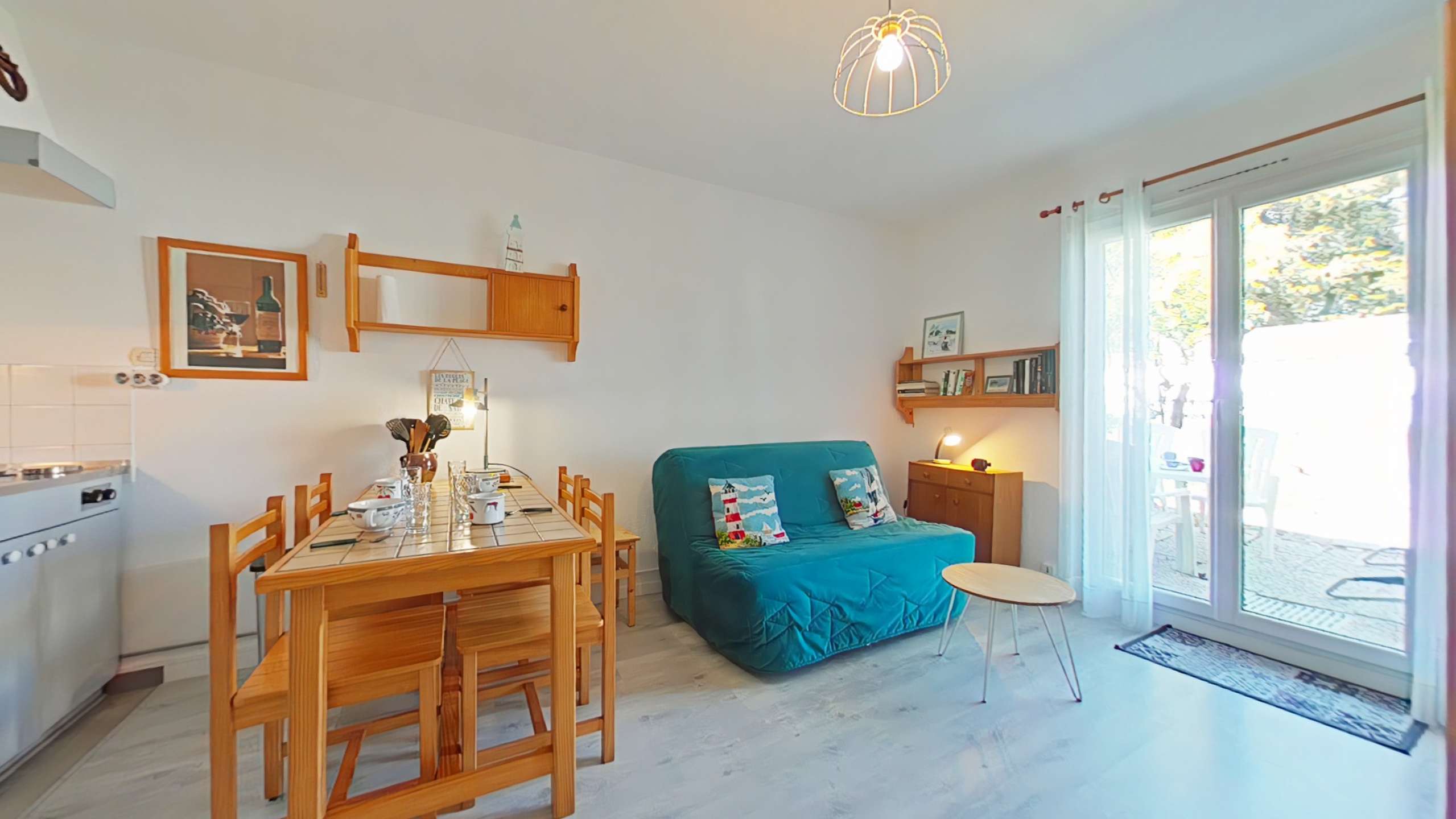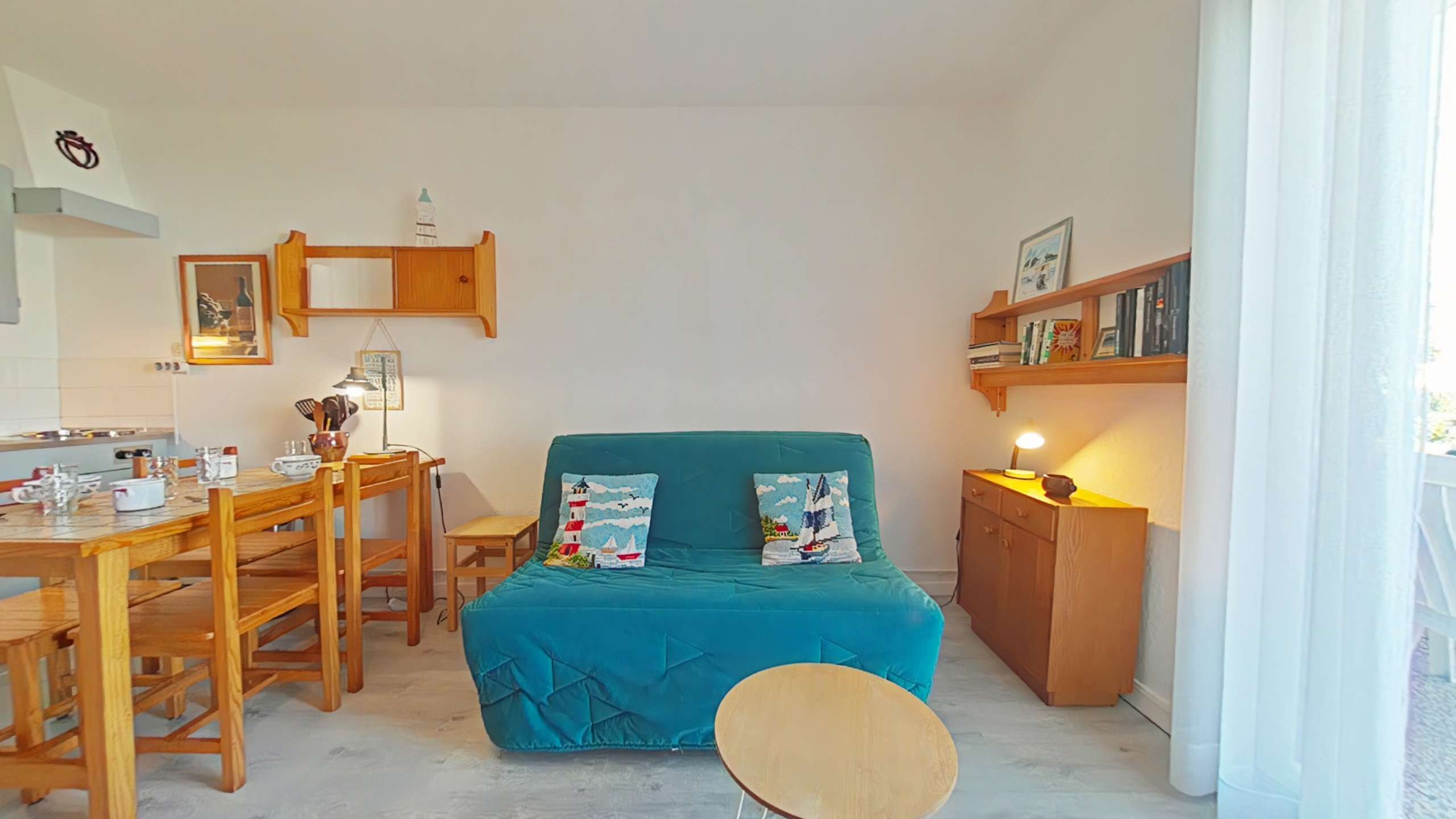 LA GUERINIERE (85) - Les Sables d'Or - Jolie Baie 1-room studio - approx. 25 m² - up to 4 people Located 300 m from a beautiful beach, this studio on the ground floor includes an entrance hall with -wardrobe, a living room including a kitchenette open to a living room with a 140 convertible sofa for two people and two single bunk beds and television, a bathroom with WC. It has a small garden with garden furniture. The advantages of this rental by the sea: Ideal for a couple with children, you can put down your suitcases and go to the beach on foot by the dune. Shops are about 1000 m away. End of stay cleaning included